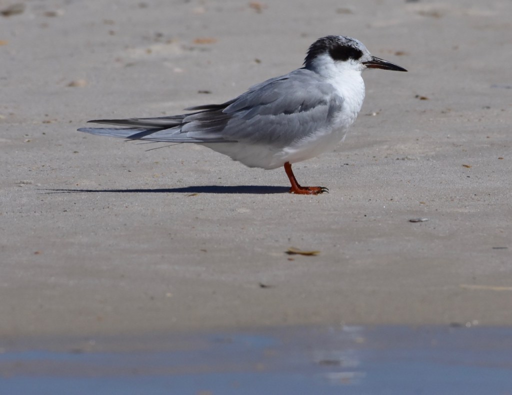 Forster’s Tern? lisacomerphotosMarch 14, 2022Birds Post navigation PreviousNext Non-breeding adults have a black eyepatch, slender black bill, gray wingtips, and short orange legs. Share this: Share on X (Opens in new window) X Share on Facebook (Opens in new window) Facebook Like Loading... Related