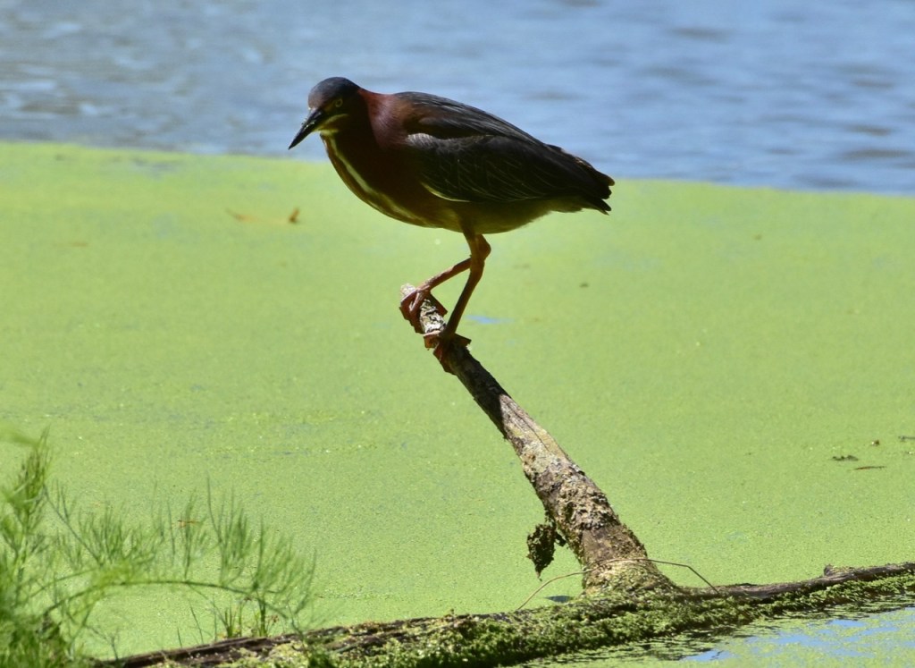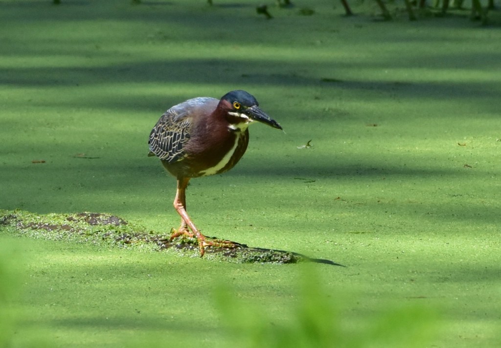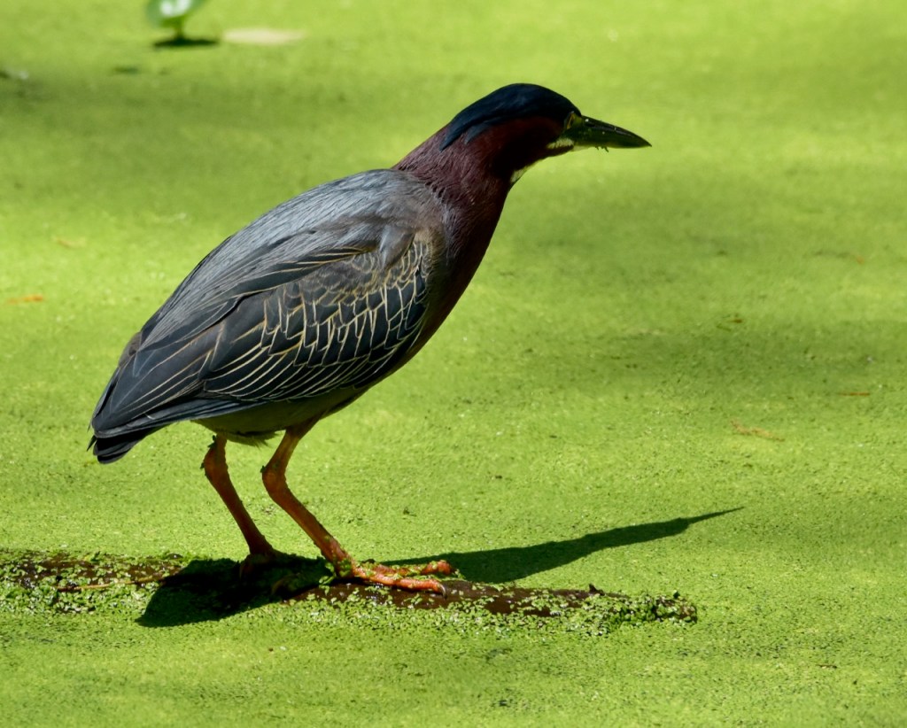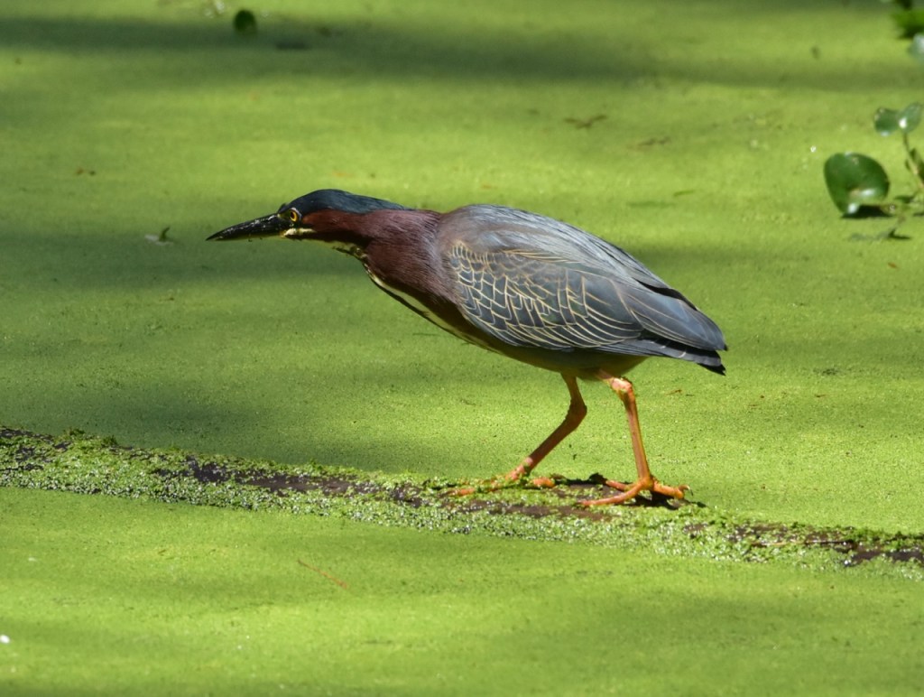 Green Heron lisacomerphotosApril 11, 2022Birds Post navigation PreviousNext Green Herons are deep green on the back with a rich chestnut breast and neck. The wings are dark gray. Share this: Click to share on X (Opens in new window) X Click to share on Facebook (Opens in new window) Facebook Like Loading... Related