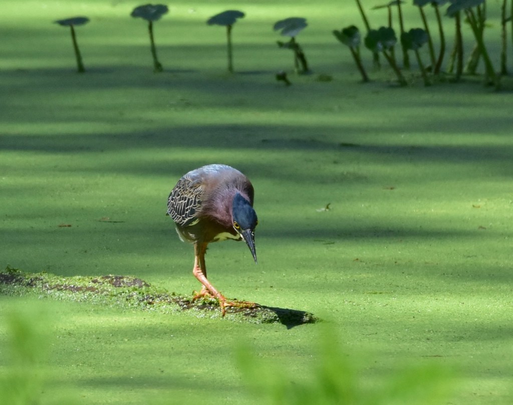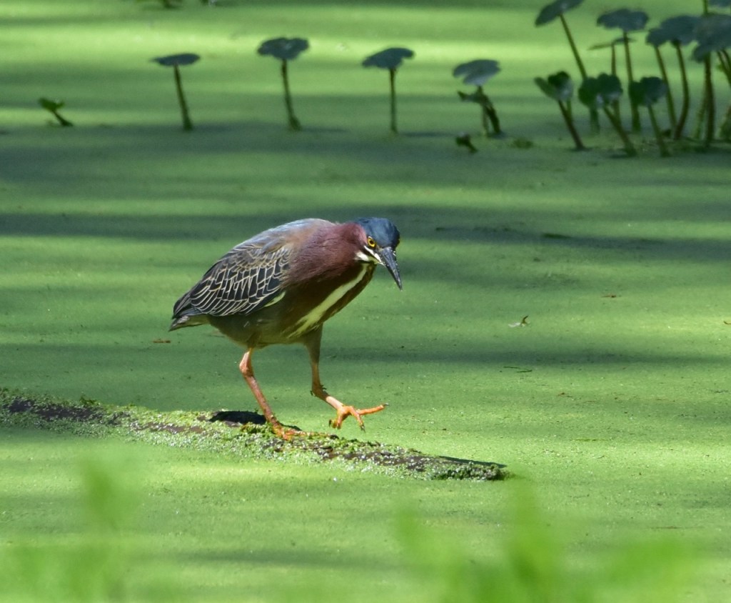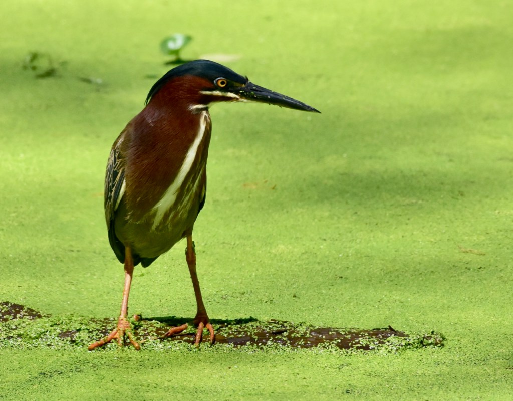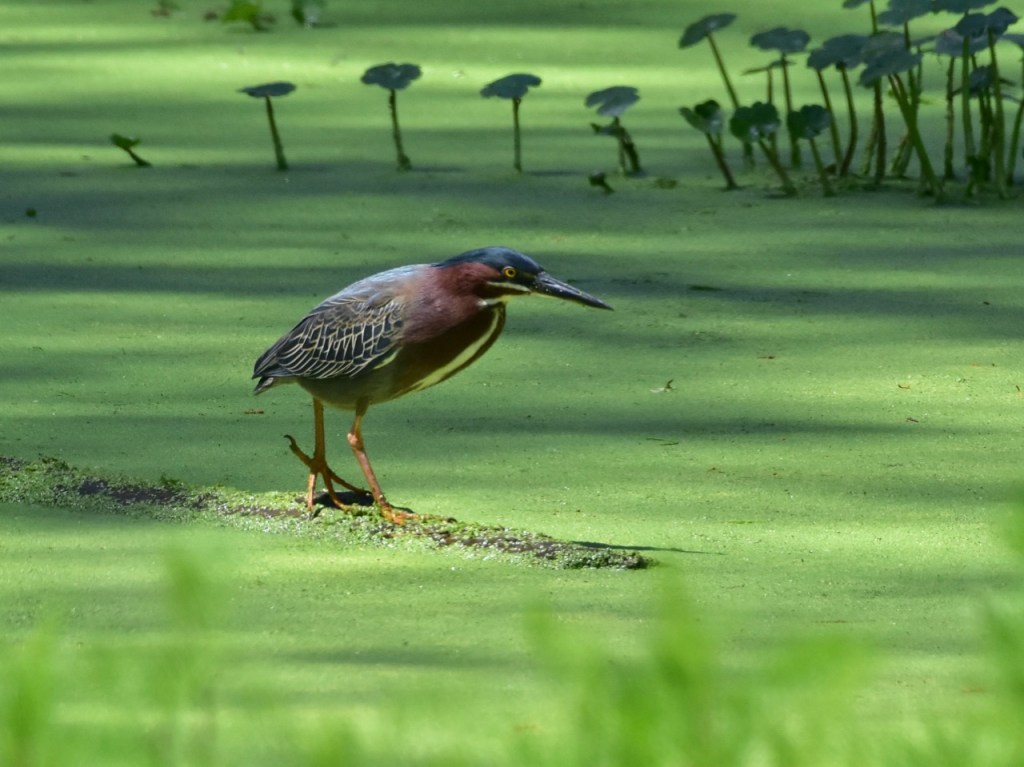 Green Heron lisacomerphotosApril 11, 2022Birds Post navigation PreviousNext Green Herons are deep green on the back with a rich chestnut breast and neck. The wings are dark gray. Share this: Click to share on X (Opens in new window) X Click to share on Facebook (Opens in new window) Facebook Like Loading... Related