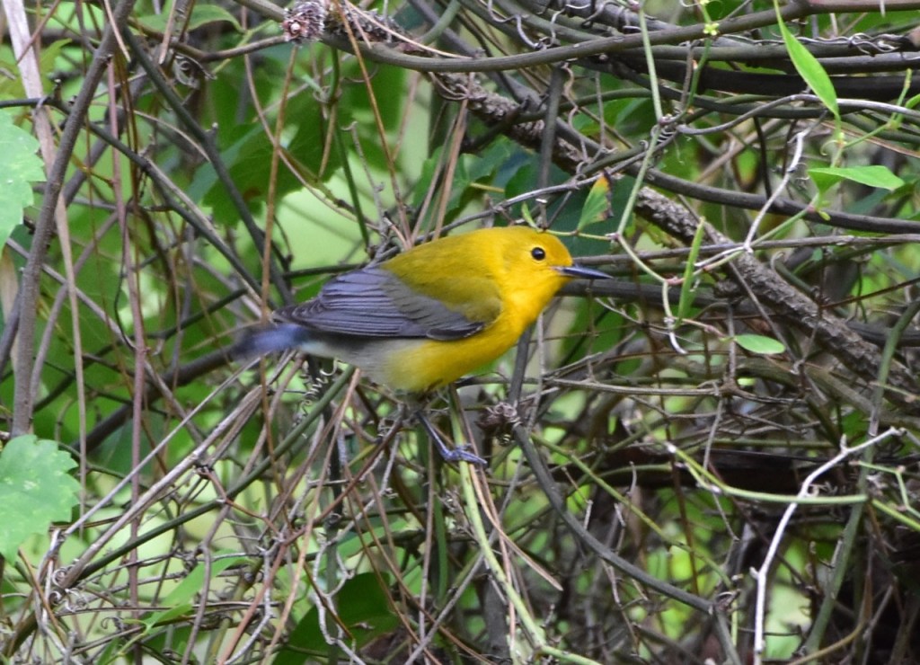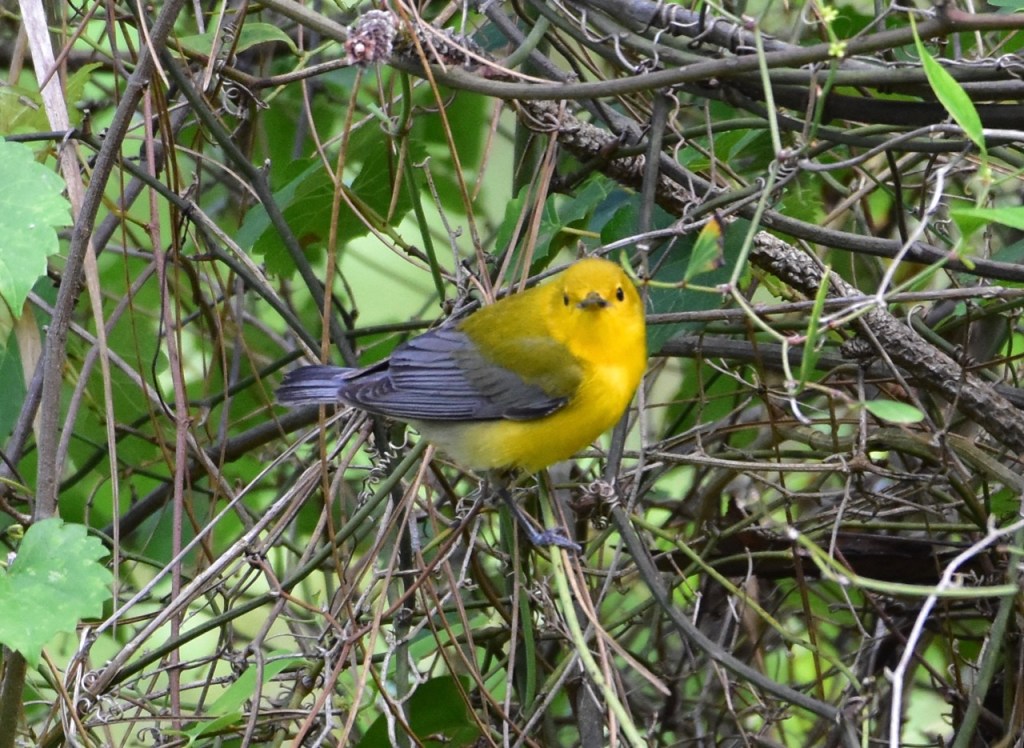 The Prothonotary Warbler got its name from the bright yellow robes worn by papal clerks, known as prothonotaries, in the Roman Catholic church.