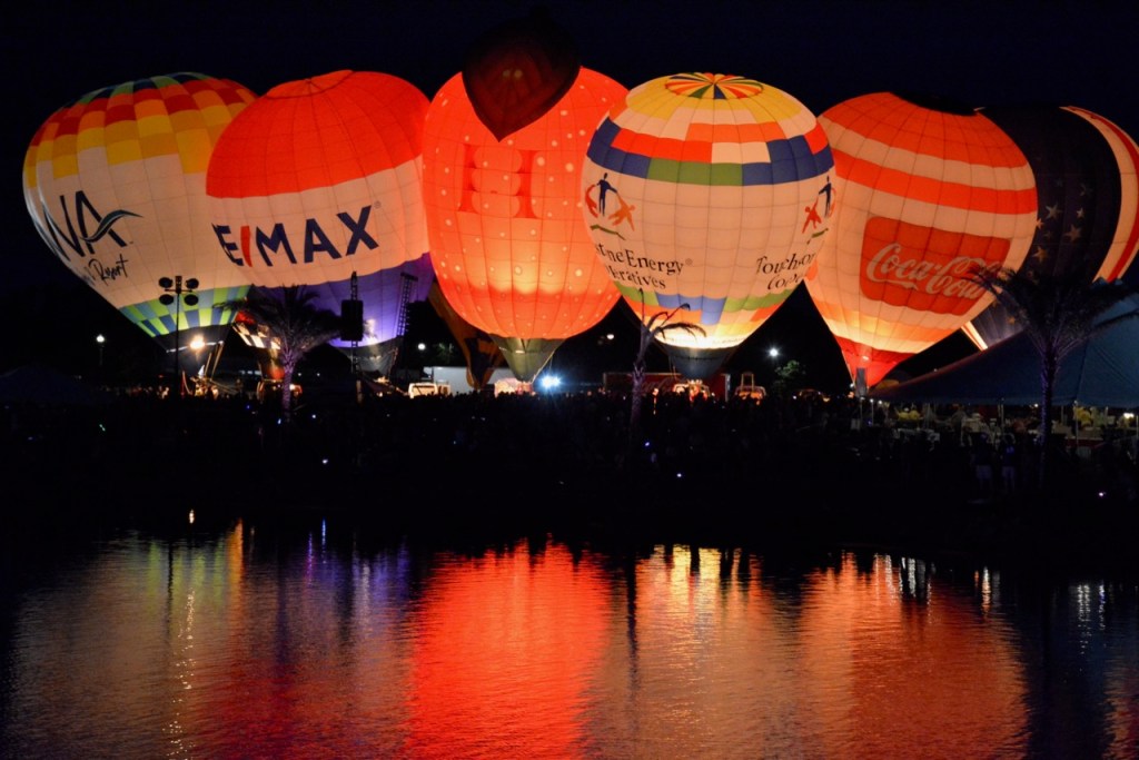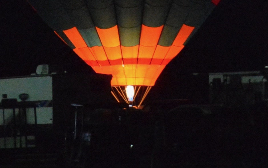 By heating the air inside a hot air balloon with a burner, it becomes lighter than the cooler air on the outside. This causes the balloon to float upwards.