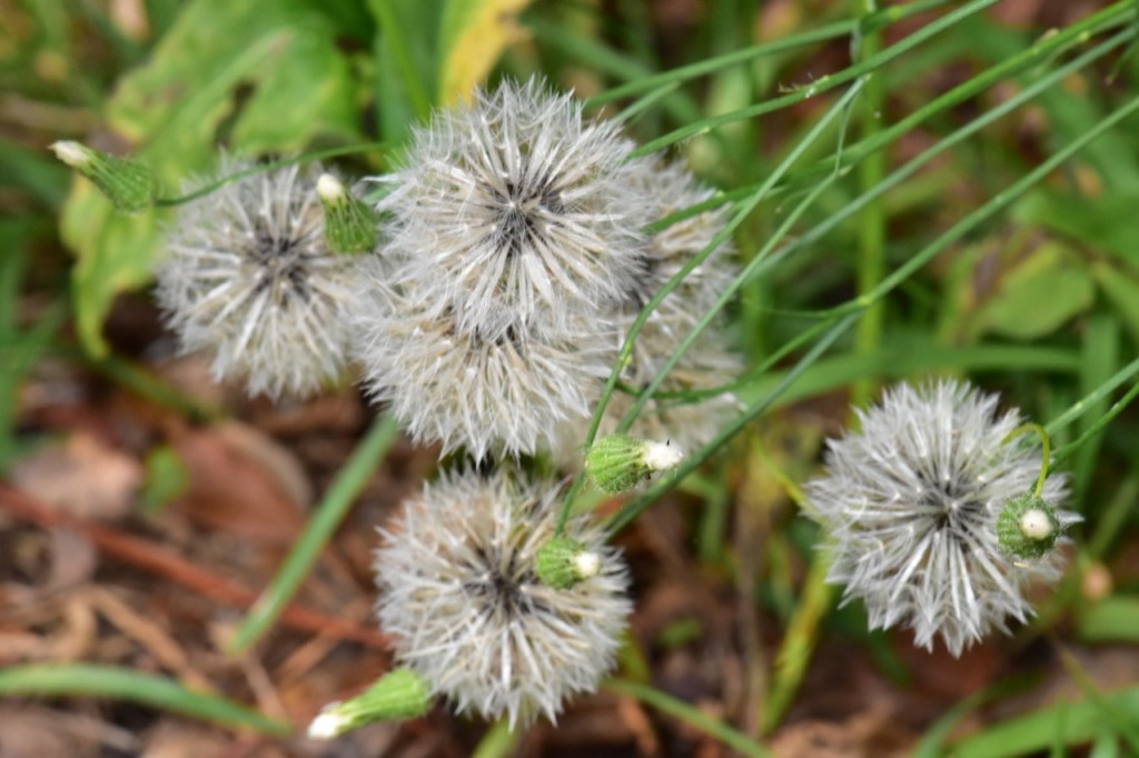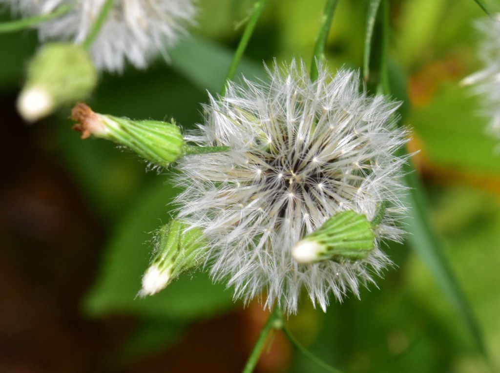 A single stem of a dandelion in its post-flowering state with the downy covering of its head intact. The seed -head is known as a ‘clock’ because, in the past, children blew at the fluffy head and imagined they were telling the time by counting how many puffs it took to blow all the fruits away.