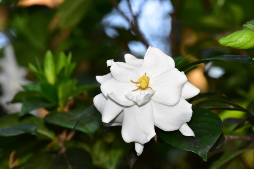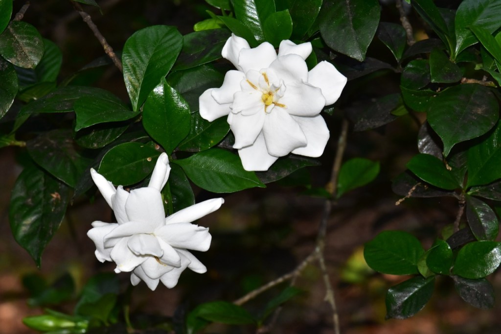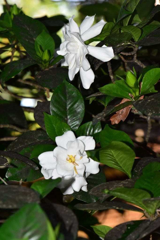 I grew this bush from a cutting from my grandmother’s gardenia bush in Atmore. It always blooms right around my mother’s birthday, so I always tell my mom that her mom is sending her flowers for her birthday.