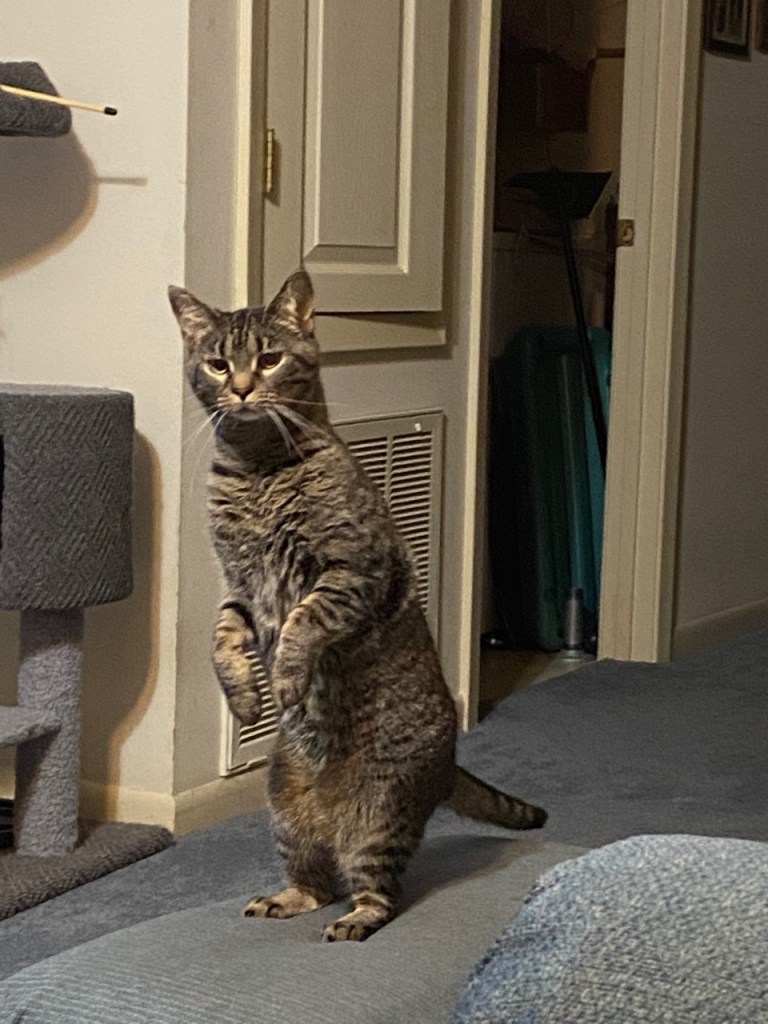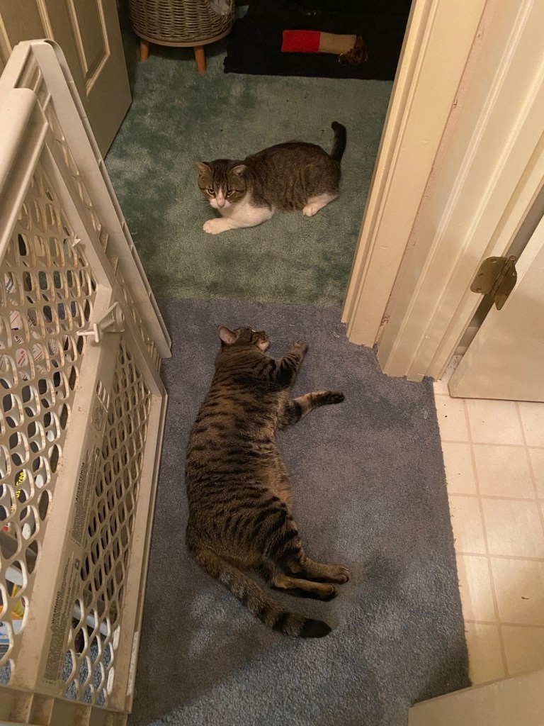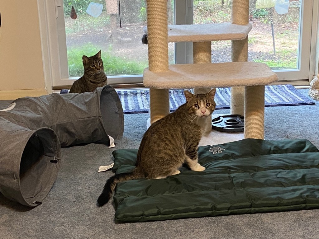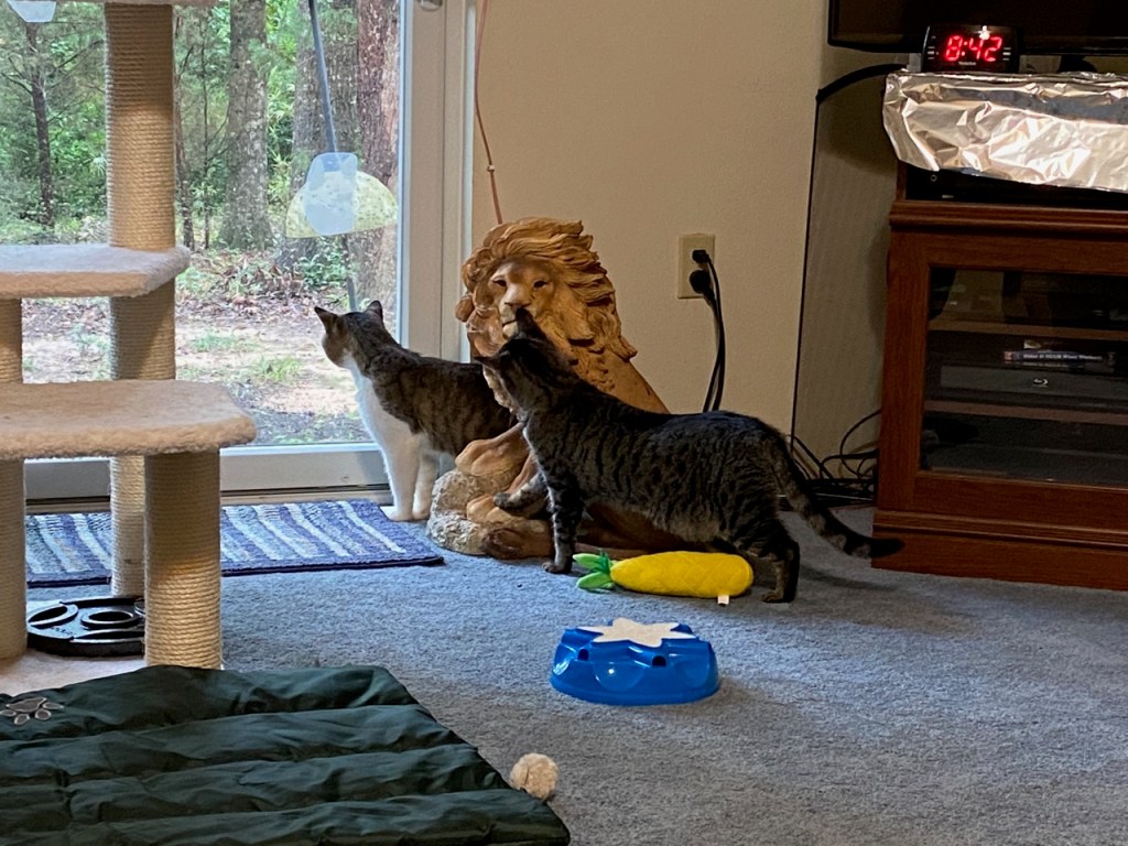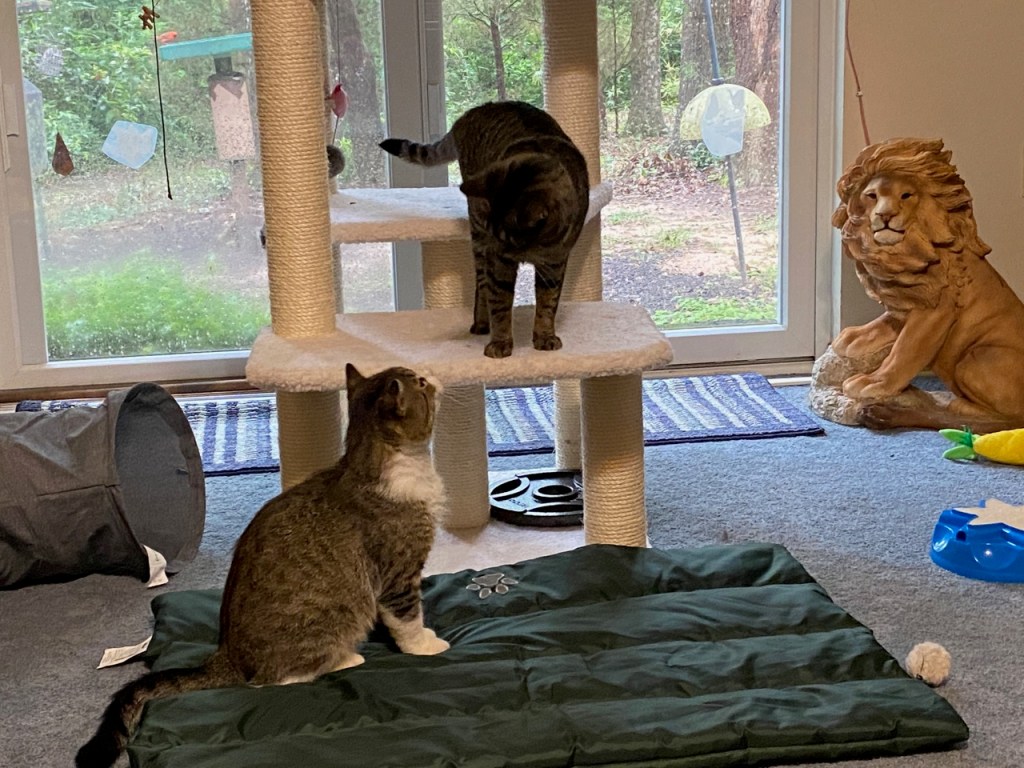 Oscar appeared in my yard a few months ago needing to be fed. Once I had him checked out by the vet, I let him into the house. LuLu has not been welcoming. She stalks him, chases him, hisses at him, or just sits and stares. Hopefully they will be able to coexist in the house together.