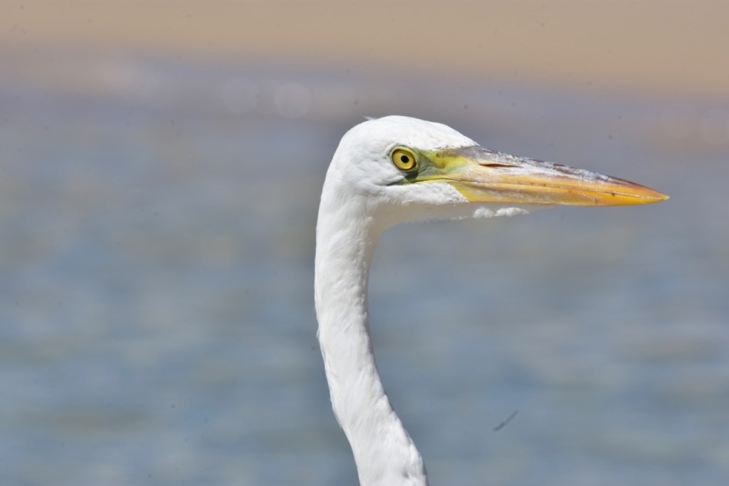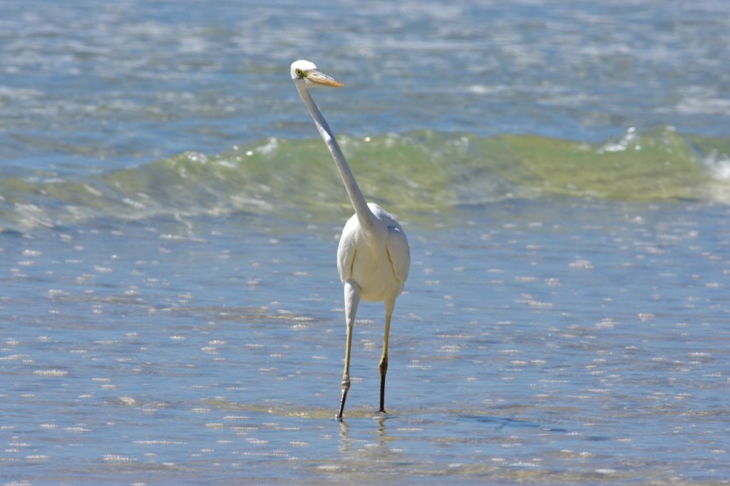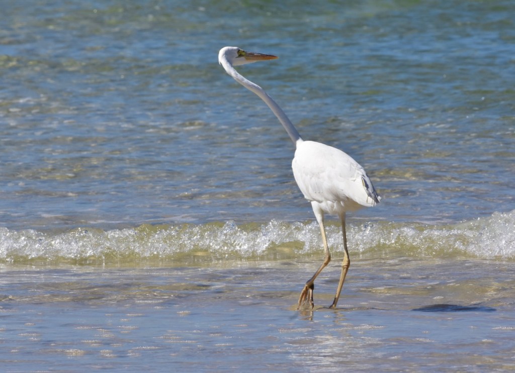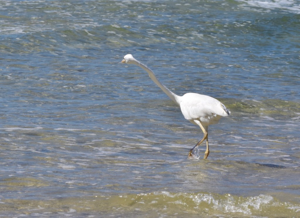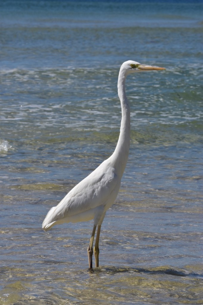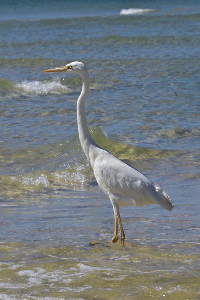 I originally posted this as a Great White Egret. I have since found out that this is actually a Great White Heron. Great White Herons are larger than Great White Egrets. The biggest differences are their heavy yellow bills and pale legs. A breeding heron will have a head plume. The egret has black legs and a slightly smaller yellow bill.