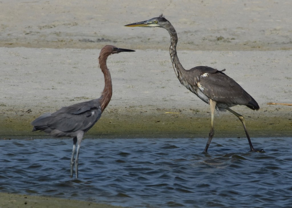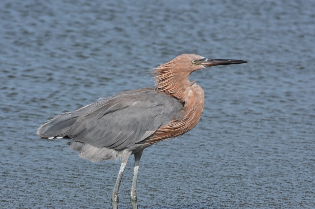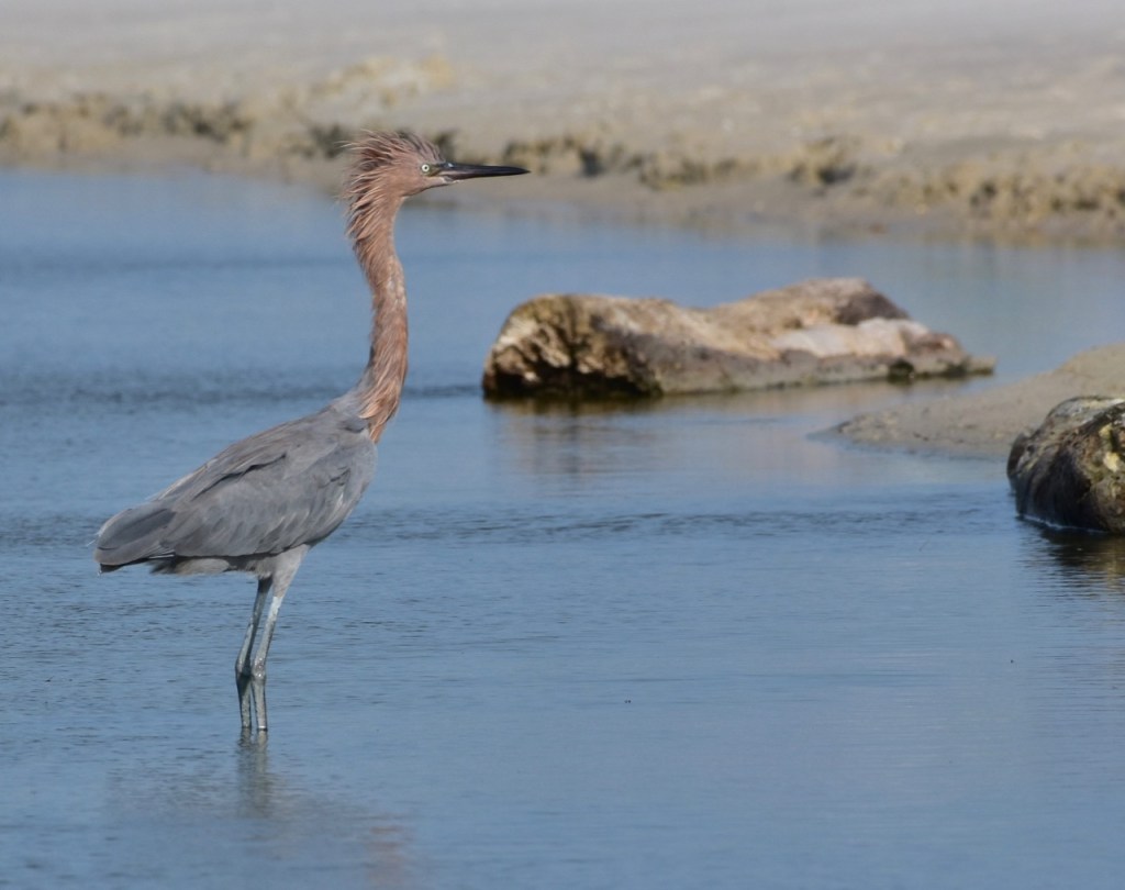 The Reddish Egret is one of the rarest egrets in North America. It’s easily distinguished from other egrets and herons by its shaggy appearance, hyperactive feeding behavior, and pink-and-black bill.