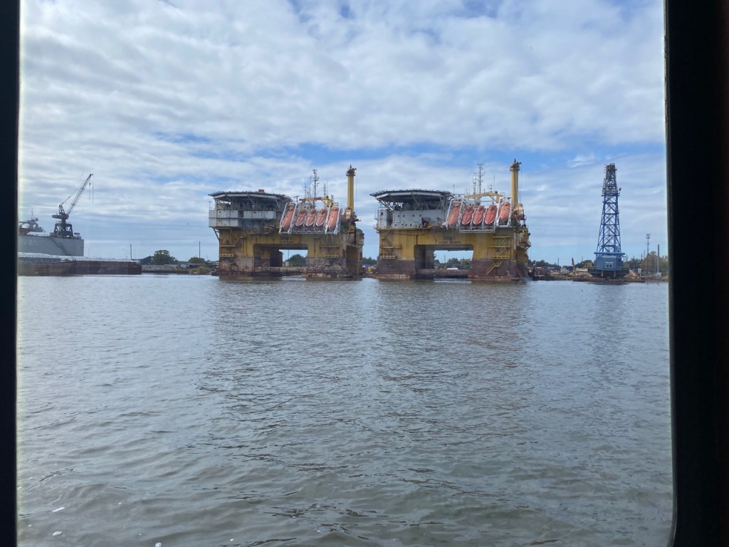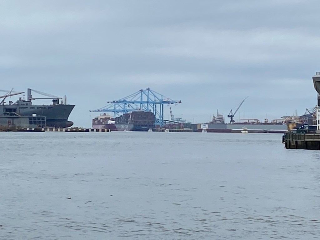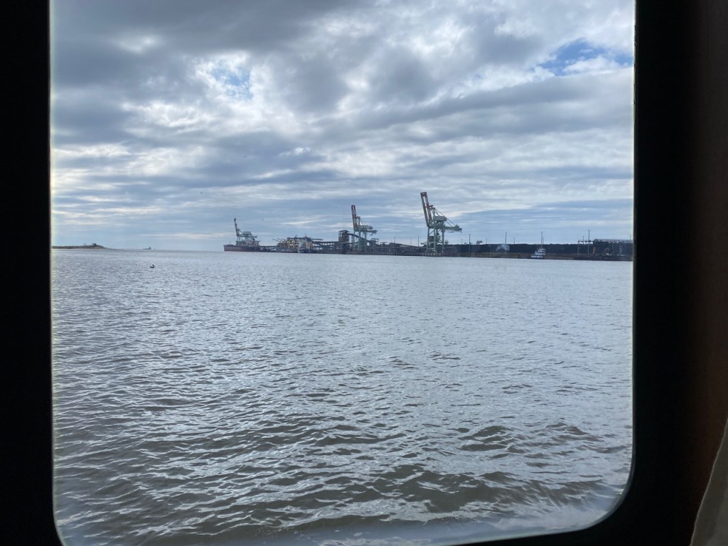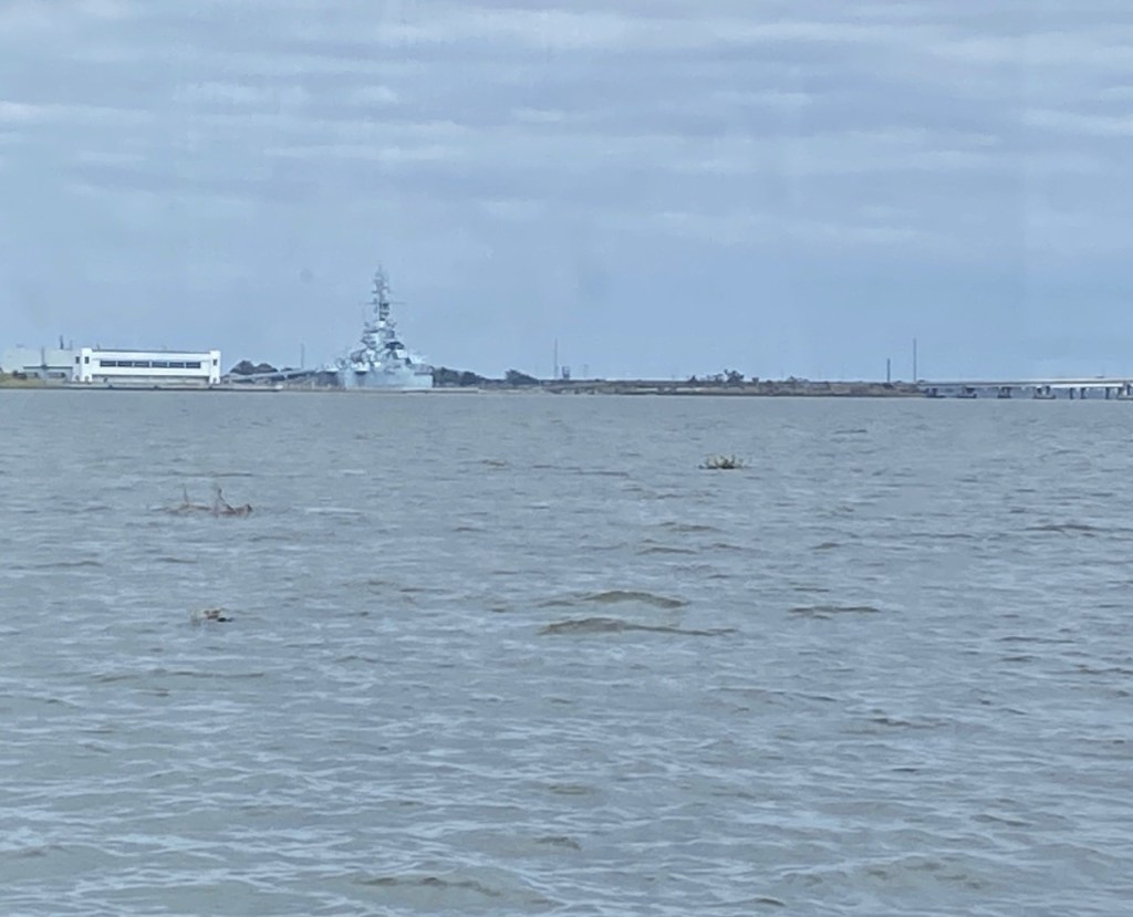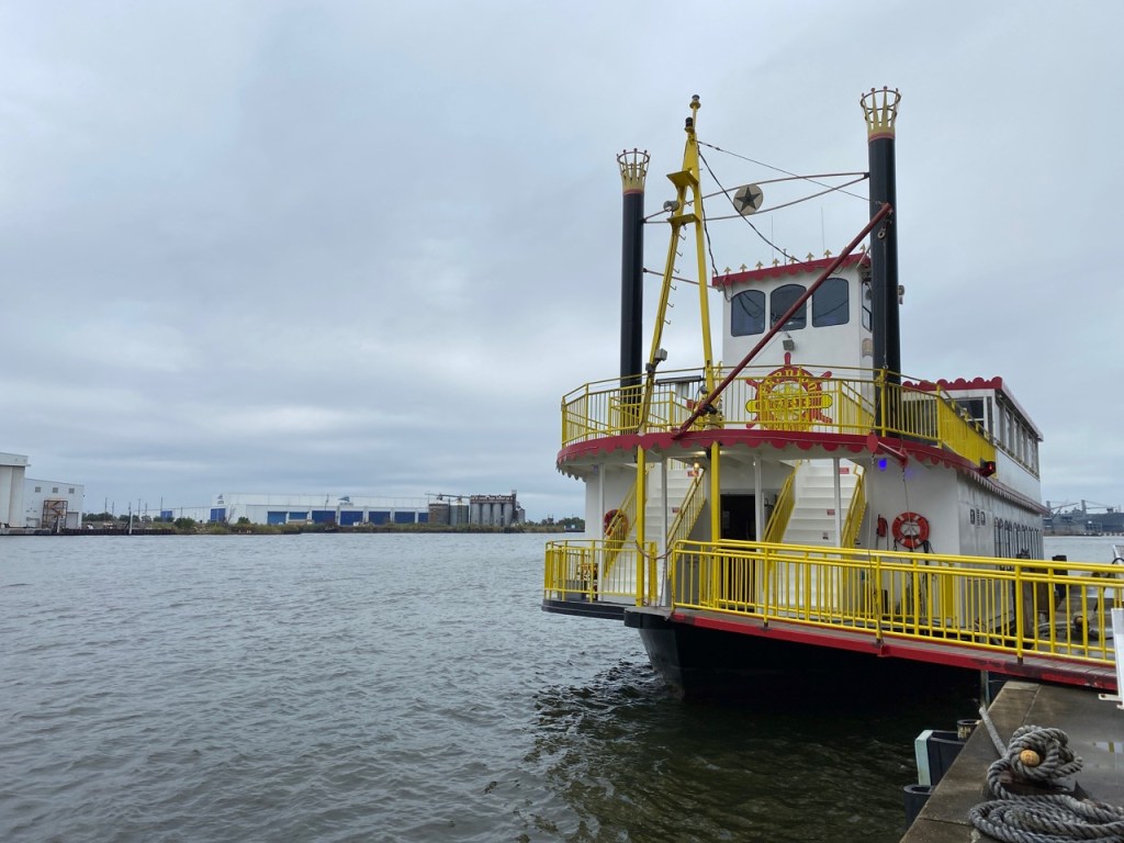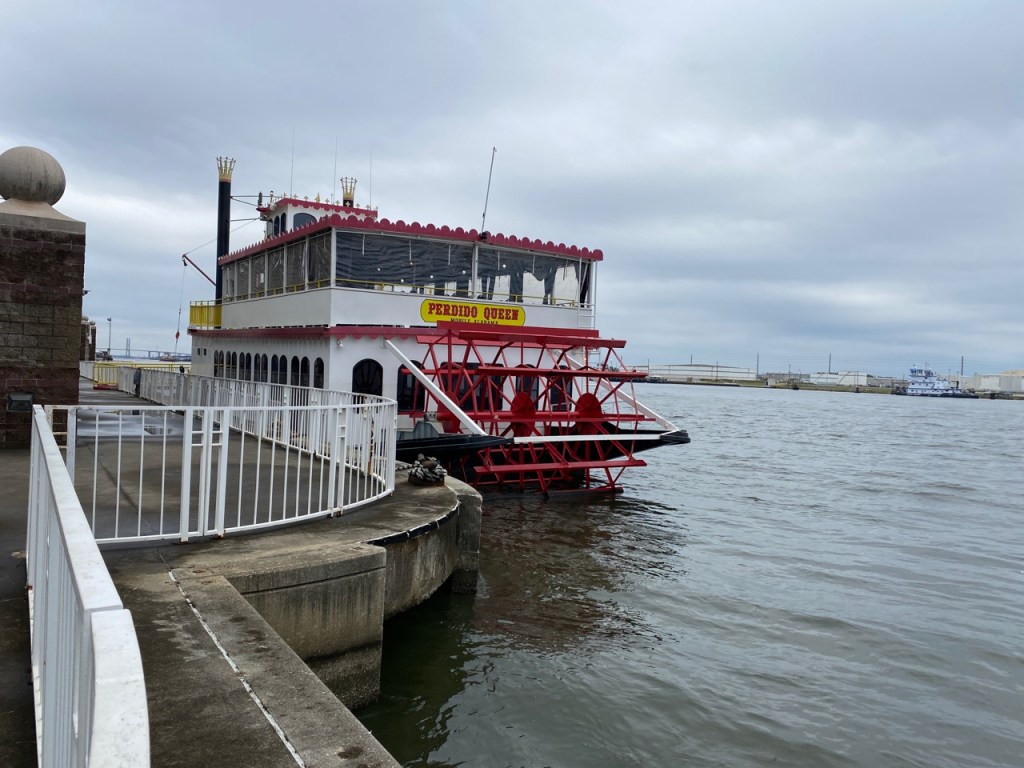 Sights along the Mobile waterfront while riding on the Perdido Queen and walking along the sidewalk beside the Mobile River.