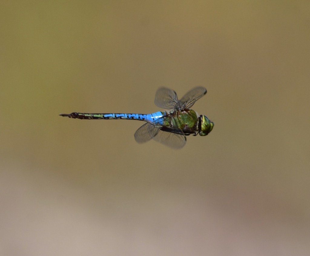 The Common Green Darner (Anax junius), the widest ranging of the Anax species, inhabits lakes and ponds from coast to coast.