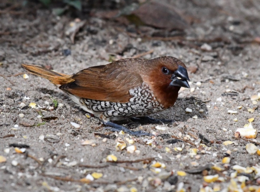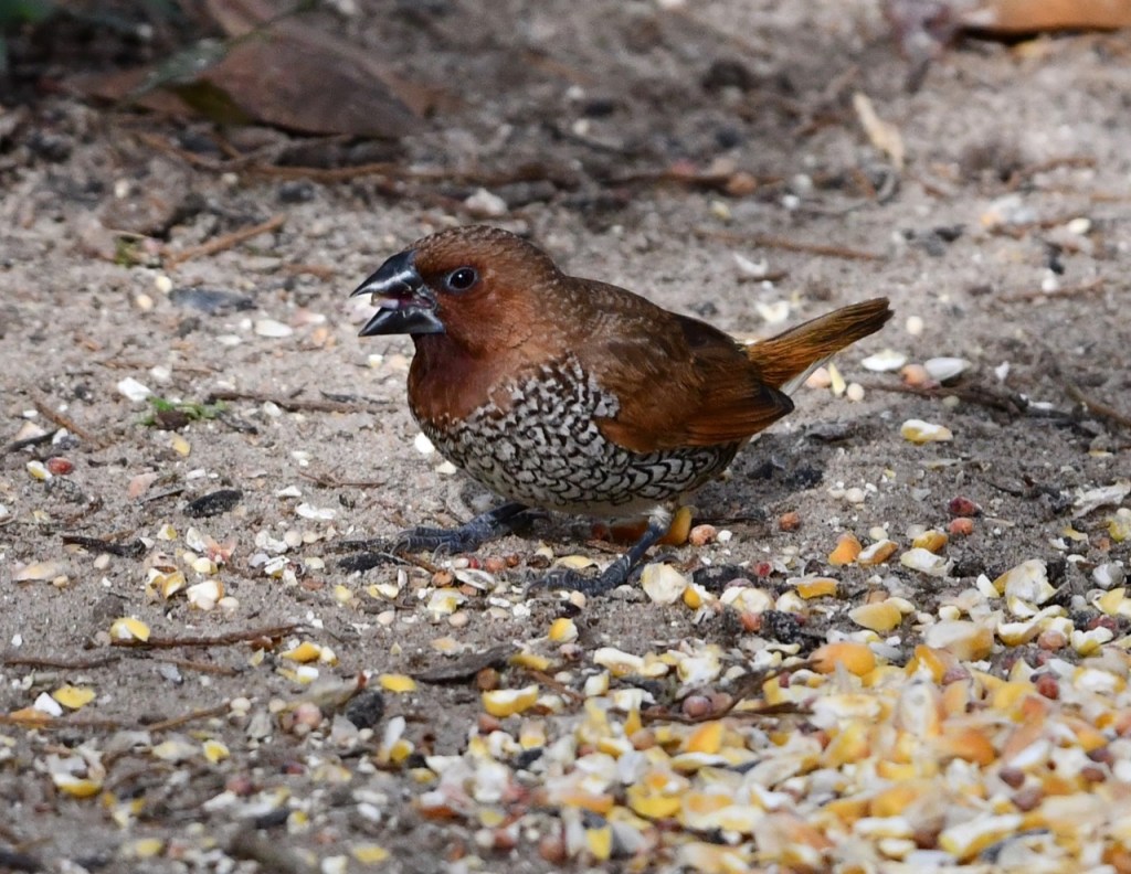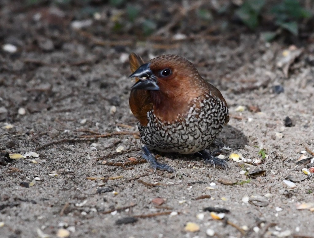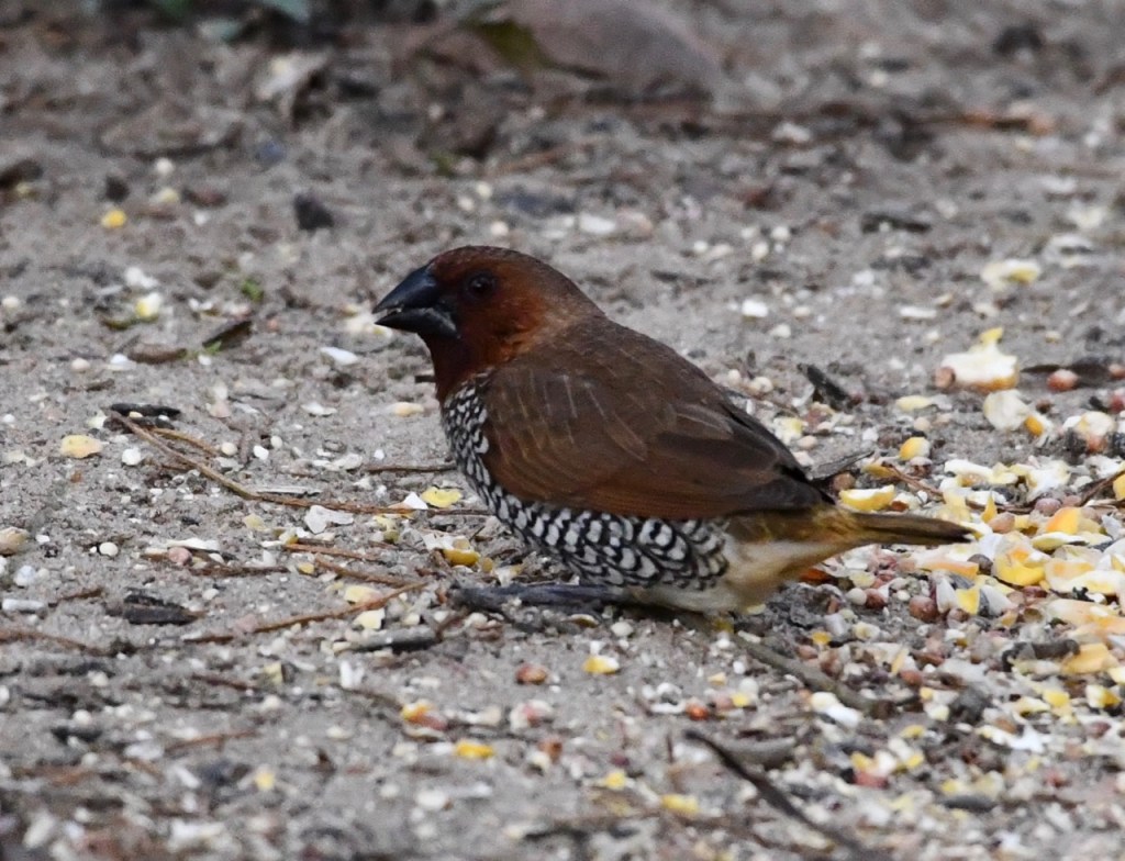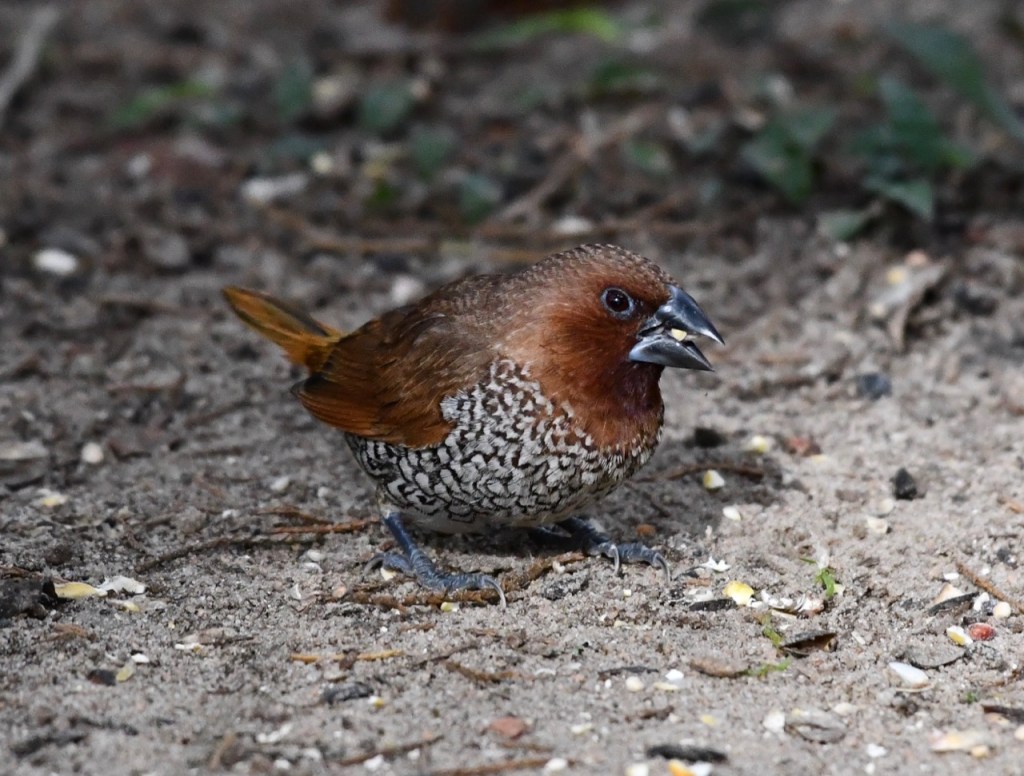 Native to southern Asia, this small waxbill is a popular cagebird. Escapees from captivity have established wild populations in several parts of the world. I’ve heard this bird has been seen in the Foley area for a couple of years. This is the first time I’ve seen one in my yard.