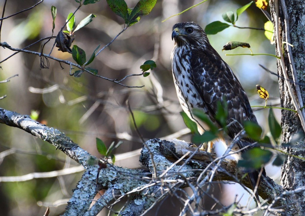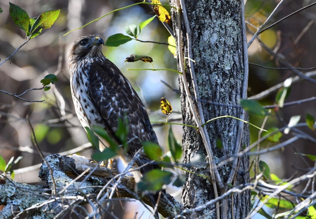 Hawks are birds of prey of the family Accipitridae. My Merlin app identified this as a Red-shouldered Hawk. I would have probably said it is a Cooper’s Hawk. It is an immature hawk.