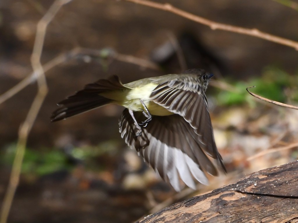 The Eastern Phoebe is a plump songbird with a medium-length tail. It appears large-headed for a bird of its size. The head often appears flat on top, but phoebes sometimes raise the feathers up into a peak. Like most small flycatchers, they have short, thin bills used for catching insects. https://www.allaboutbirds.org/guide/Eastern_Phoebe/id