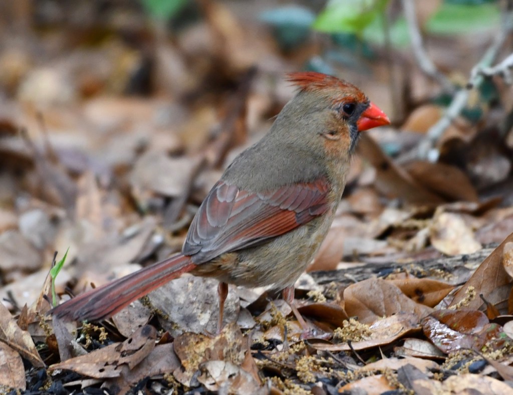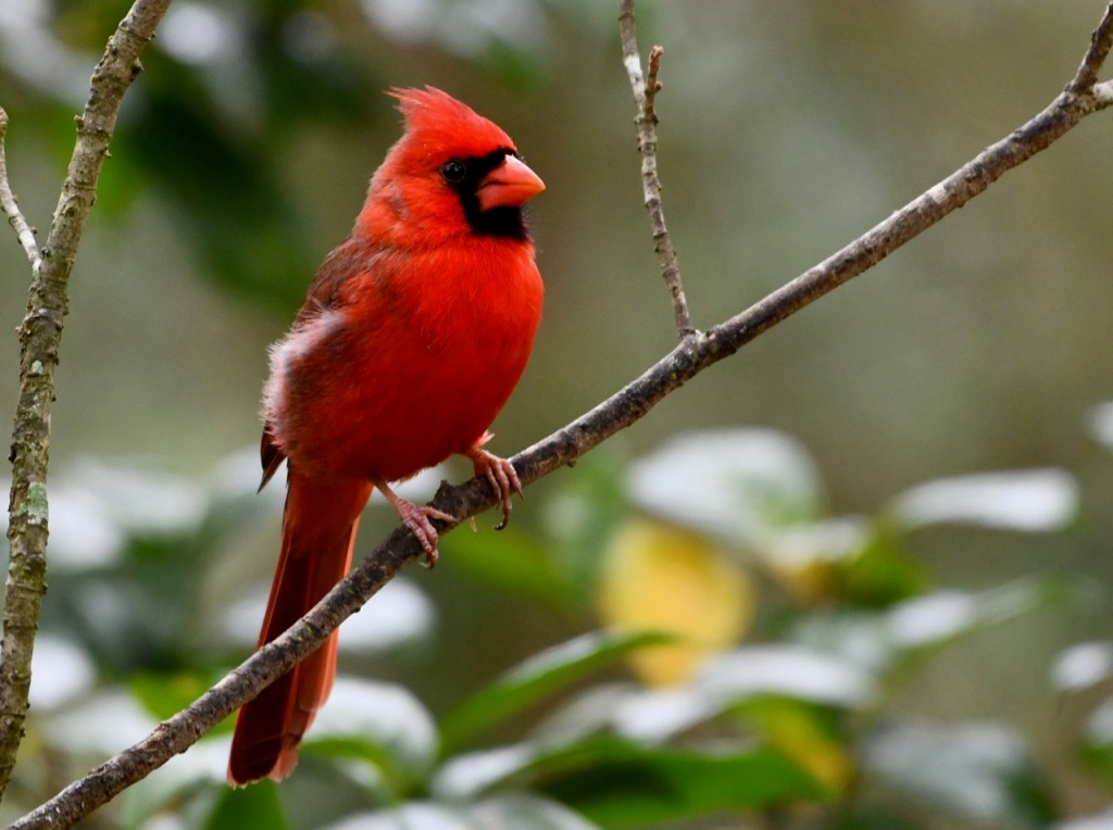 An interesting cardinal bird fact—the male’s bold red coloration is thought to help attract mates. The brightness of plumage is related to diet. Male cardinals’ vivid red color comes from carotenoid pigments, which are found in red fruits. Eating more of these scarlet-hued berries, especially during molting, helps a male form brighter red feathers. Studies indicate that the showier males tend to hold better territories, provide extra parental care and show higher nesting success. https://www.birdsandblooms.com/birding/birding-basics/cardinal-bird-facts/