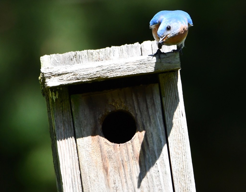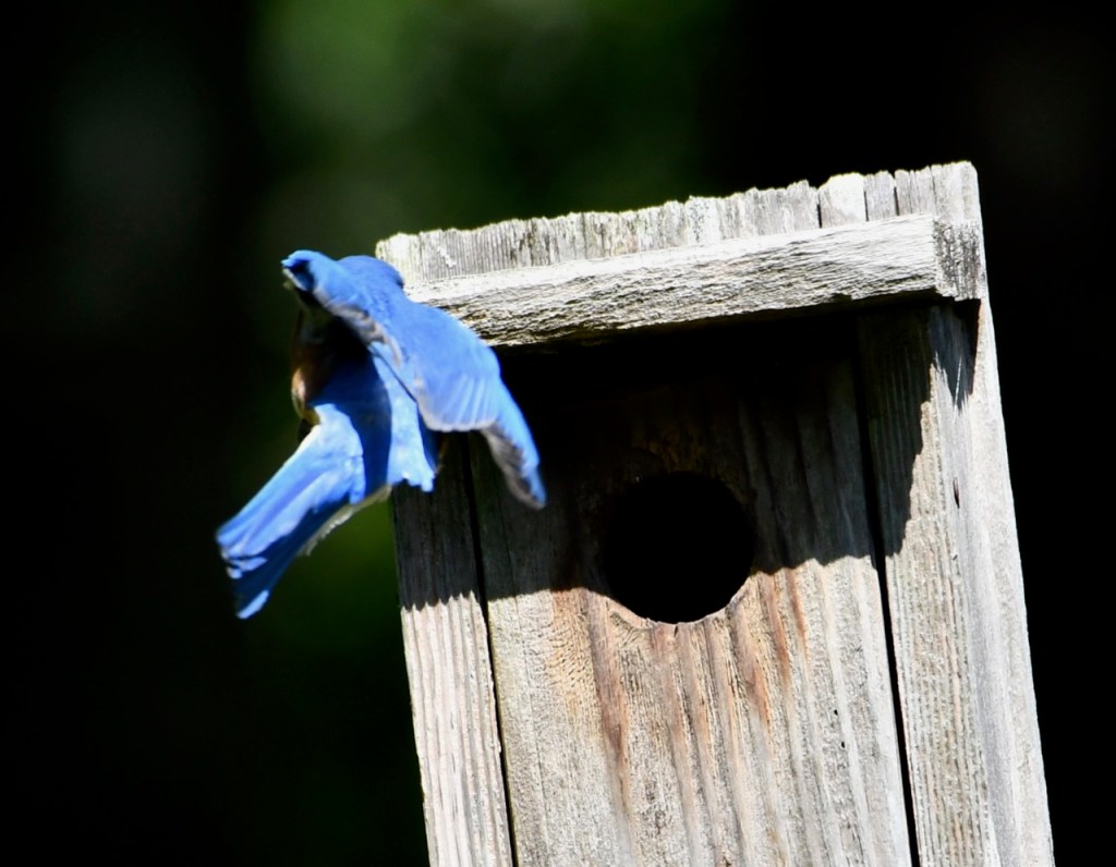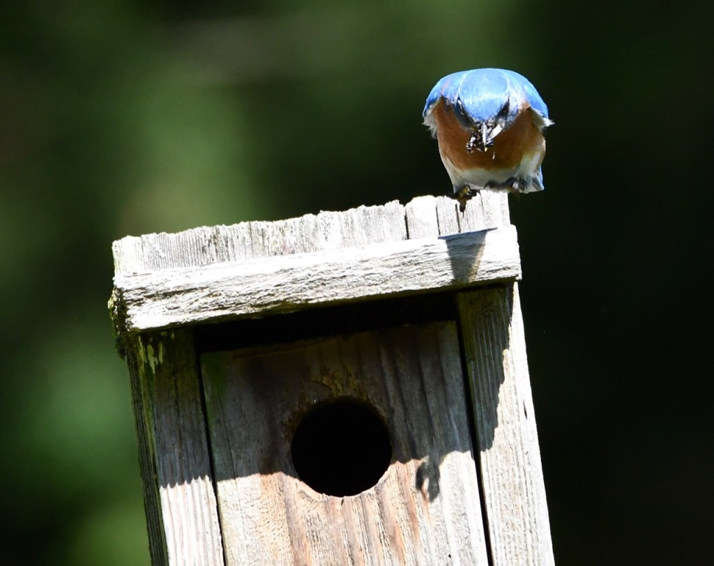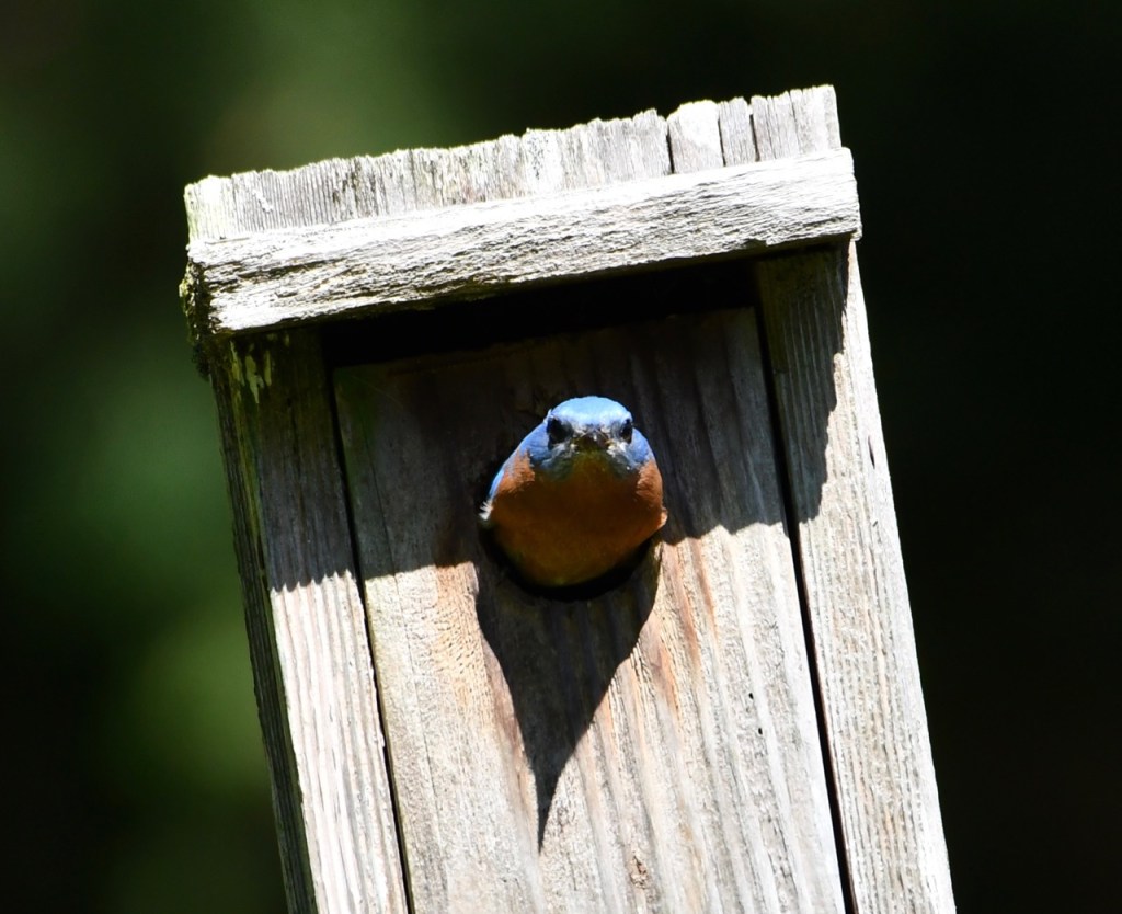 Another family of Eastern Bluebirds are nesting in my box. I’ve had this Bluebird box for at least 10 years. It has nested a lot of baby birds during that time.