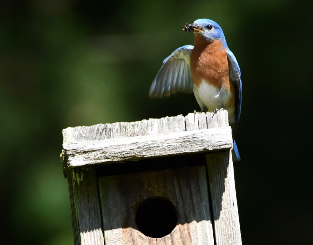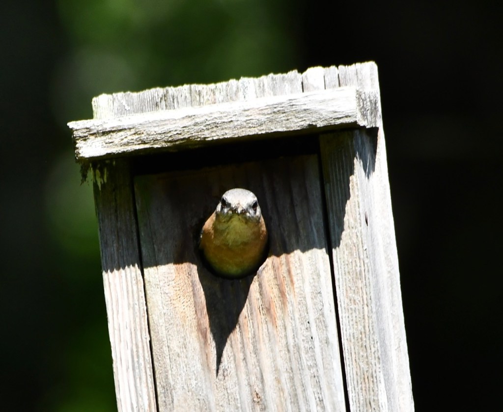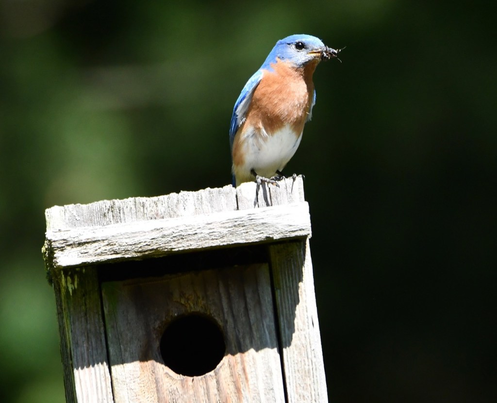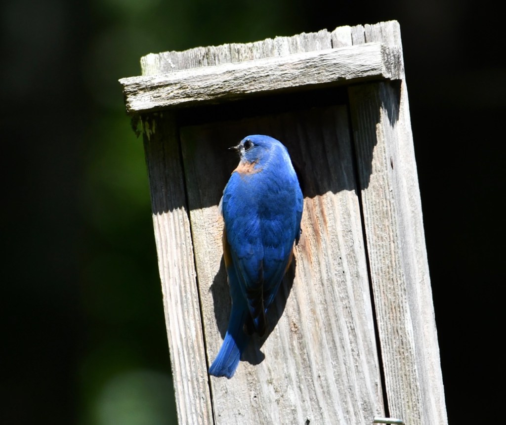 Another family of Eastern Bluebirds are nesting in my box. I’ve had this Bluebird box for at least 10 years. It has nested a lot of baby birds during that time.