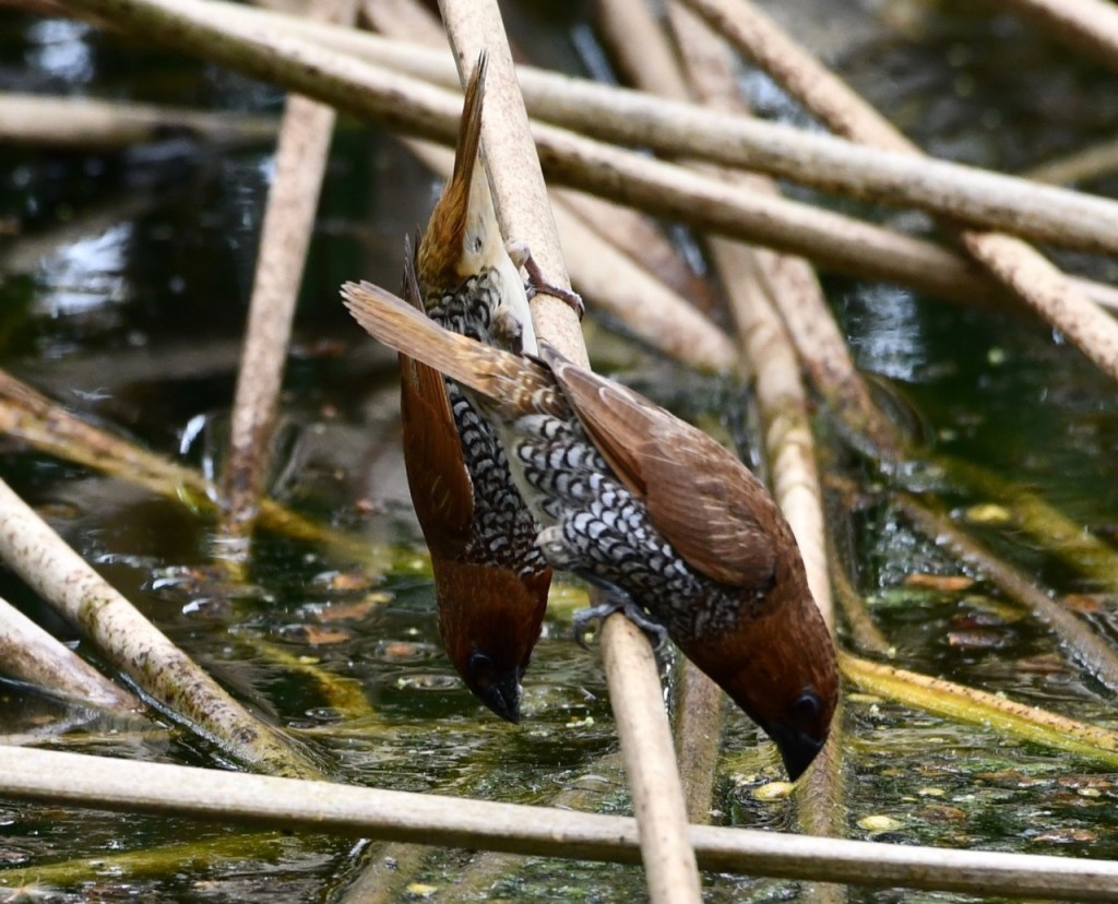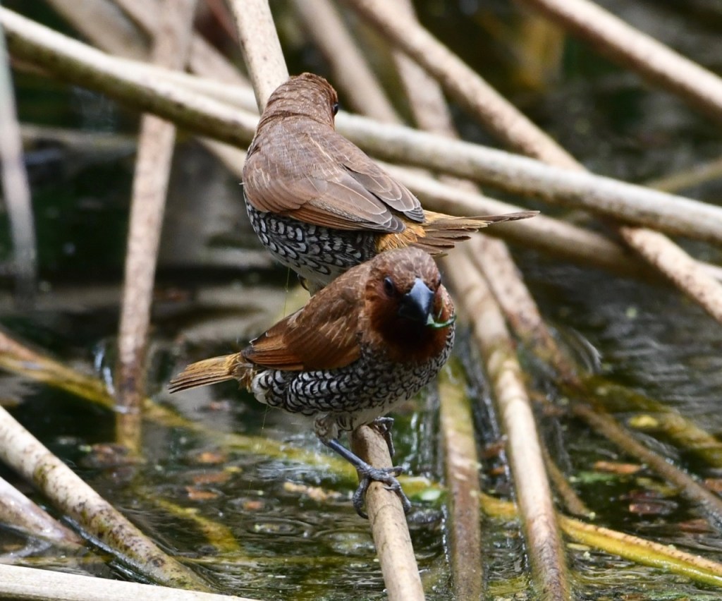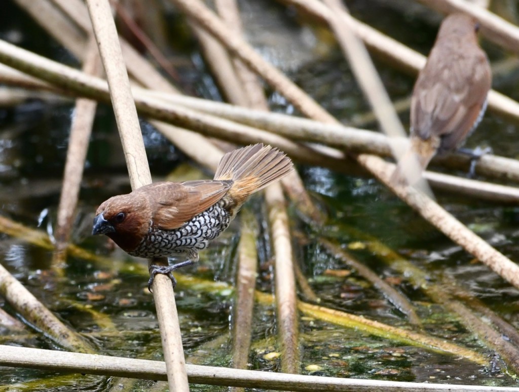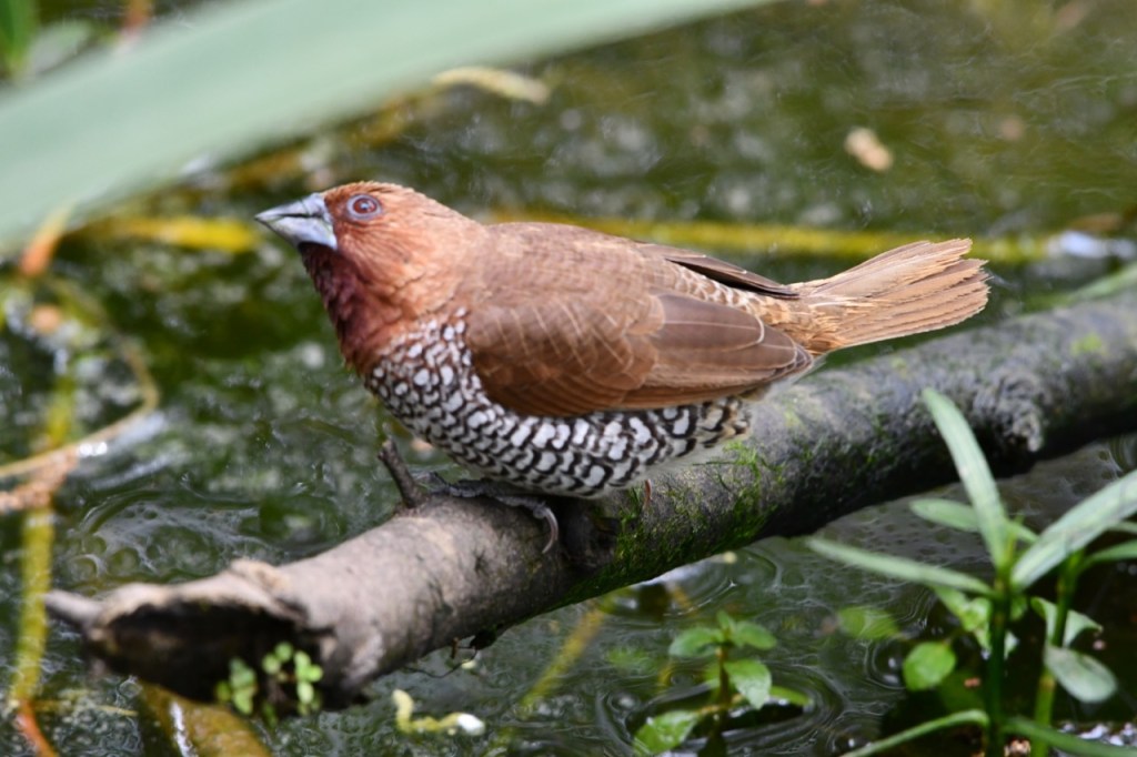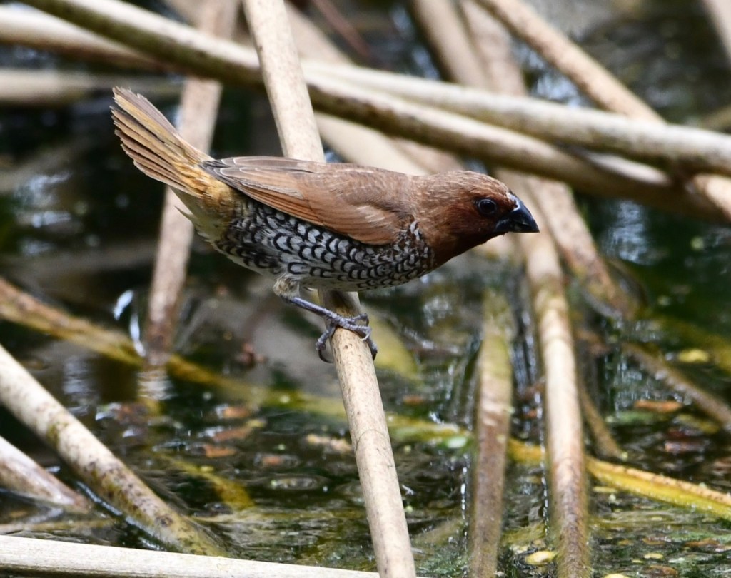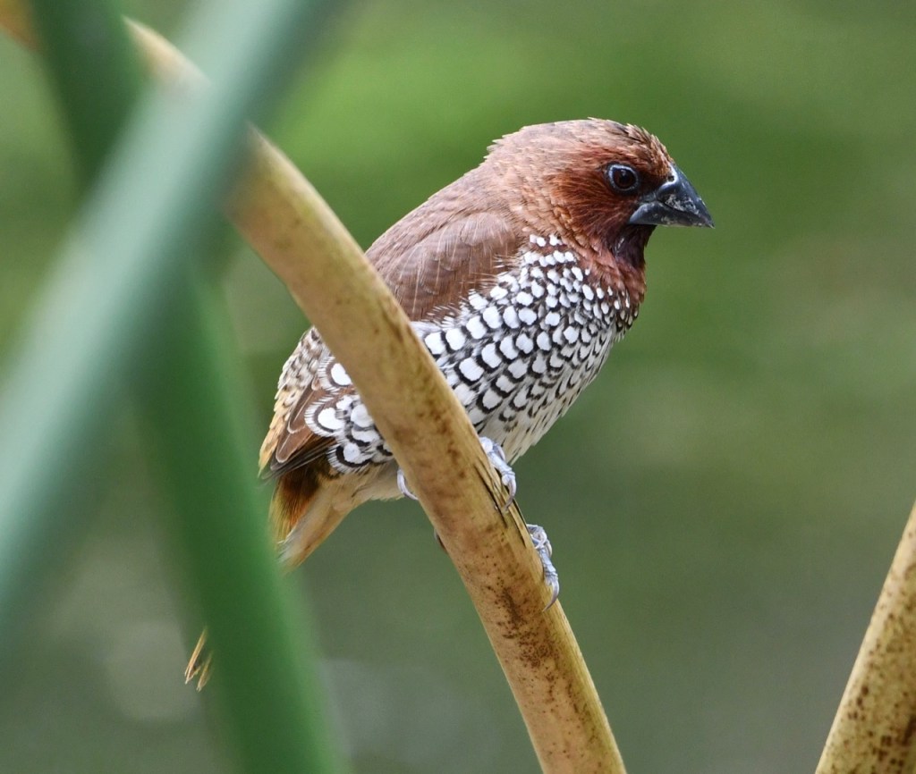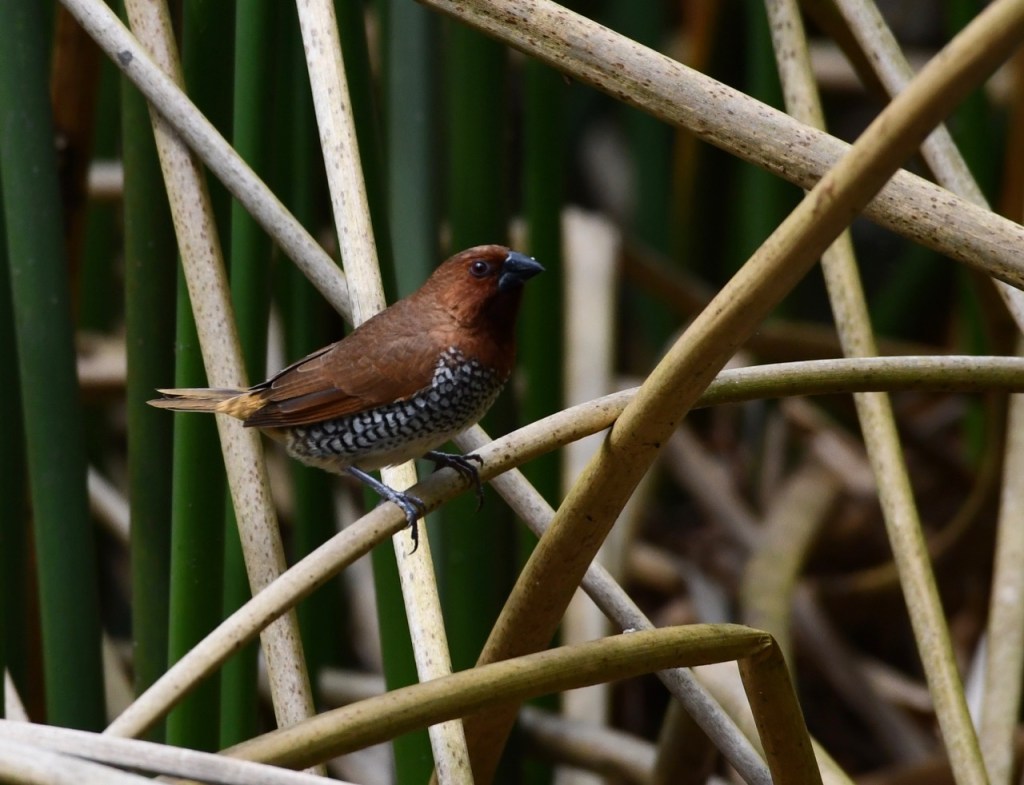 Native to southern Asia, this small waxbill is a popular cagebird. Escapees from captivity have established wild populations in several parts of the world. https://www.audubon.org/field-guide/bird/scaly-breasted-munia