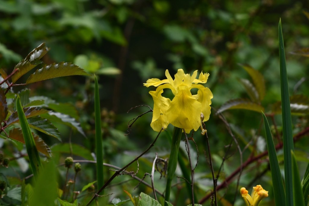 Yellow iris is a regulated invasive species. Yellow iris grows along shorelines, in shallow water and in roadside ditches.