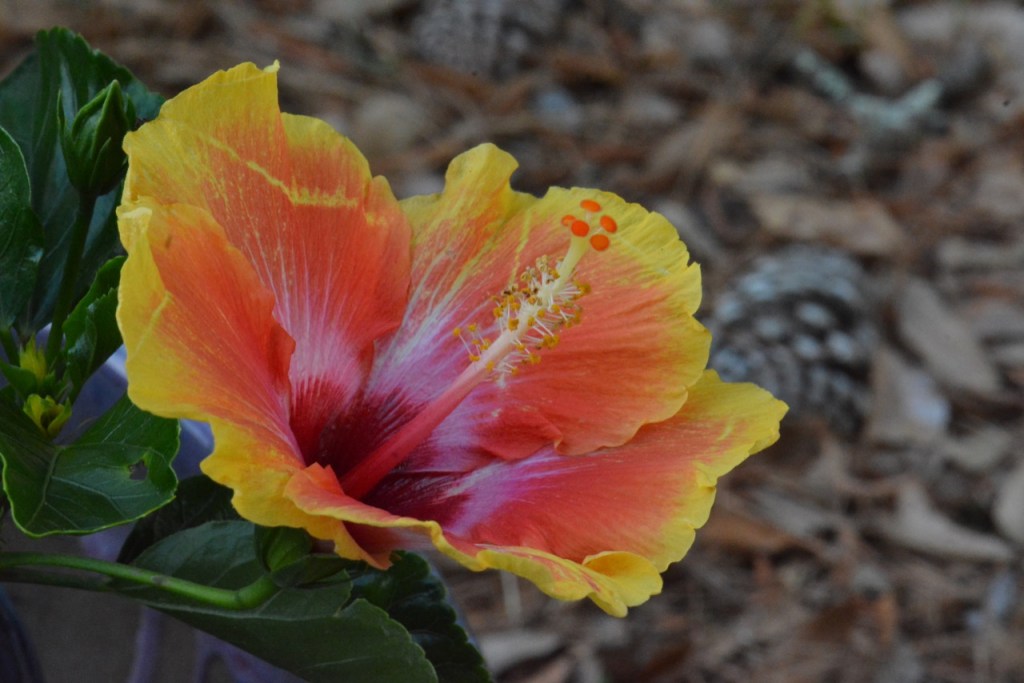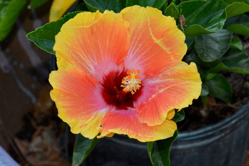 The Fiesta Hibiscus, also called the Hawaiian Sunset Hibiscus is indeed reminiscent of a glorious sunrise or sunset. https://www.gardensall.com/fiesta-hibiscus/