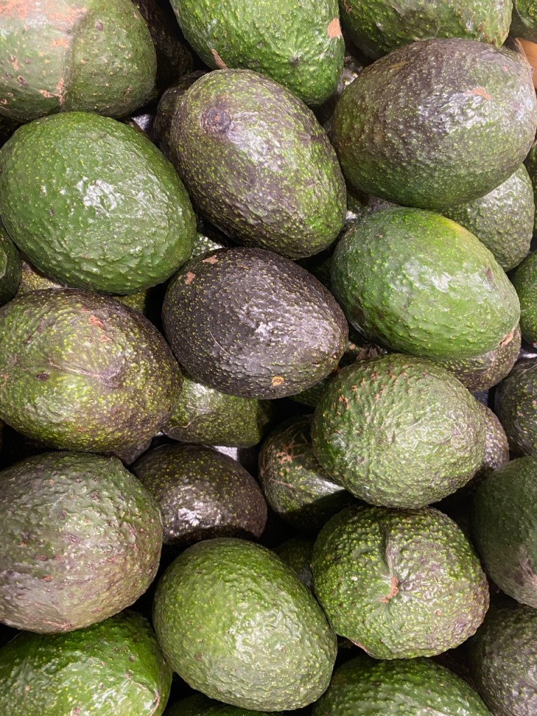 Hass avocados have dark green bumpy skin that darkens when it ripens, eventually turning almost black.