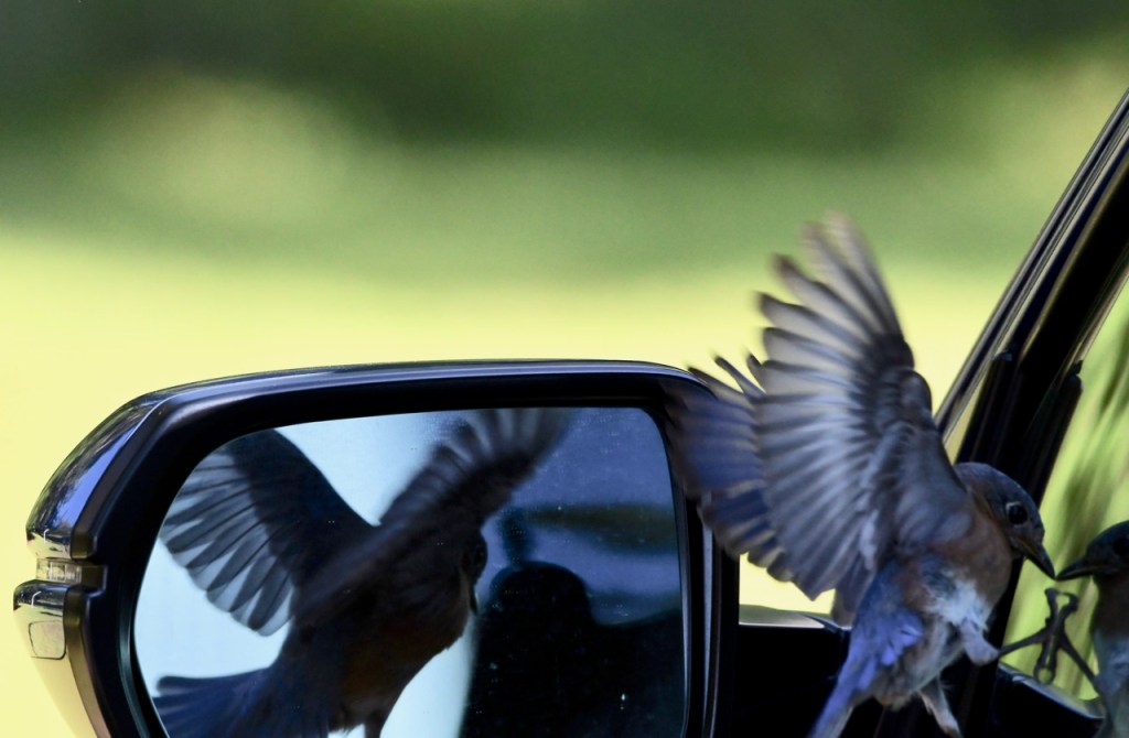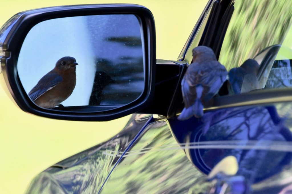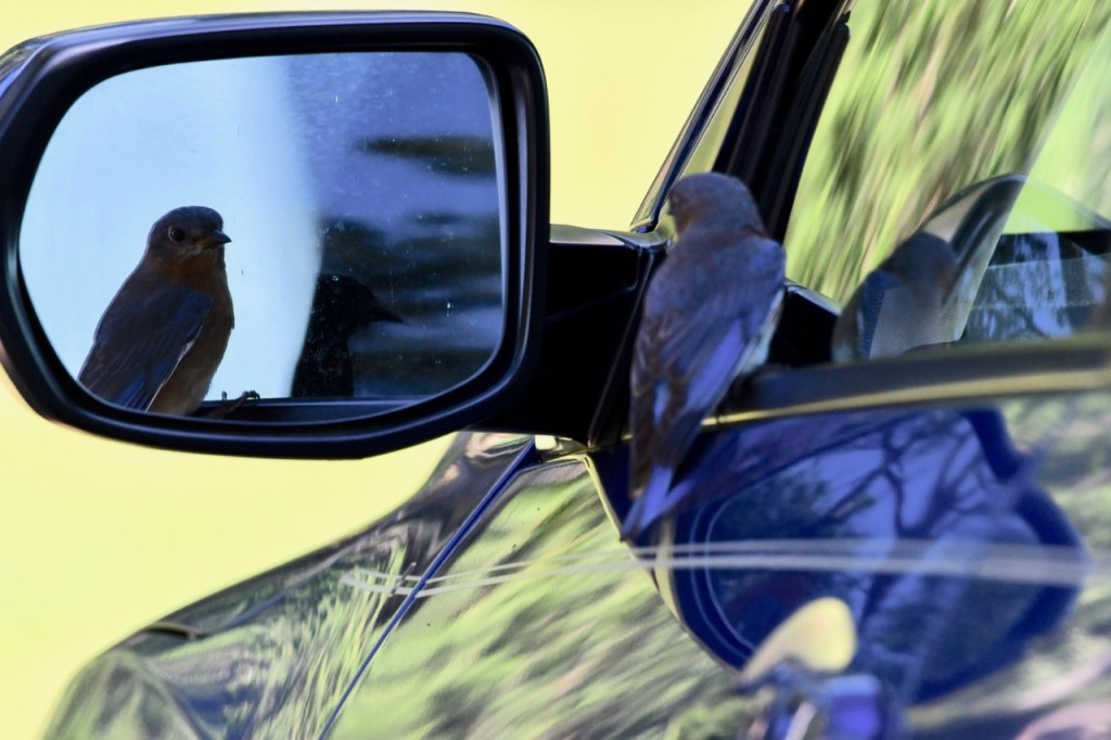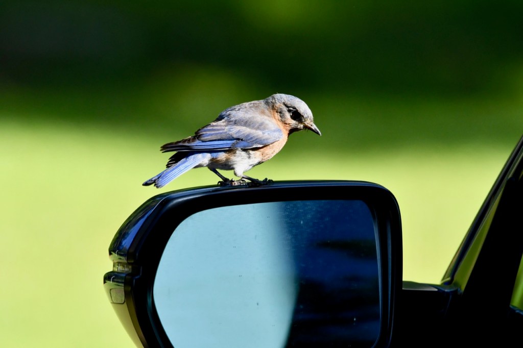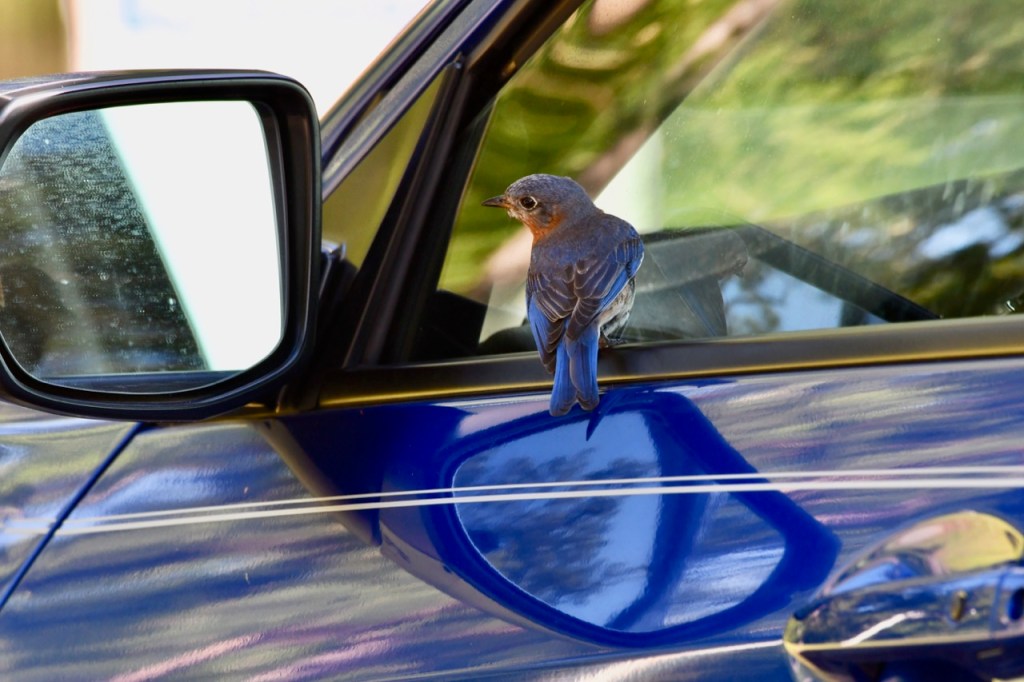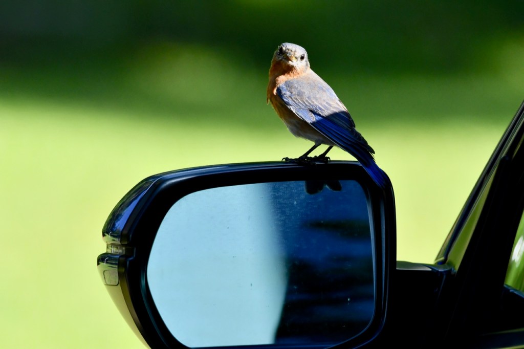 Eastern Bluebird in my Rearview Mirror lisacomerphotosJune 4, 2023Birds Post navigation PreviousNext This Eastern Bluebird was fascinated with its reflection in my car window. Share this: Share on X (Opens in new window) X Share on Facebook (Opens in new window) Facebook Like Loading... Related