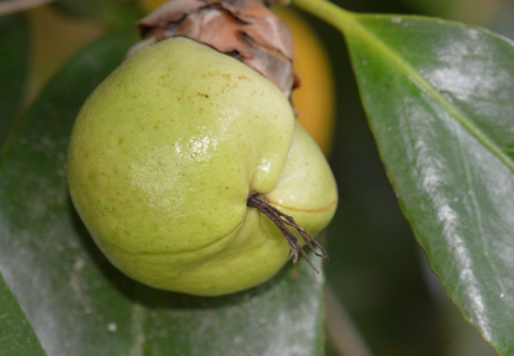 This camellia has been growing in my yard for at least 30 years. I’ve only noticed a seed pod about 3 different times. This year, I noticed around 10 seed pods. I may have to wait until August or October to gather the seeds because it will take that long for the pods to ripen. The first time I noticed the pods, I was able to gather, plant, and grow a camellia plant. It has not flowered yet, but I live to hope that it will one day. I will keep my eye on these pods and be ready to gather the seeds once the pods split open.