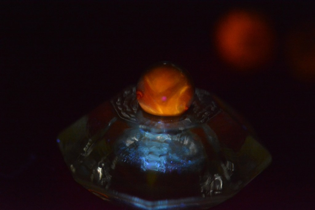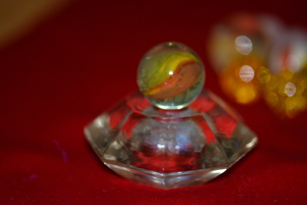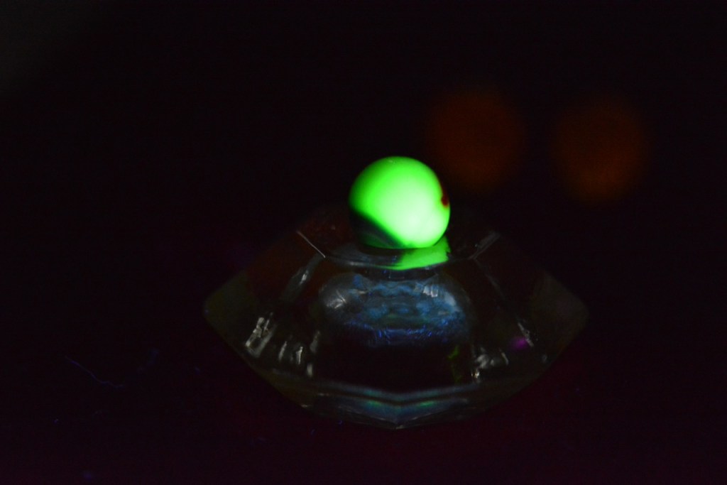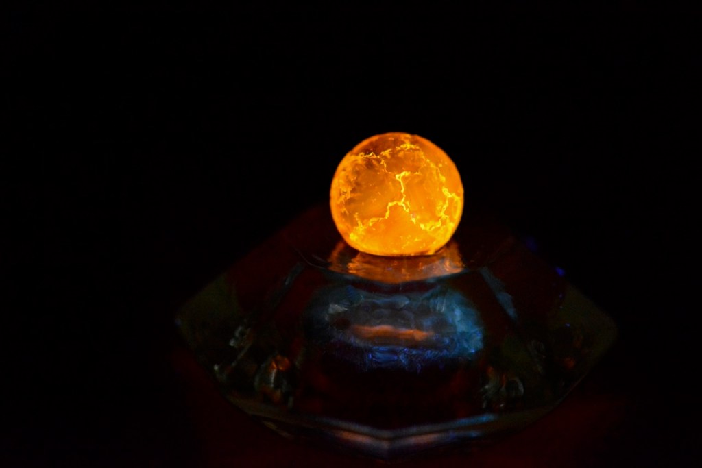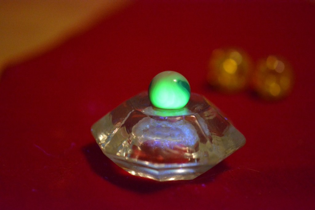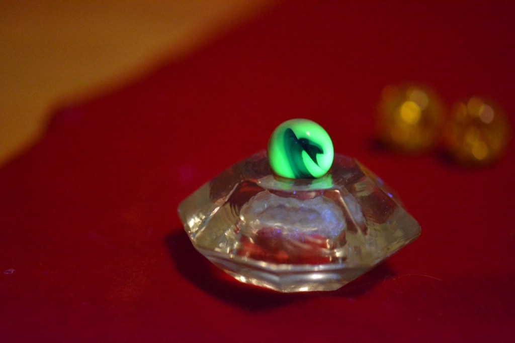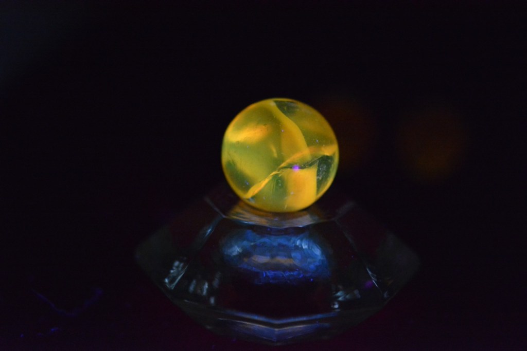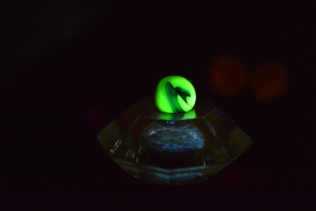 I read that my marbles might fluoresce better under a shortwave uv light than the one I have, so I purchased a new light (I0DO 365nm Shortwave Uv Light). It says the lights are filtered with a black glass so that only the uv light shows through. You can compare to some of my previous marble photos to see the difference. https://lcomer.com/2023/02/26/glowing-marbles/