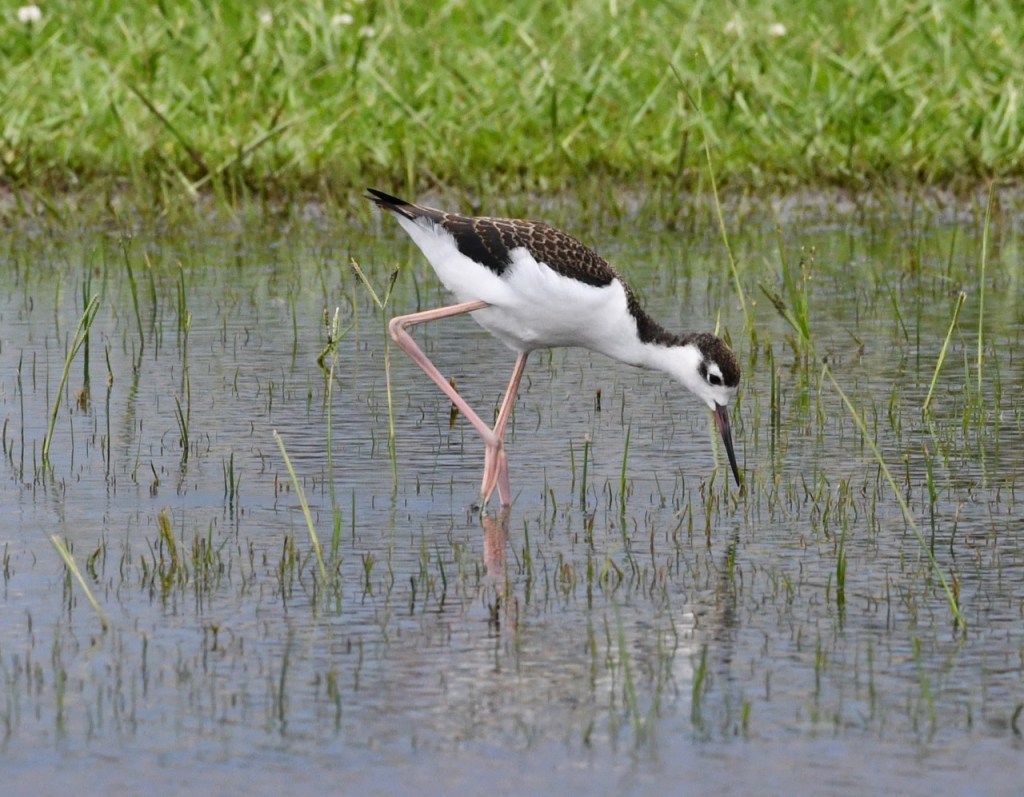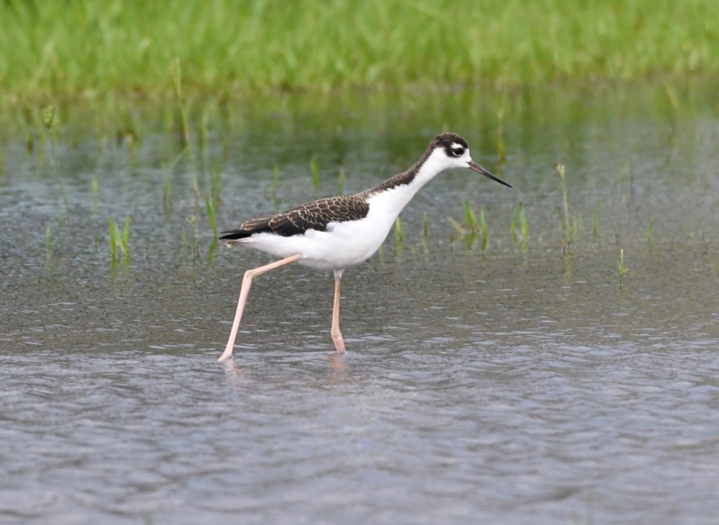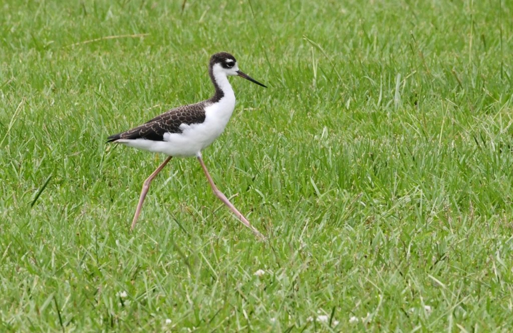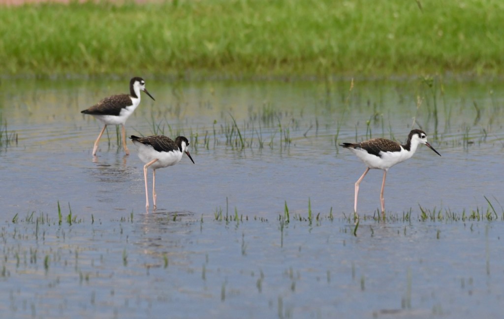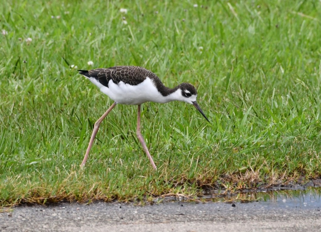 These are juvenile Black-necked Stilts. You can tell because they are more brownish than black and have a scalloped pattern on their back. I saw these at the USS Alabama Patriot Park after the rain.