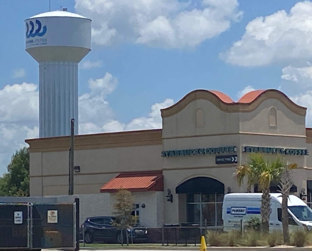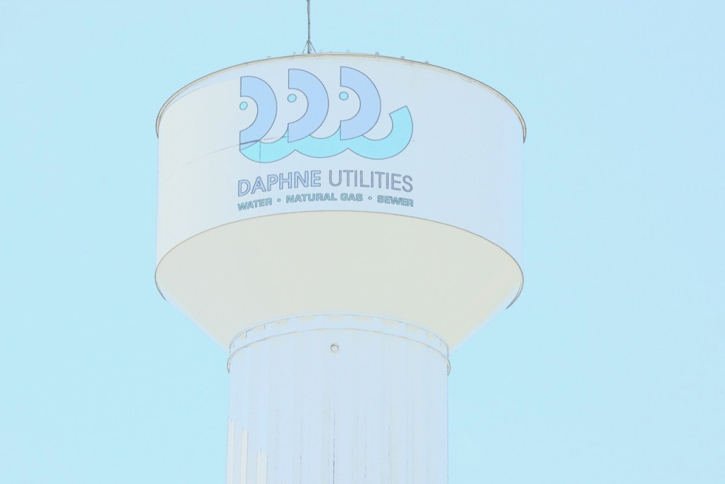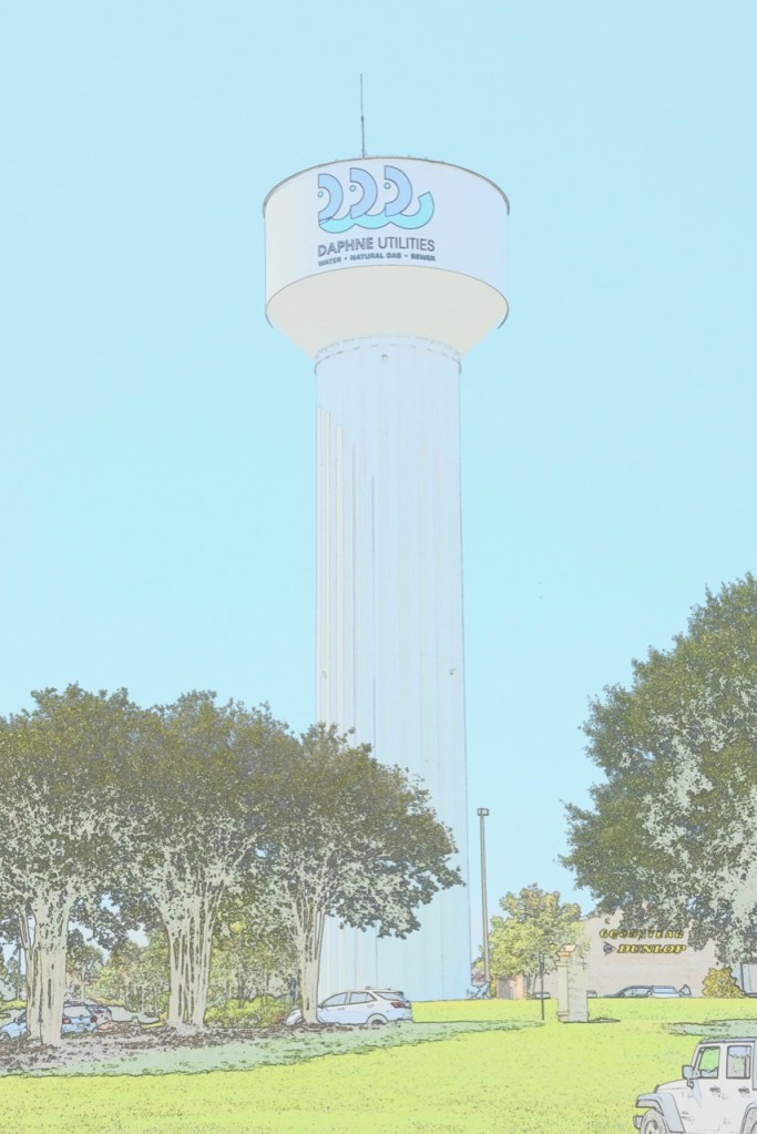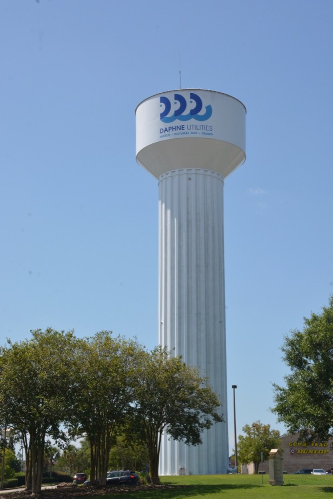 If asked where the Eastern Shore Centre is located, you would probably say Malbis since that is the exit that you use to get there. When you look up the address, it says it is located in Spanish Fort. When you drive in the first entrance, you see this Daphne Water Tower. It is a very confusing address.