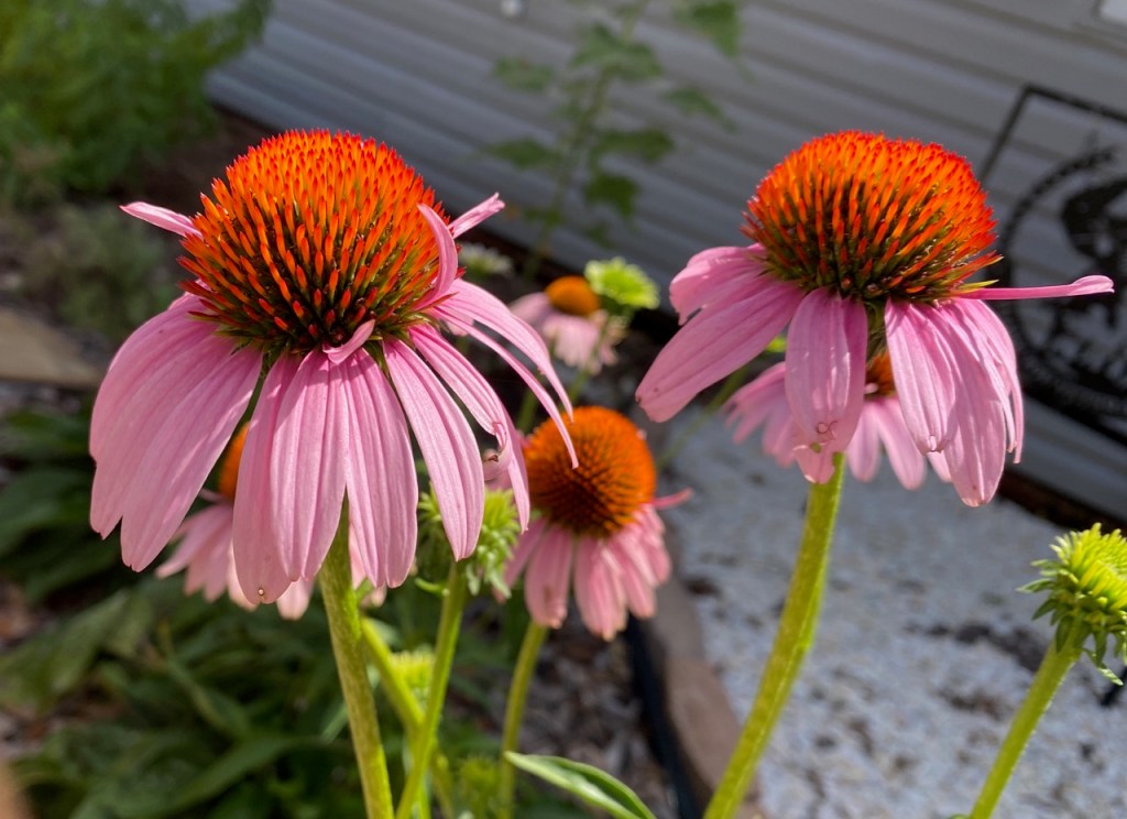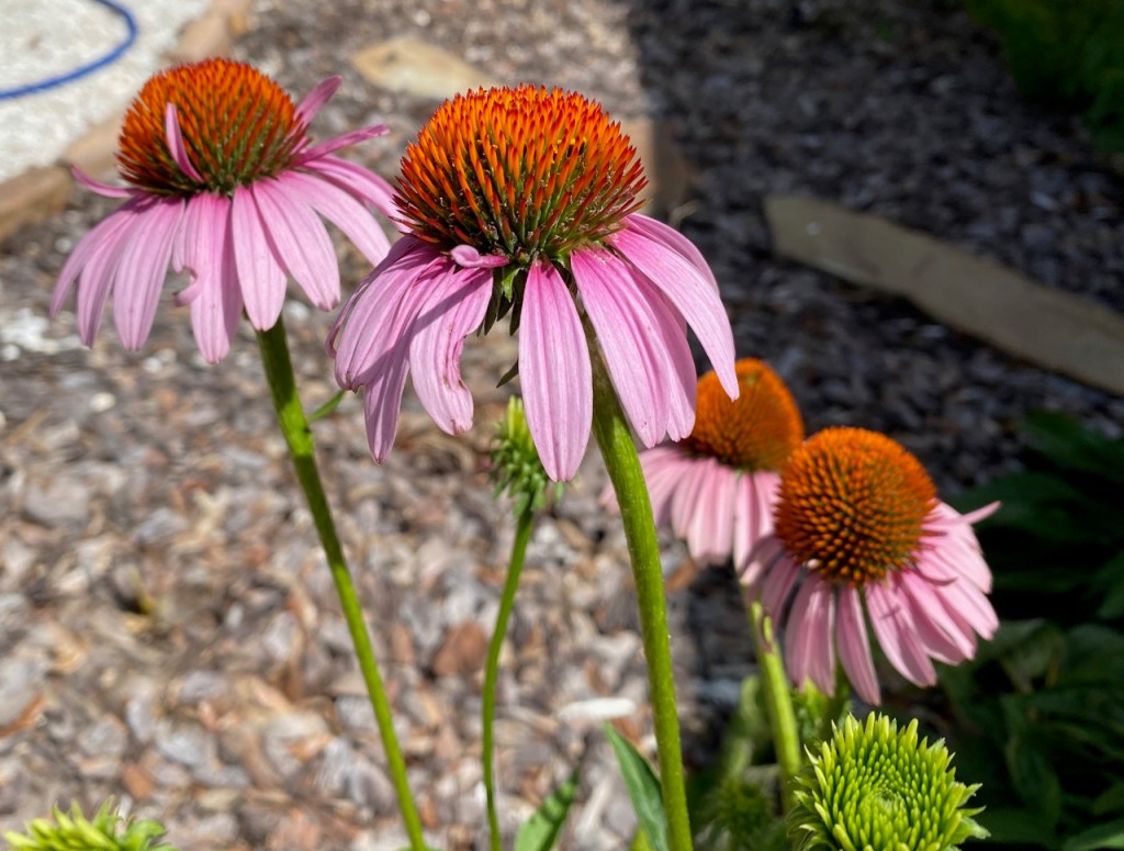 These coneflowers are growing in the butterfly garden at my school. I saw a butterfly right before I stopped to take the photos. The teachers received a message to look for eggs because it was the season for butterflies to start laying.