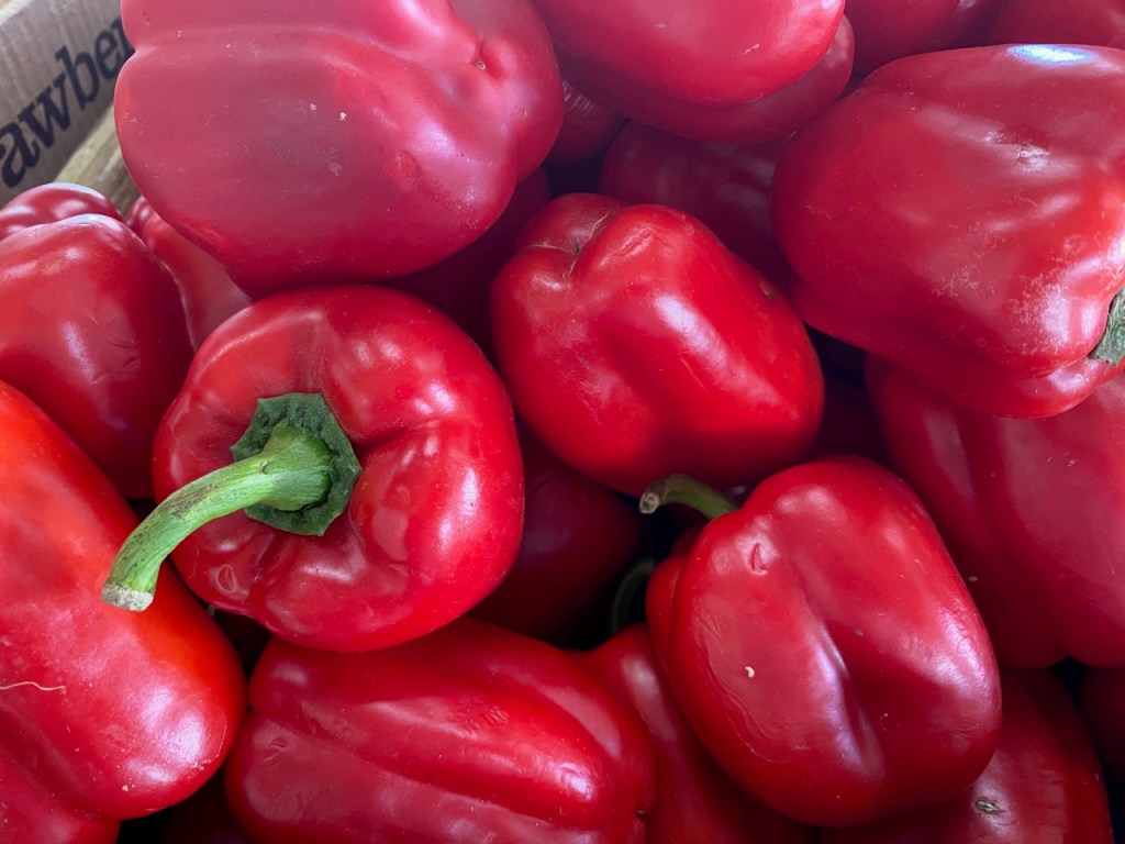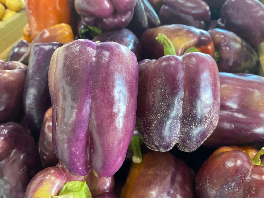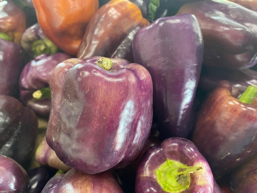 Well I thought I had seen every color of Bell Pepper until I found these purple ones at Burris Farm Market in Loxley. I couldn’t pass up taking photos of the red, yellow, green, and orange bell peppers as well. I saw the orange ones at Piggly Wiggly in Loxley.