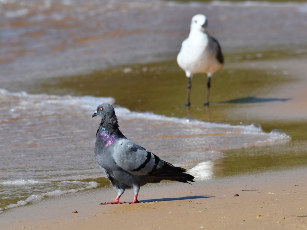 Pigeons were just walking around on the beach at Fairhope Municipal Park. I normally see them at the pier. It was a lot of fun to see them walking in the sand.