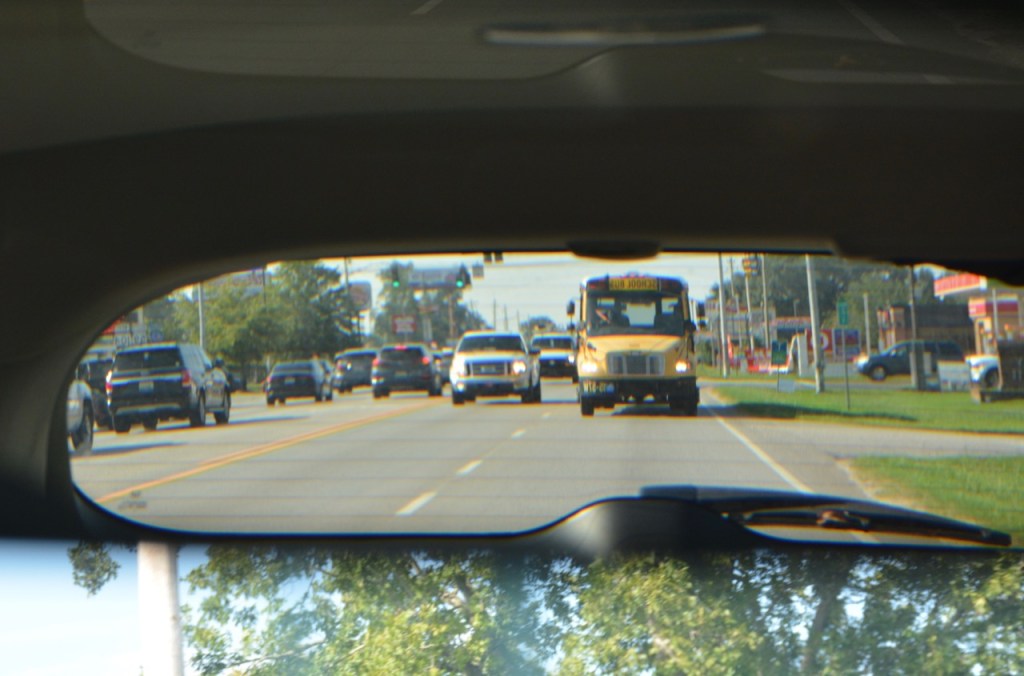 The National Highway Traffic and Safety Administration recommends that school buses be painted National School Bus Glossy Yellow. The wavelength of the popular school-bus color is “right smack in the middle” of the peak wavelengths that stimulate the photoreceptor cells our eyes use to perceive red and green. You get double the amount of transmission to the brain. Remarkably, “That color that we are calling school bus yellow hits both peaks equally.” So it is hard for drivers to miss a school bus, even in their peripheral vision. https://www.smithsonianmag.com/history/history-how-school-buses-became-yellow-180973041/