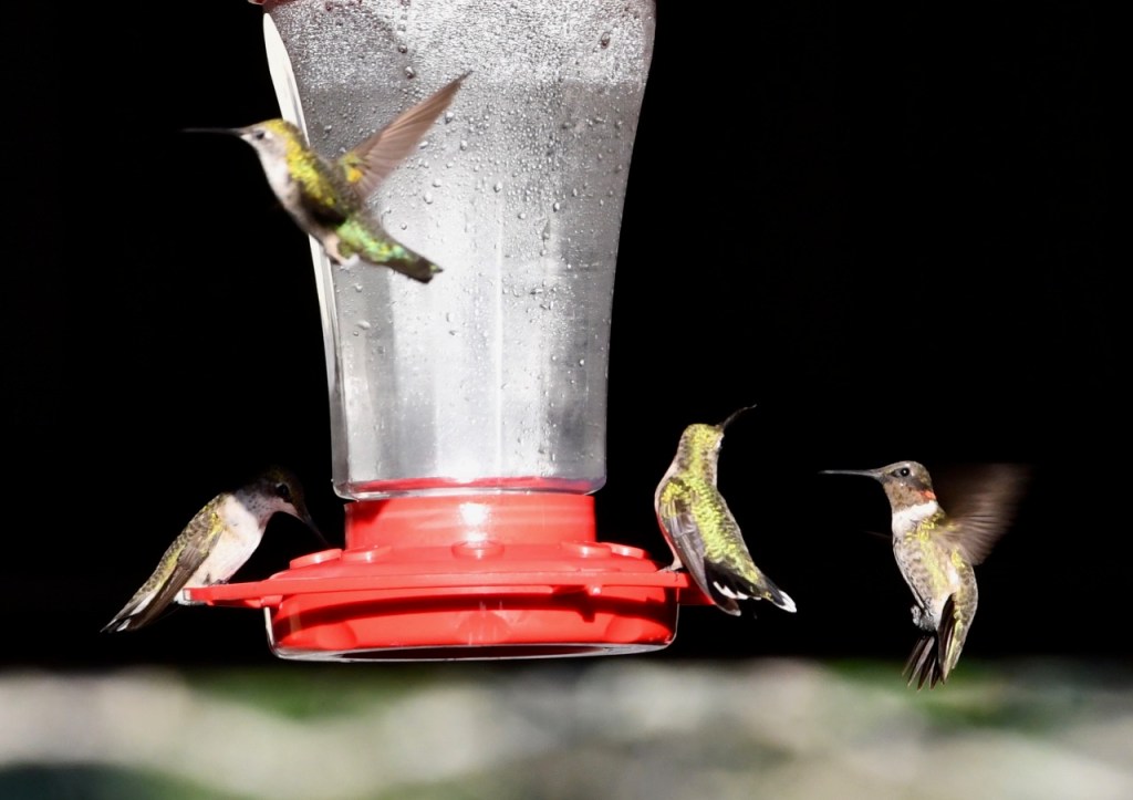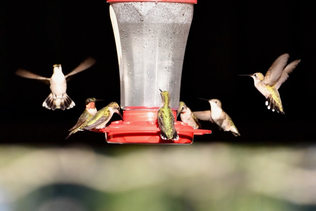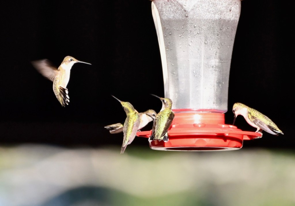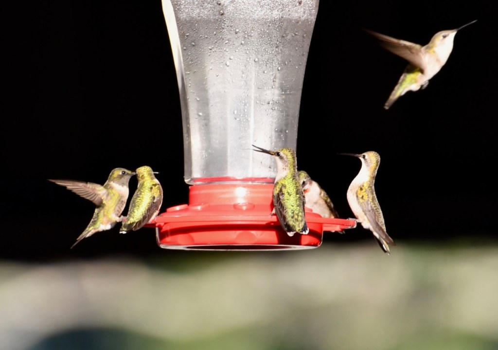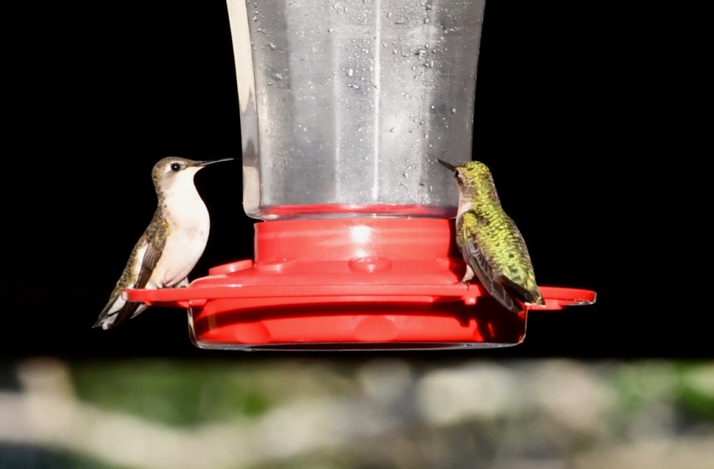 A few more photos of the Ruby-throated Hummingbirds that are flying around the feeder at my mom’s neighbor’s house.