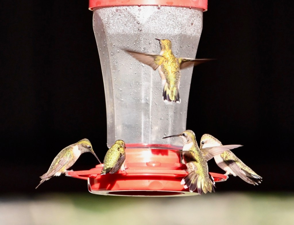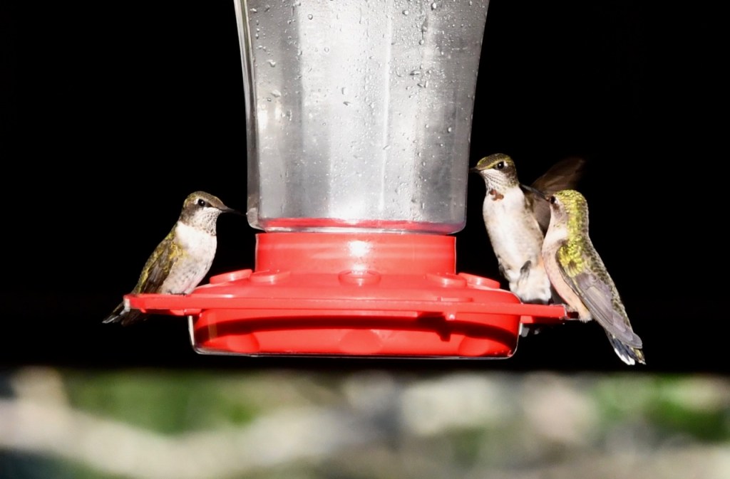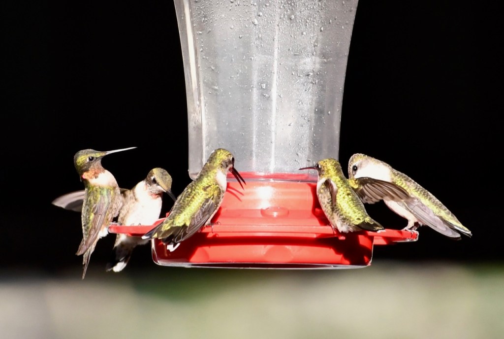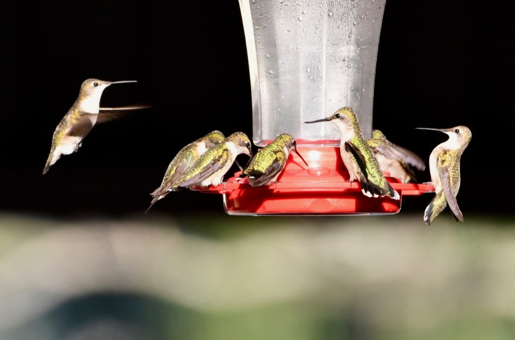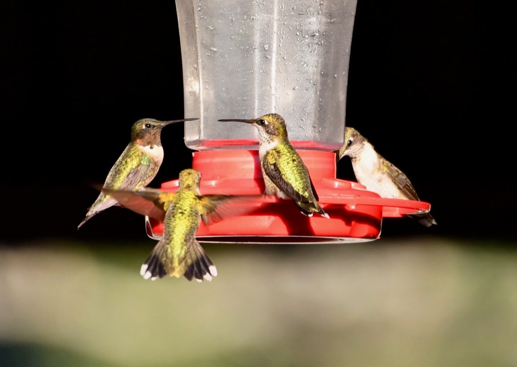 A few more photos of the Ruby-throated Hummingbirds that are flying around the feeder at my mom’s neighbor’s house.