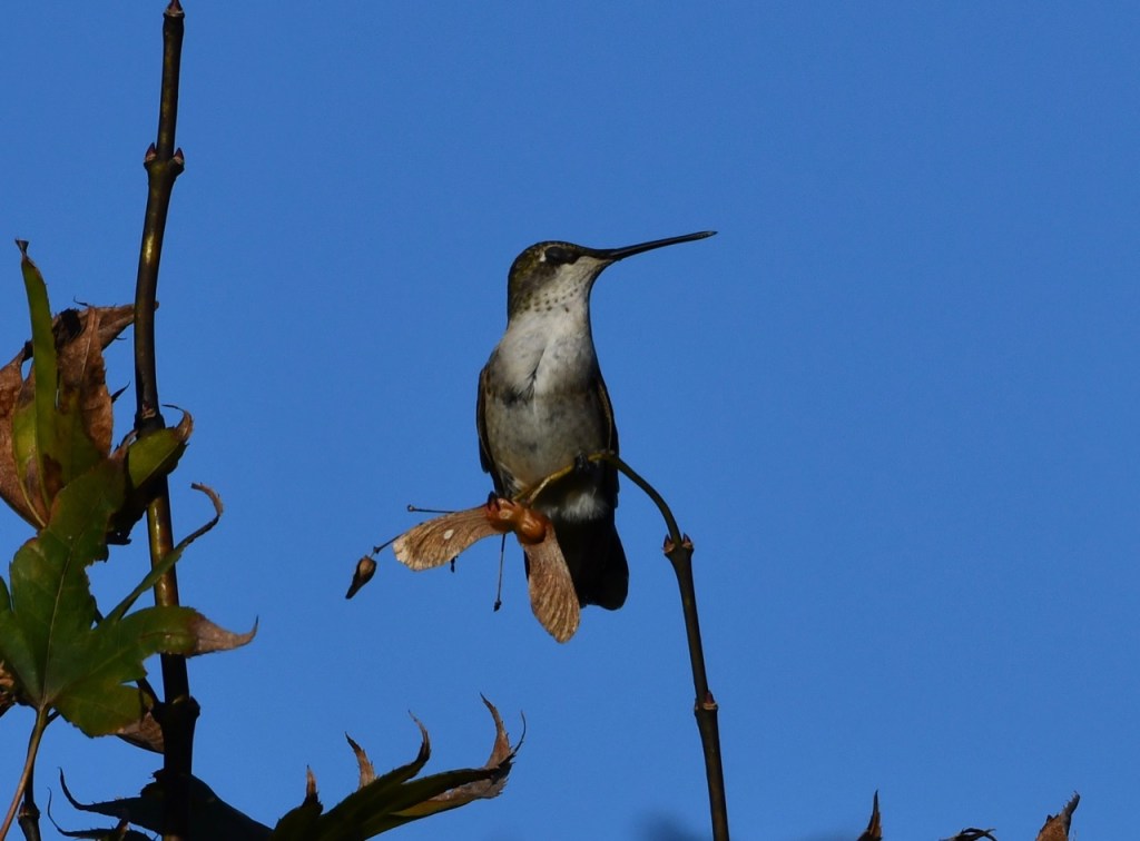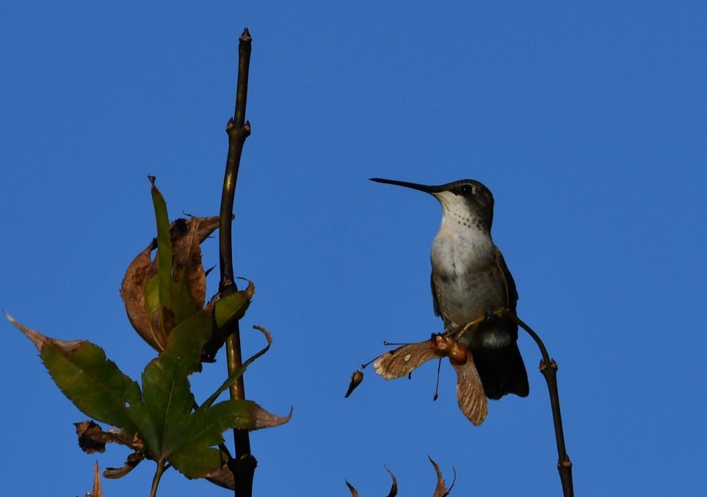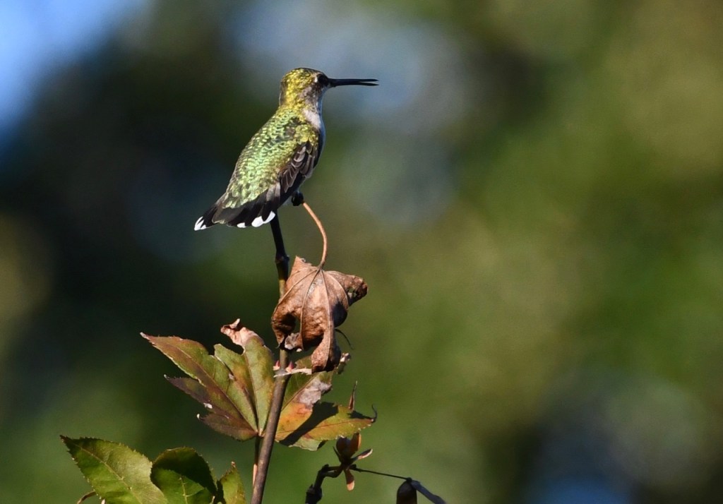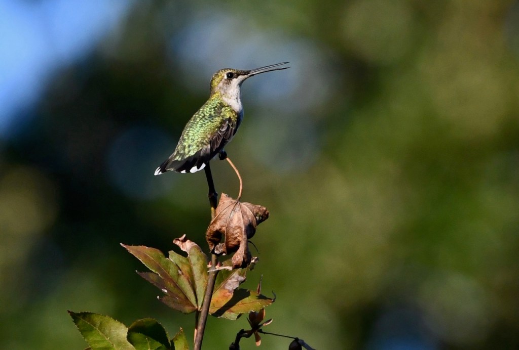 It is not very often that you see a Ruby-throated Hummingbird resting in a tree. They are so small that they blend in and look like a leaf or branch. Luckily I watched as this one flew around and land on the branch.