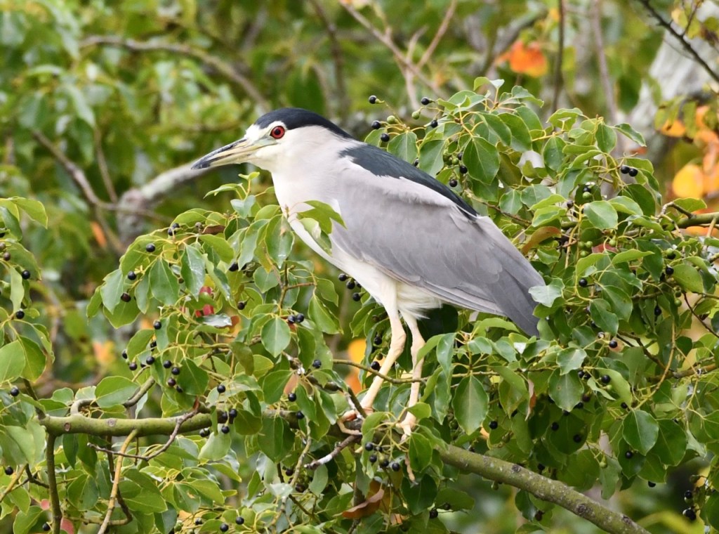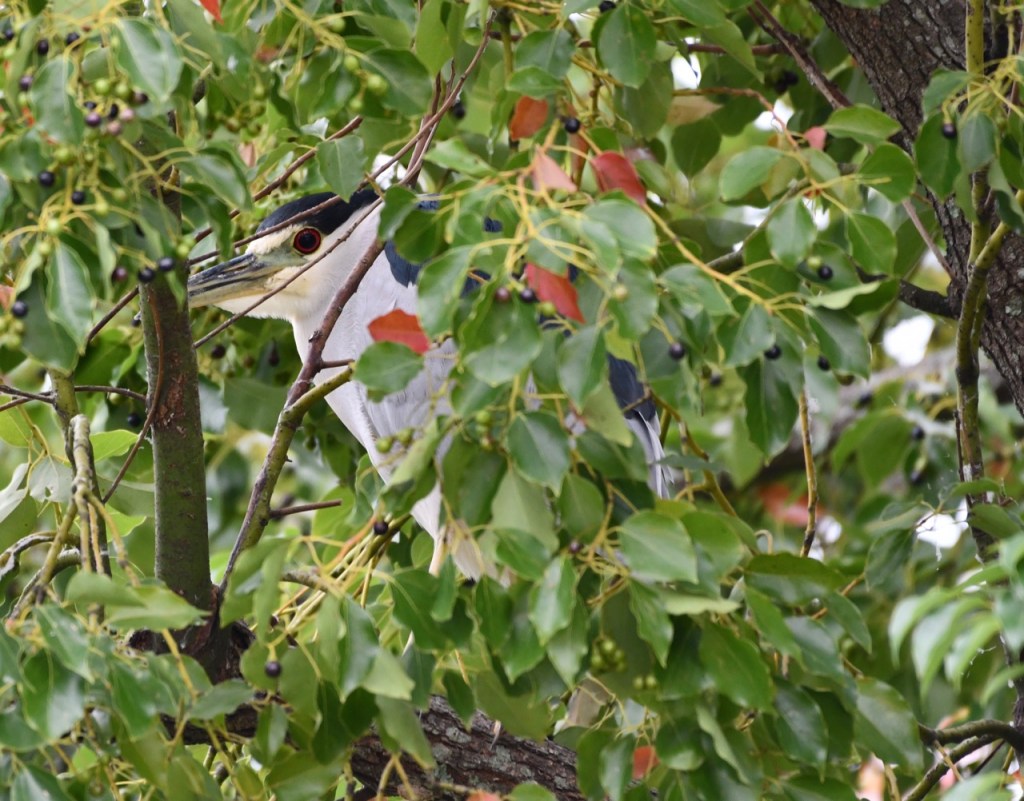 This is the most Black-crowned Night Herons I have ever seen in one location. I saw at least 4 herons in the tree. I believe they belong to the nest in the top of the tree in back. It has been a couple of years since I spotted a Black-crowned Night Heron, so this was an exciting find.