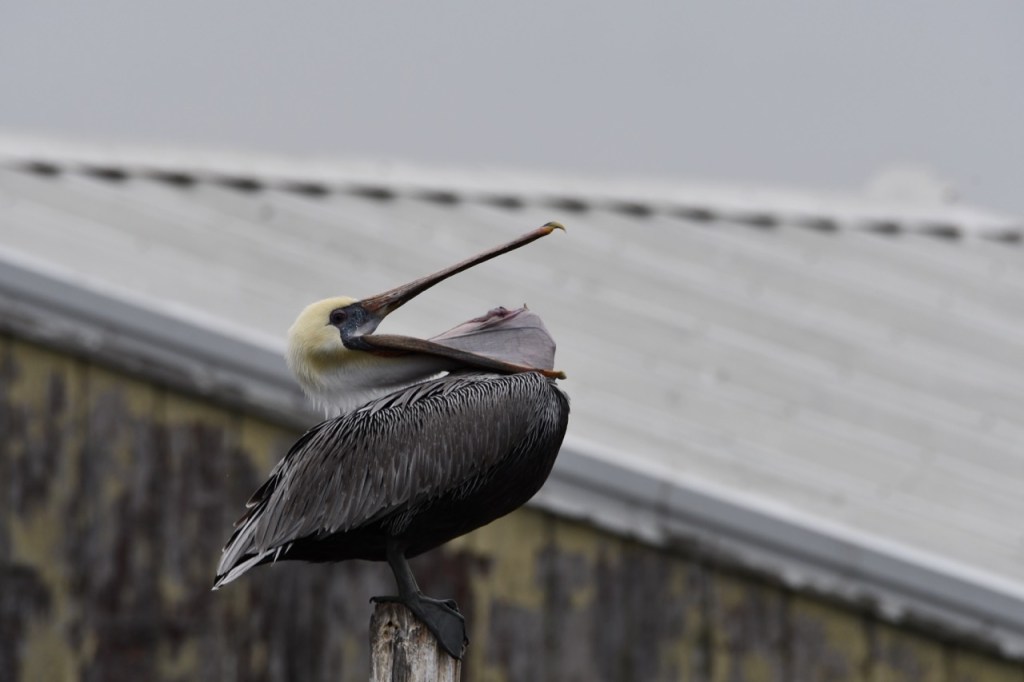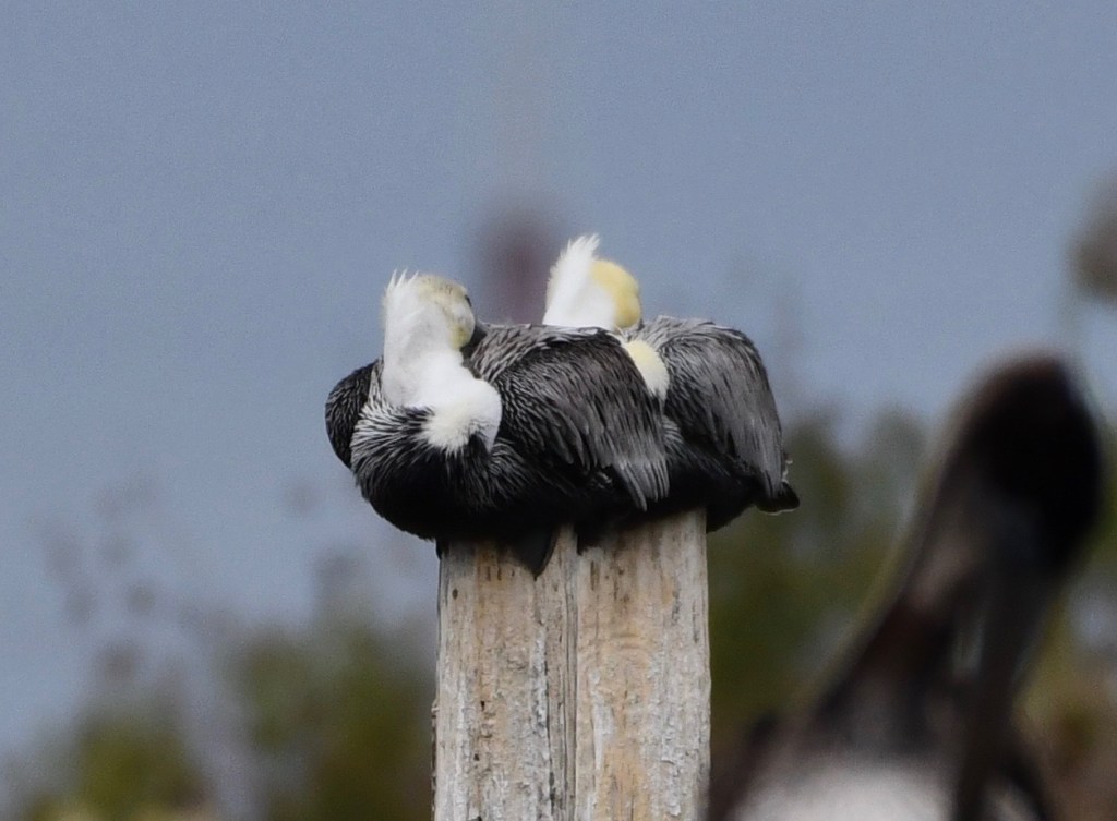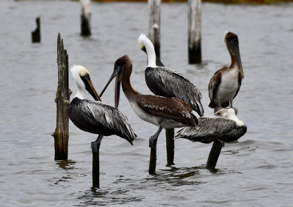 The boat launch across from Battleship Memorial Park is always a great place to stop and see pelicans. They like to perch on the post around the sunken pier and building.