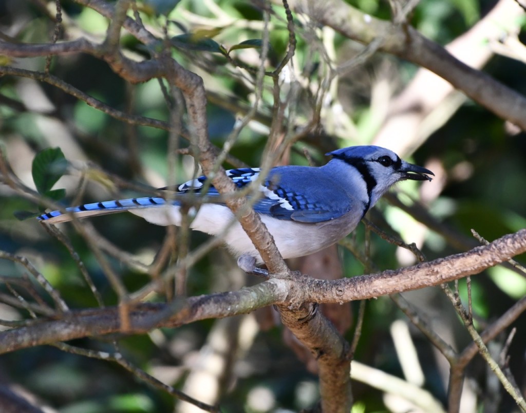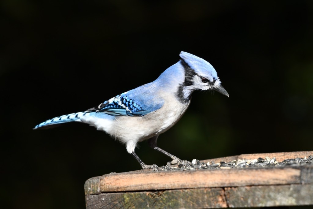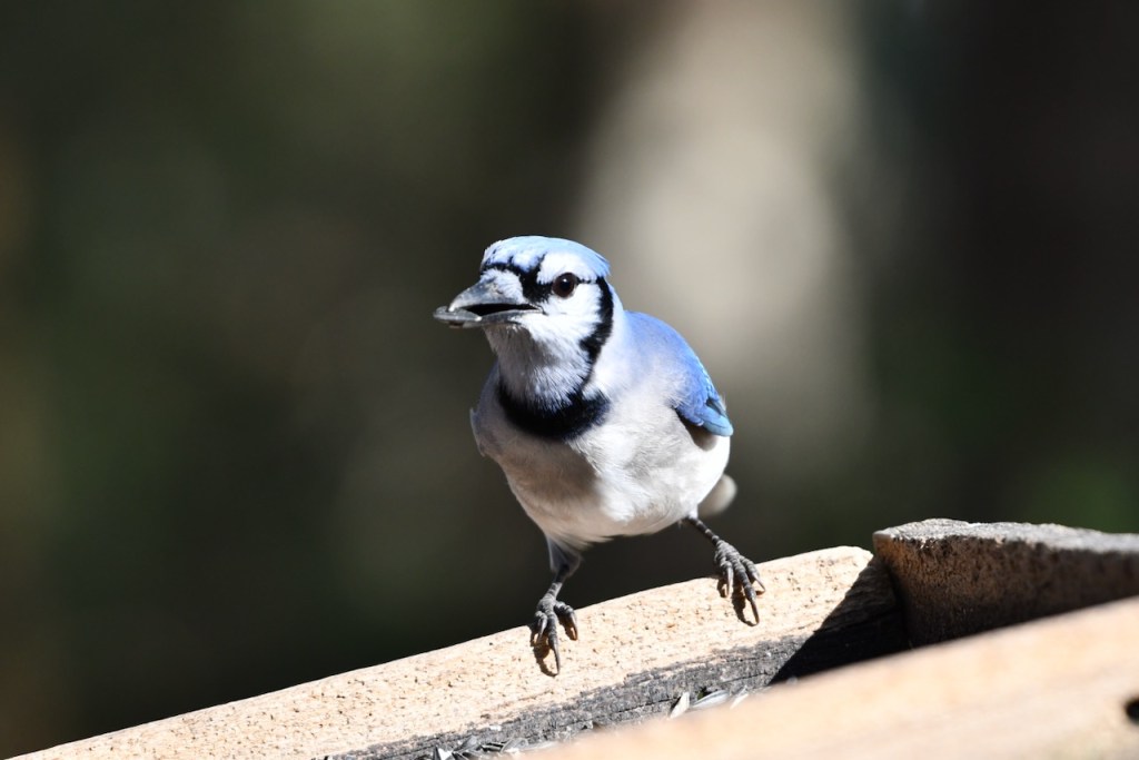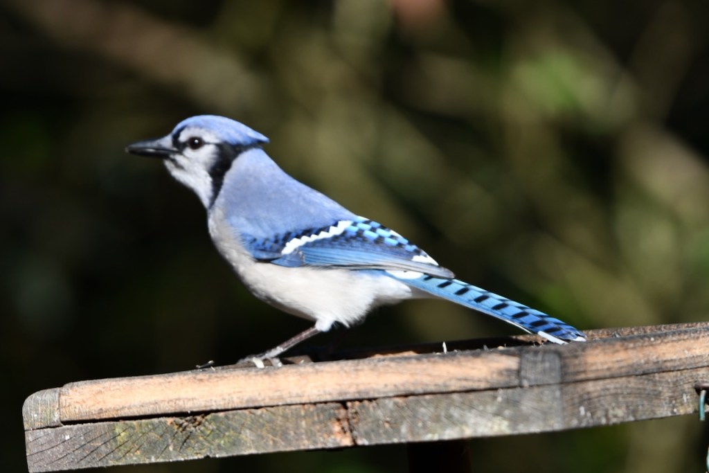 Blue Jays are such pretty birds. The male and female have the same markings so unless you can compare their size, you can’t tell them apart. The male is slightly larger. Blue Jays can mimic the sound of a hawk. They like the black oil sunflower seed that I place on my feeder.