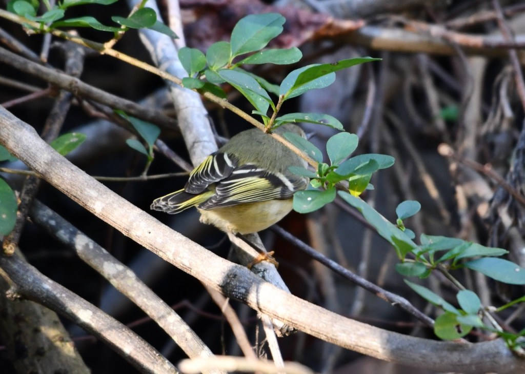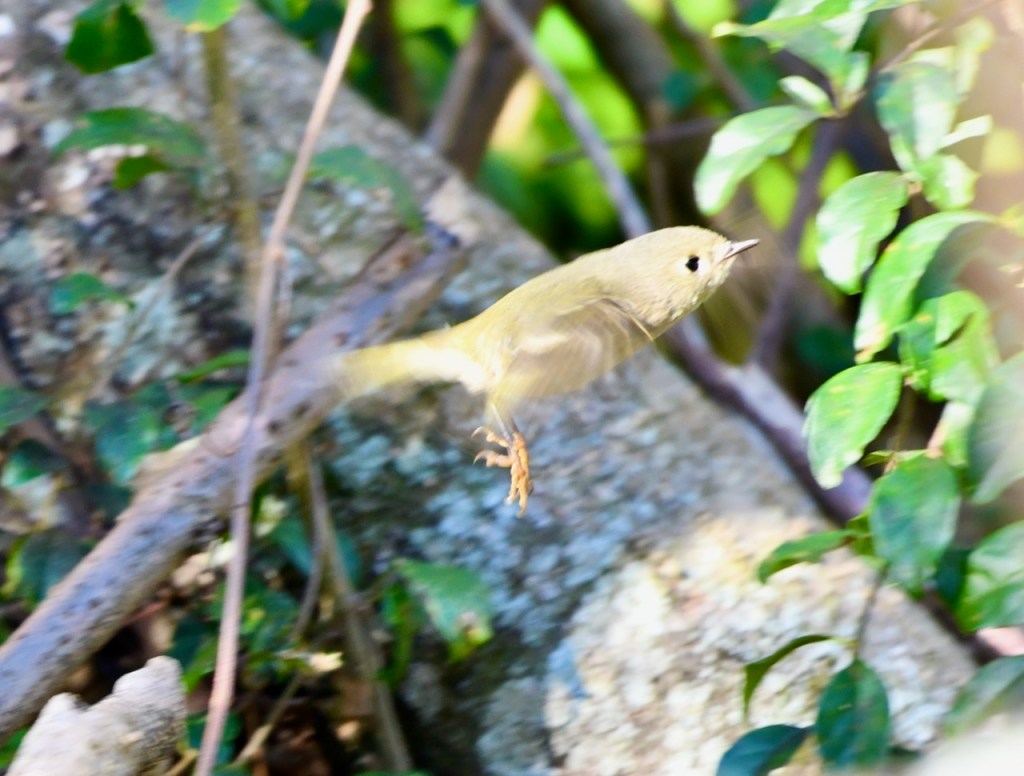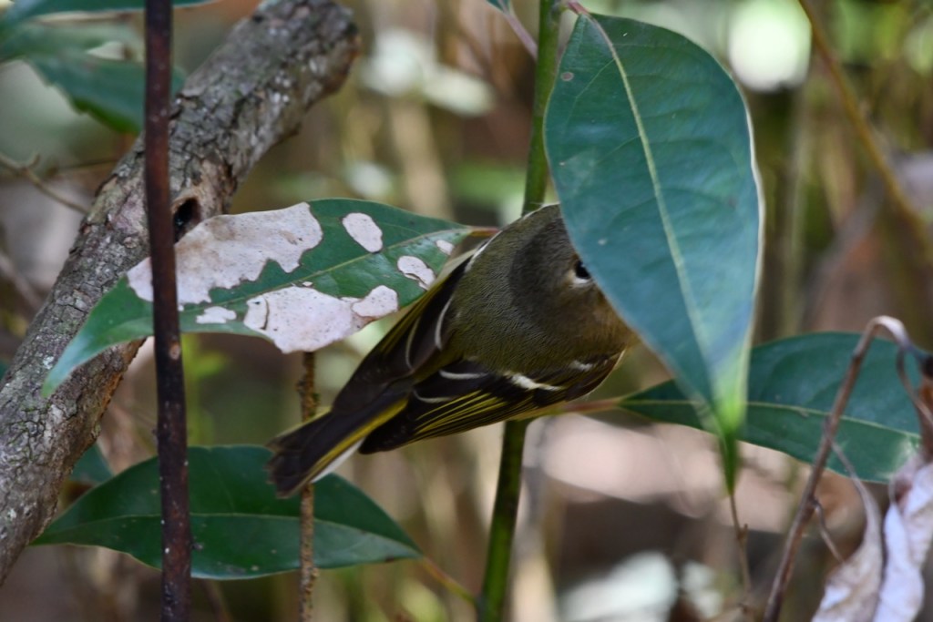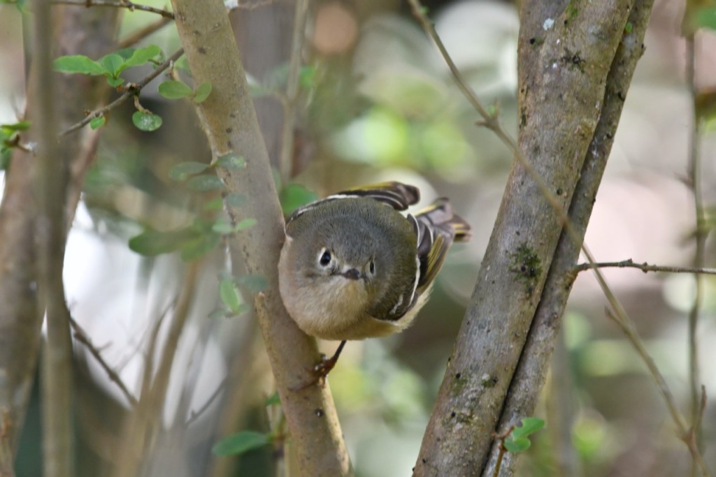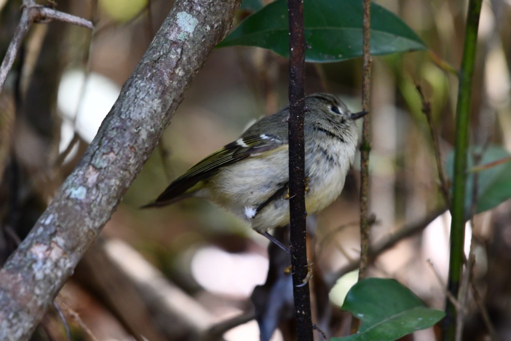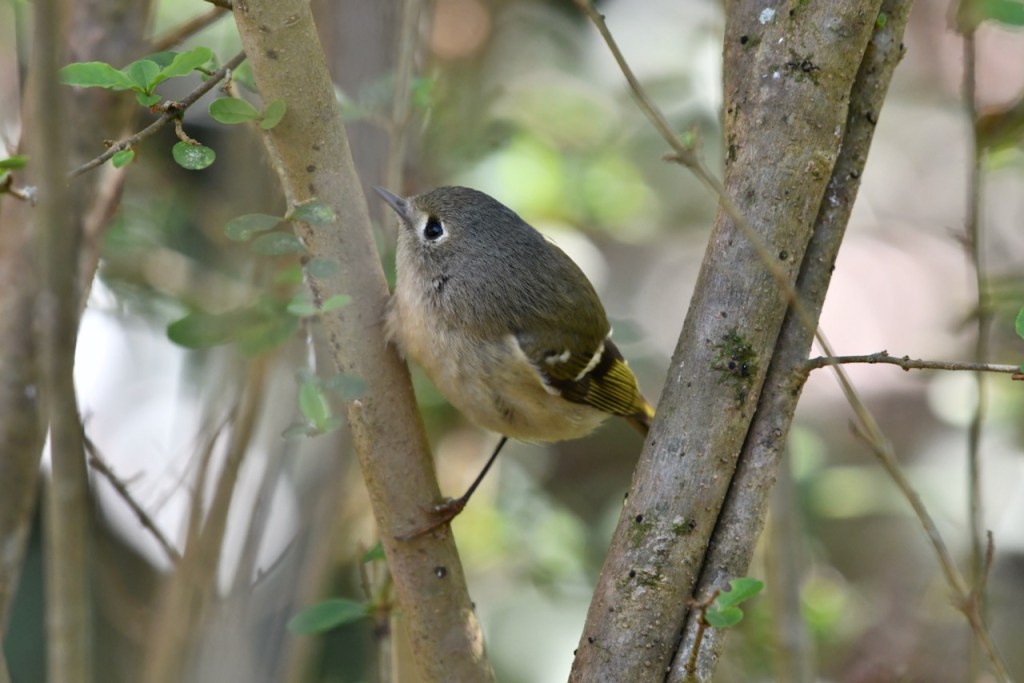 It is hard to get a good photo of a Ruby Crowned Kinglet because it does not stay still for very long. It is constantly moving from one spot to another. Of course, that is how I find them in my yard. Their movement is what draws my attention. If you are lucky, you will see a small ruby spot on the male’s head.