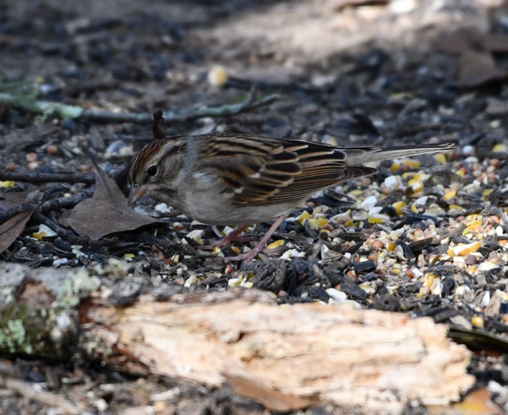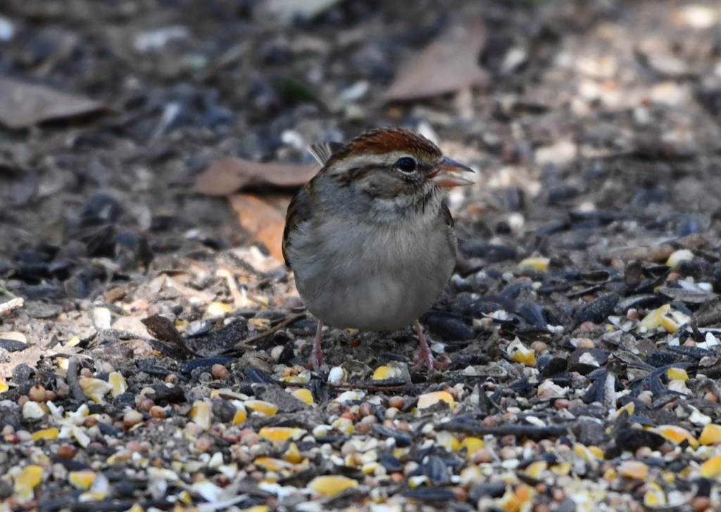 Chipping Sparrow lisacomerphotosJanuary 24, 2024Birds Post navigation PreviousNext I see these Chipping Sparrows mostly during the winter eating seed that I’ve spread on the ground. Share this: Click to share on X (Opens in new window) X Click to share on Facebook (Opens in new window) Facebook Like Loading... Related