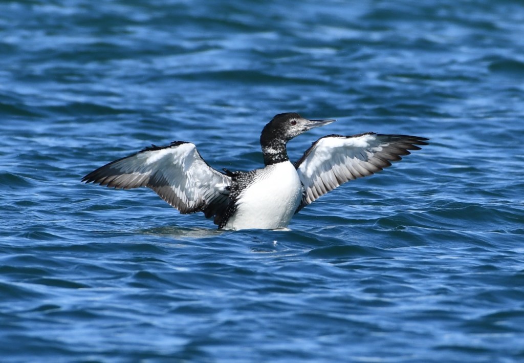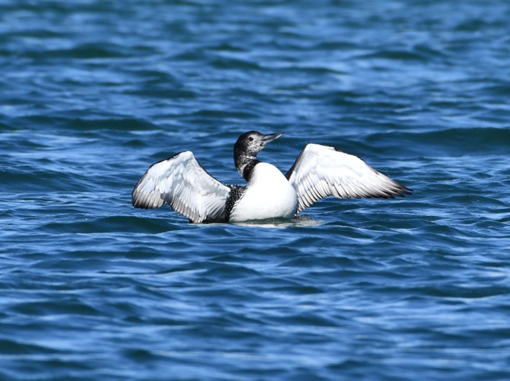 Common Loons are powerful, agile divers that catch small fish in fast underwater chases. They are less suited to land, and typically come ashore only to nest. https://www.allaboutbirds.org/guide/Common_Loon/overview#