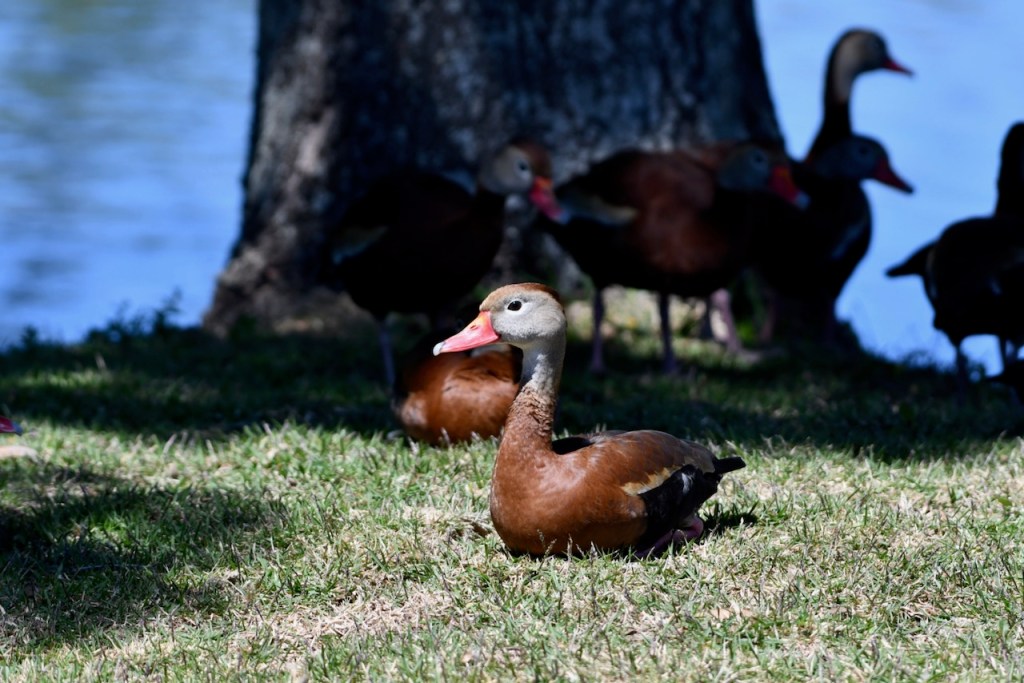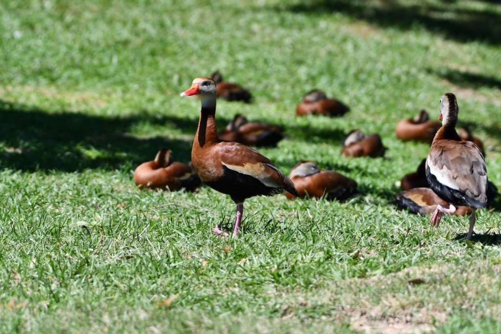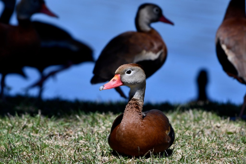 On my drive home from the beach, I like to stop by the golf course to see if the ducks are out. I wish this website had video, because the sound they make is so much fun to listen to. They don’t quack, they whistle.