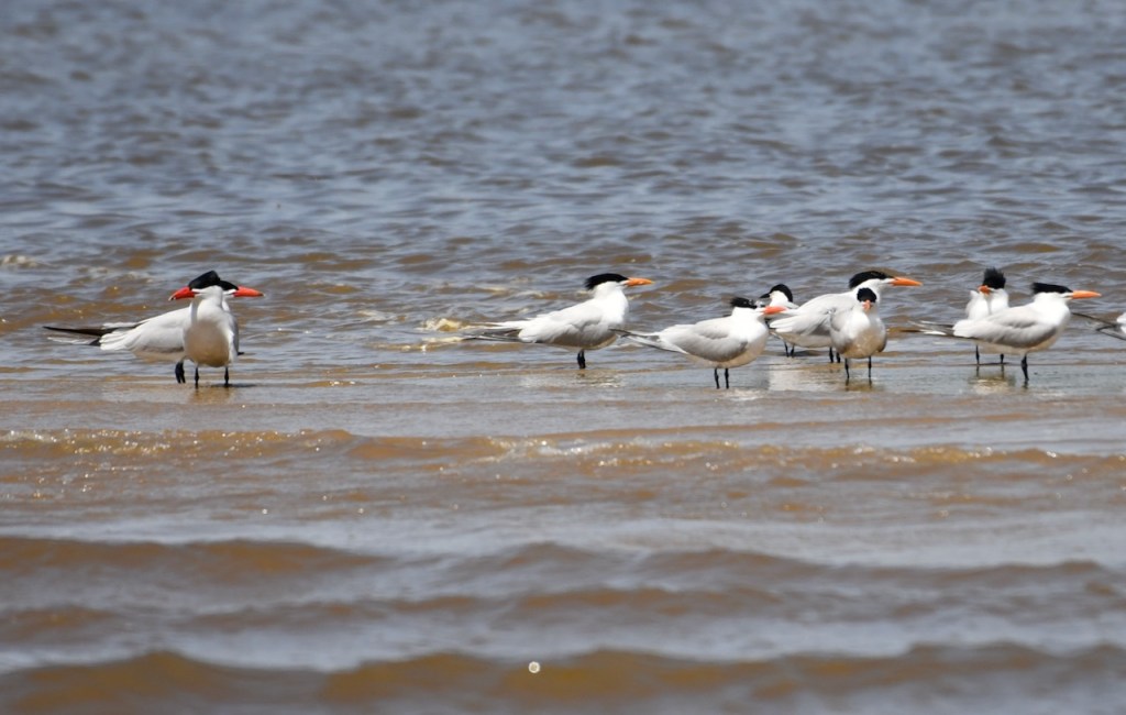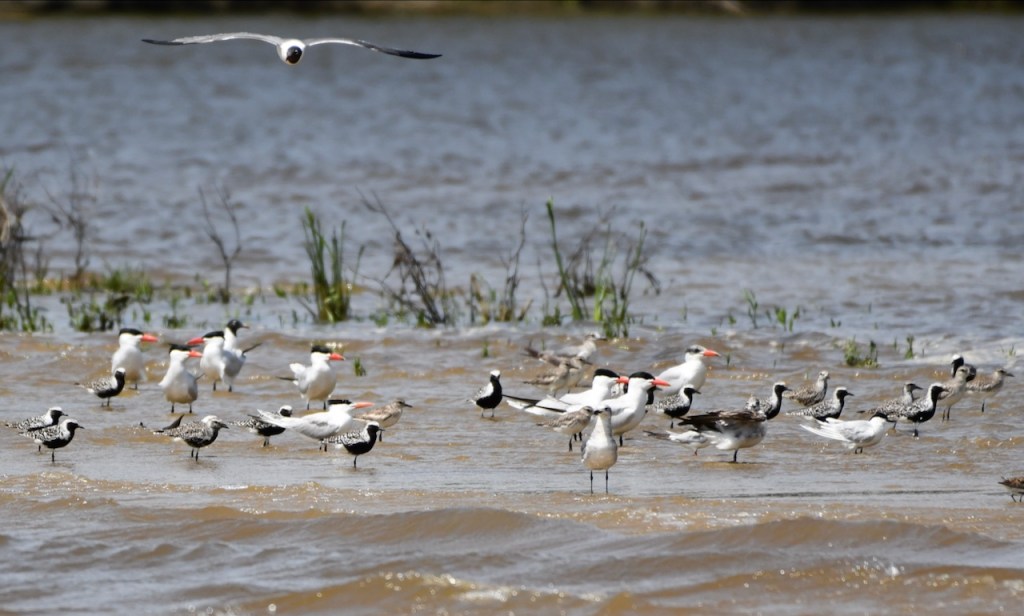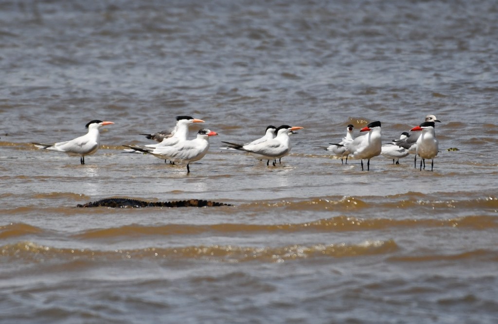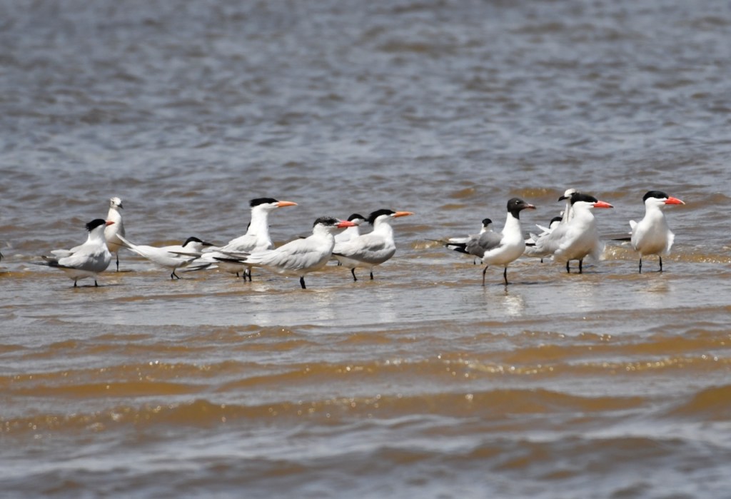As you leave the waterway behind 5 Rivers and enter Blakeley River, there is a small sand bar that the birds like to use. From the boat tour, we could see Caspian, Royal, and Sandwich Terns, Black-bellied Plover, Sandpipers, and Laughing Gulls.