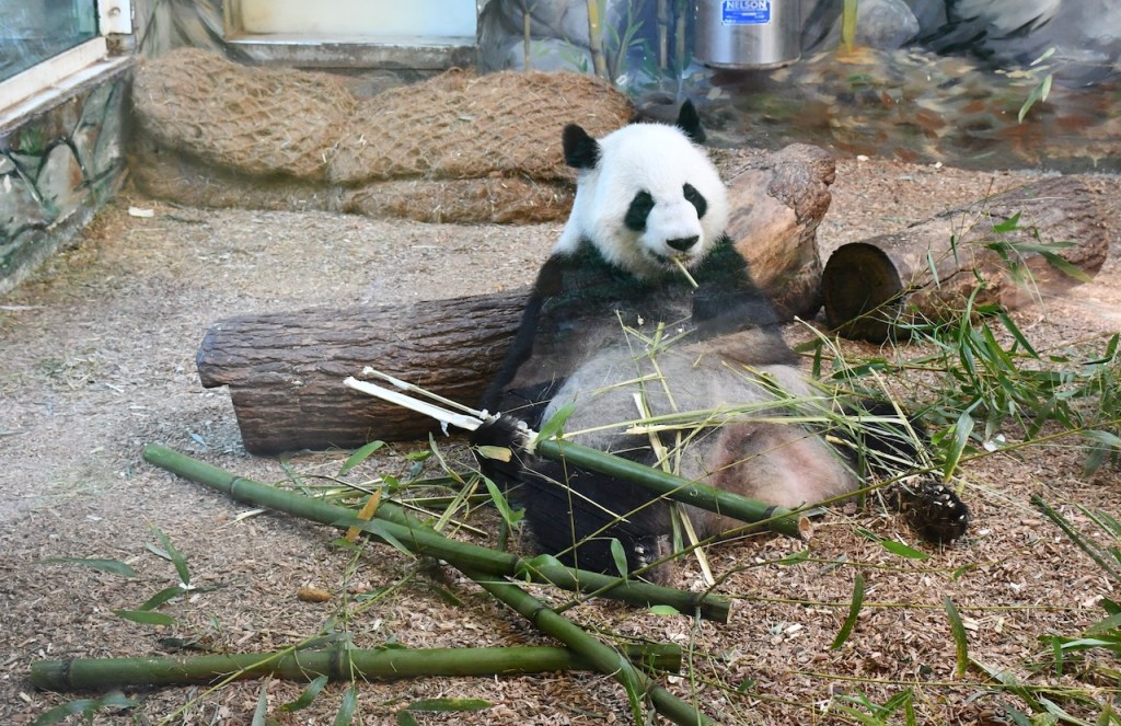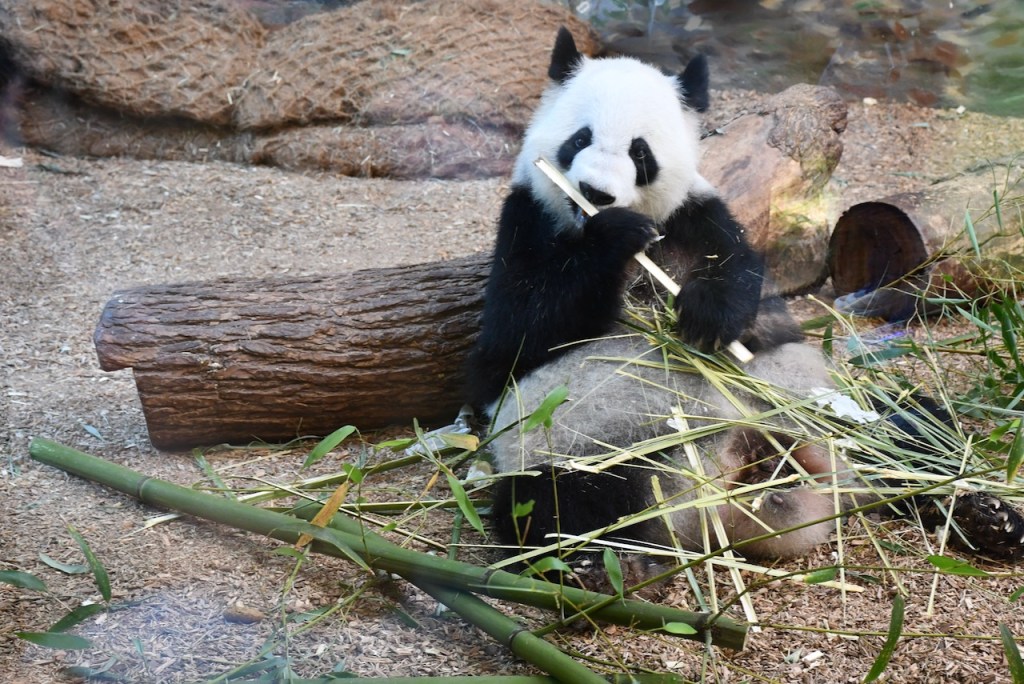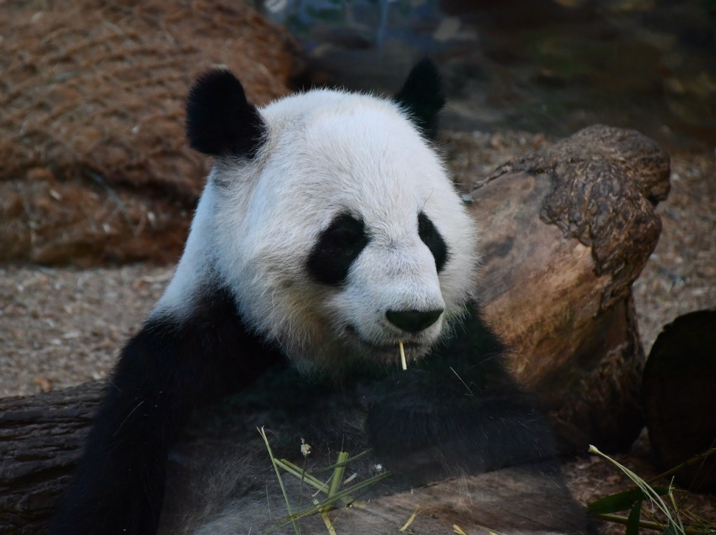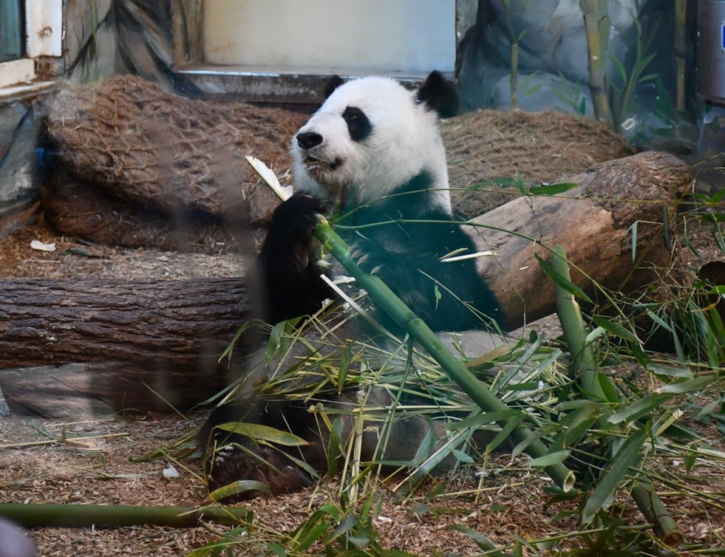 Lun Lun is the female Giant Panda at Zoo Atlanta. She is separated from the male, Yang Yang, and only sees one of her twins at a time. Lun Lun was enjoying eating bamboo in the indoor habitat. These photos are taken through the glass. The Docent in the Giant Panda habitats, Stephanie, was very knowledgeable and we enjoyed talking with her. https://zooatlanta.org/animal-personality/lun-lun/