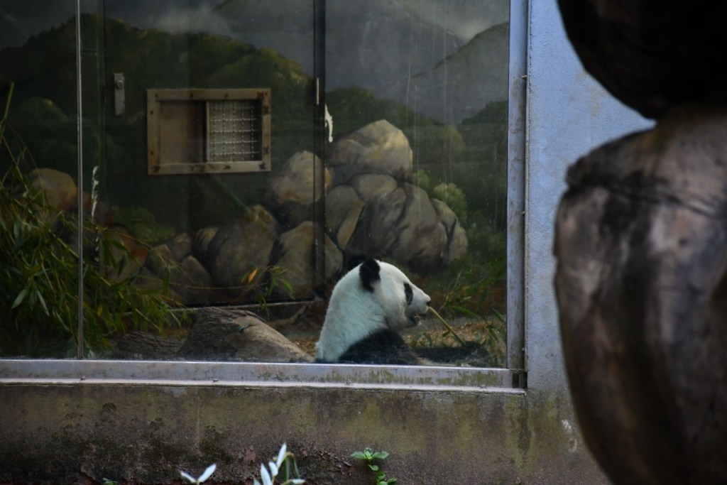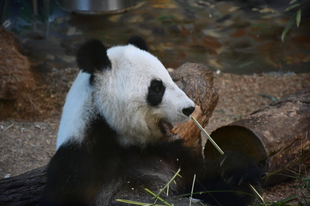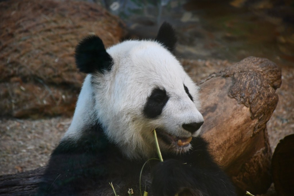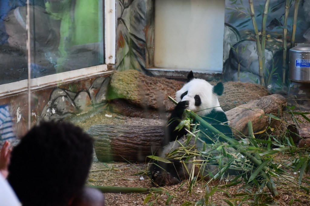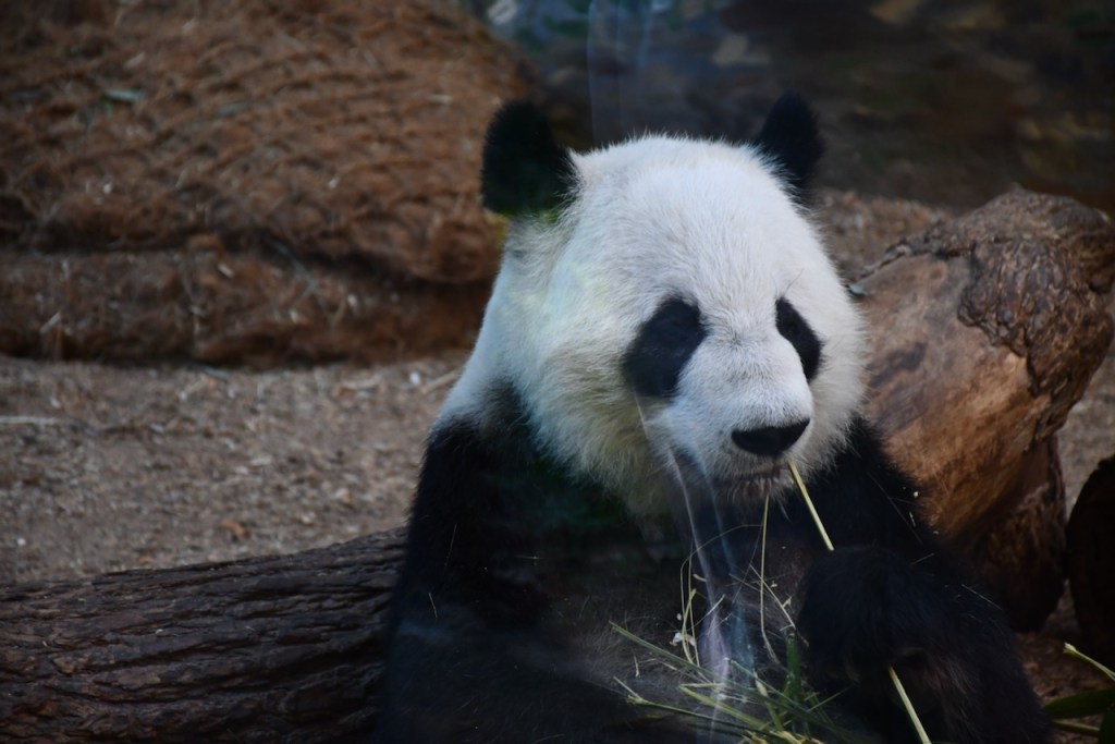 Lun Lun is the female Giant Panda at Zoo Atlanta. She is separated from the male, Yang Yang, and only sees one of her twins at a time. Lun Lun was enjoying eating bamboo in the indoor habitat. These photos are taken through the glass. The Docent in the Giant Panda habitats, Stephanie, was very knowledgeable and we enjoyed talking with her. https://zooatlanta.org/animal-personality/lun-lun/