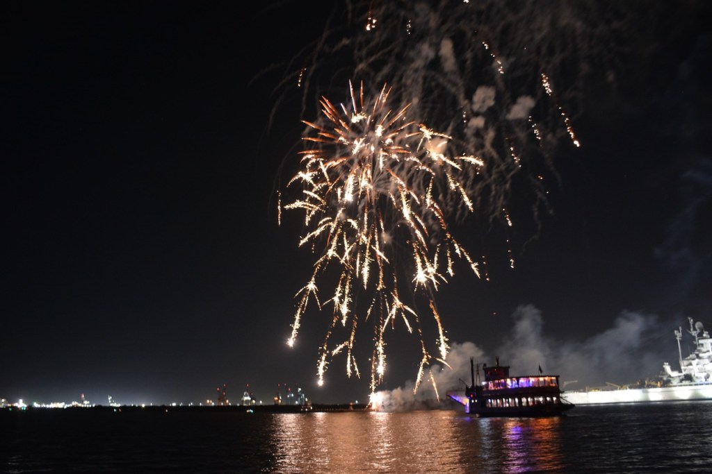 The fireworks cruise out of Historic Blakeley State Park is a great way to spend the 4th of July. We were out on Mobile Bay with hundreds of smaller boats and the Perdido Queen. You get a wonderful view from the water and the reflections add to the show.