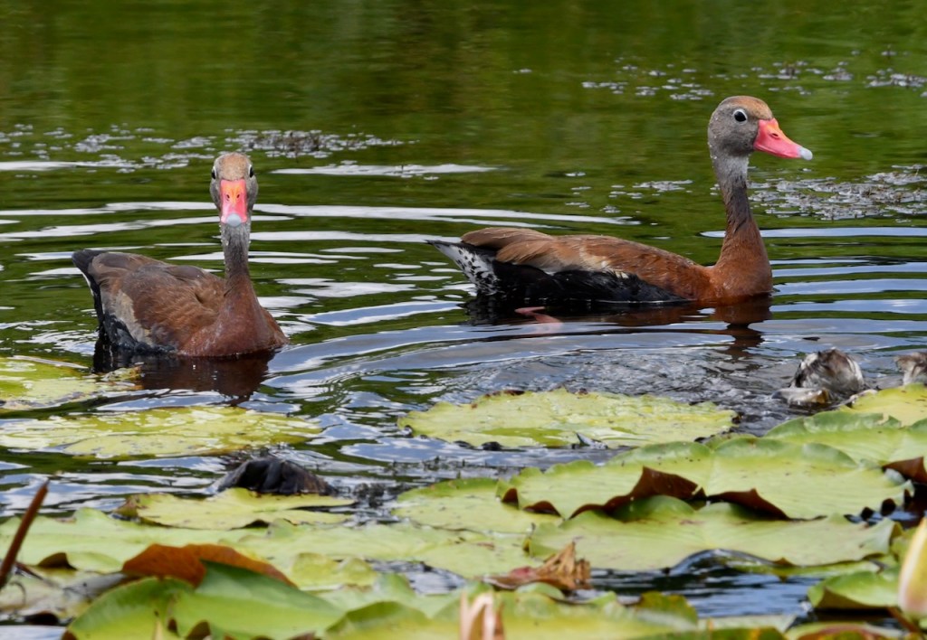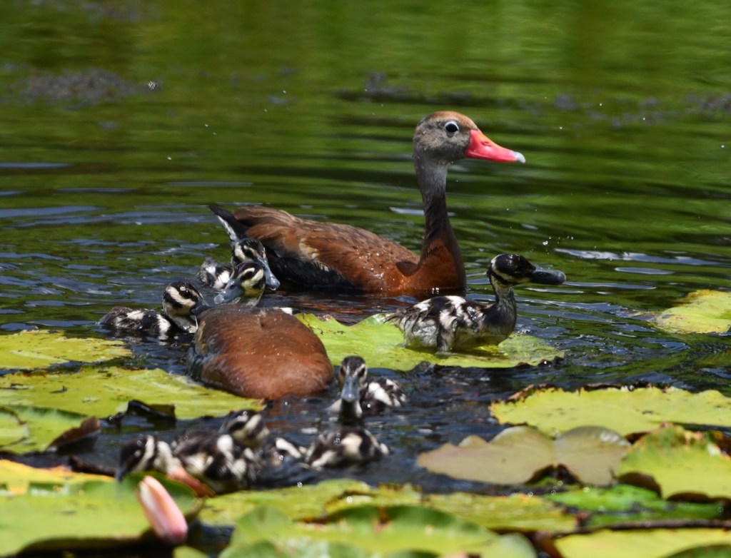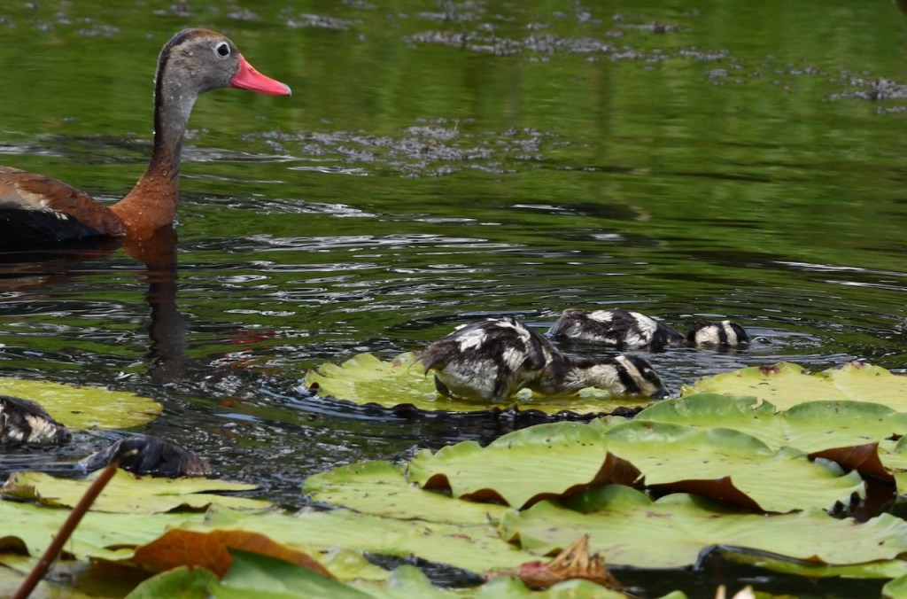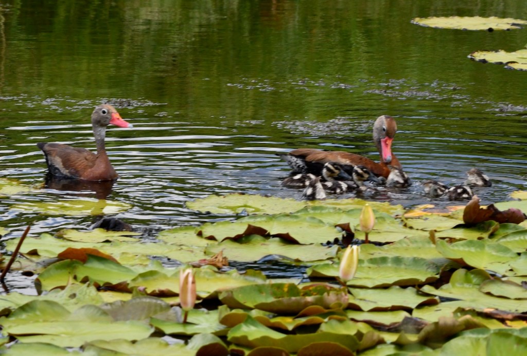 Black-bellied Whistling Ducks don’t quack; they make a whistling sound instead. This family was swimming at the small lily pond at Claude Peteet Mariculture Center.