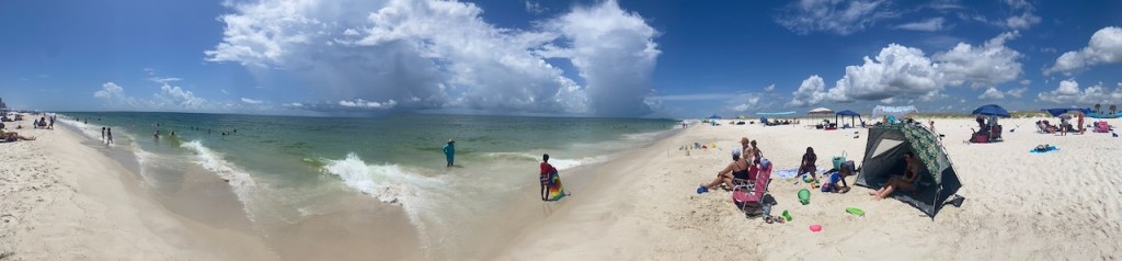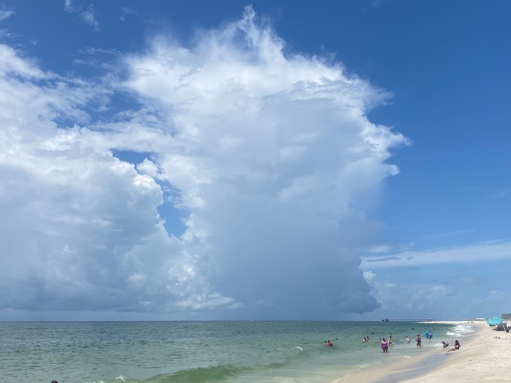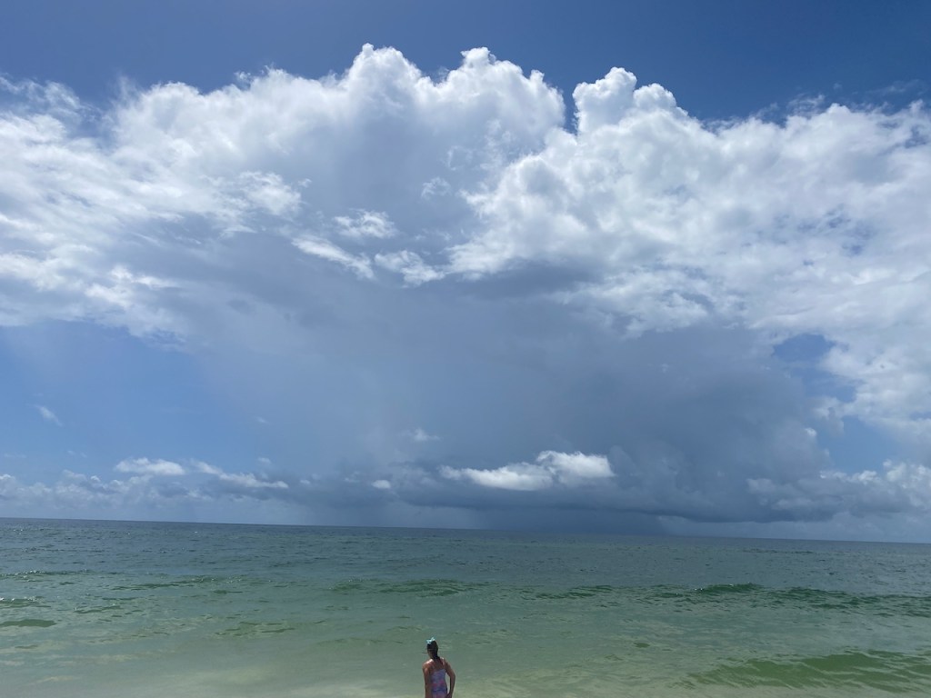 The beach forecast this morning was for overcast skies and rain in the afternoon. It was overcast when I arrived, but the sun soon cleared the clouds and the sky was blue. In the distance, you could see the incoming storm clouds. It was a beautiful morning at the beach.