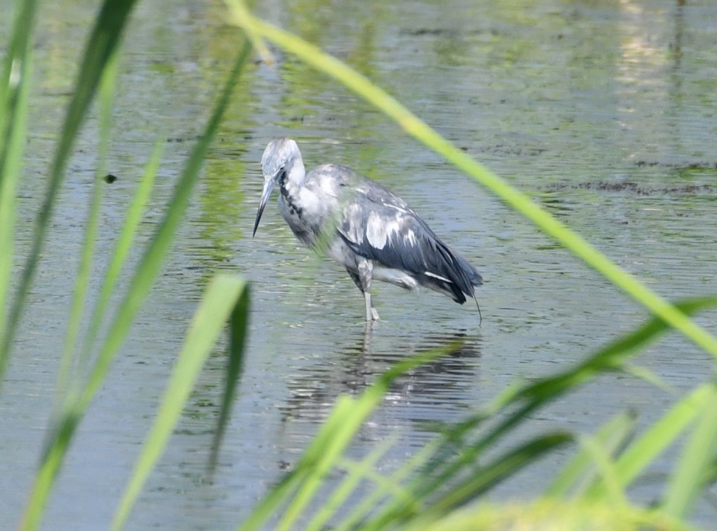 Little Blue Herons are all white during their first year and as they age they turn blue. You can recognize them during this time by their two-toned bill and dull greenish legs. I spotted this Little Blue at Meaher State Park during low tide.