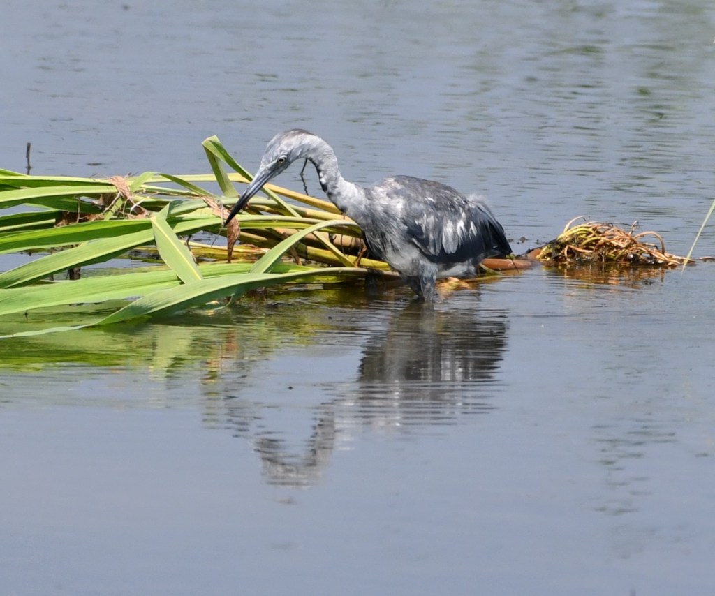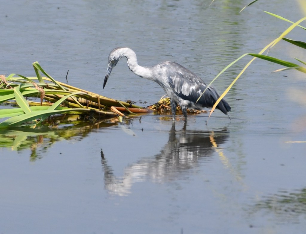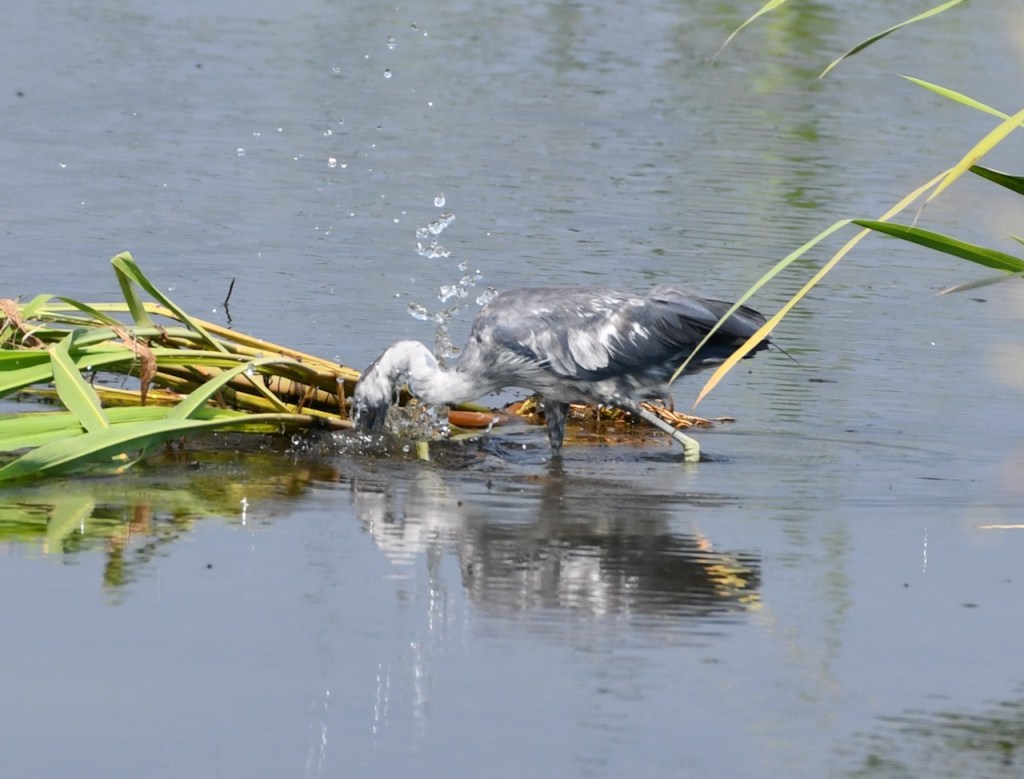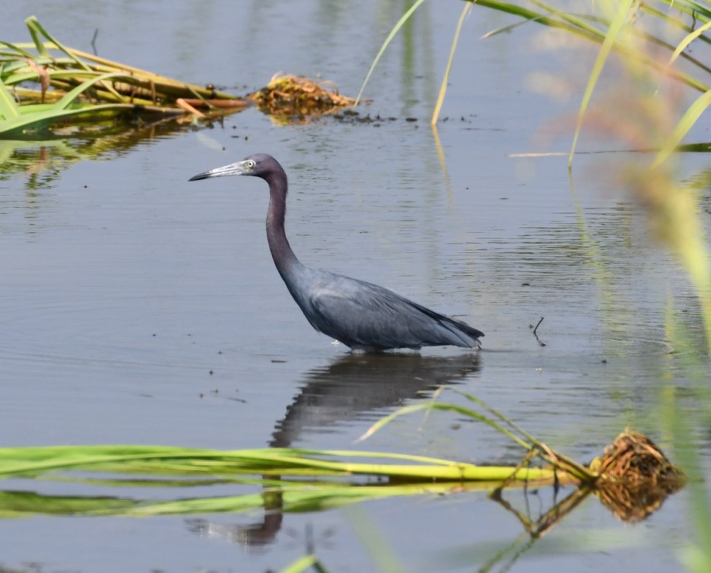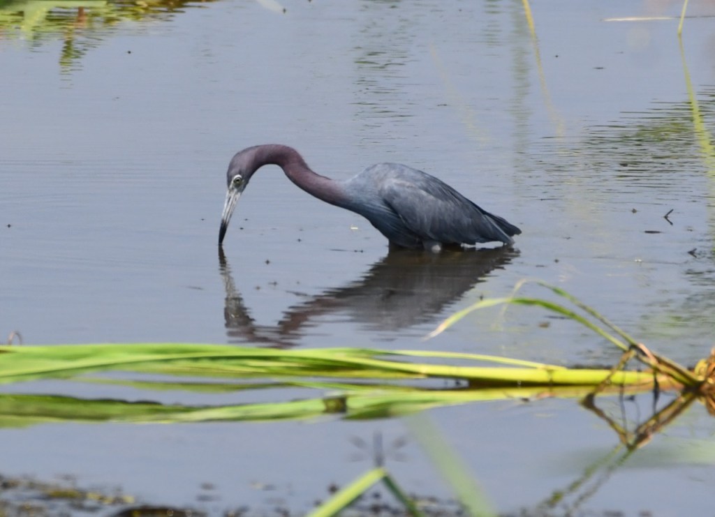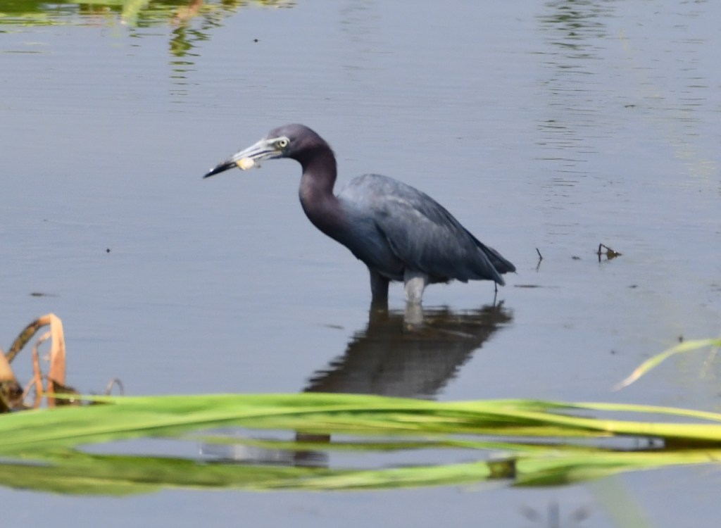 Little blue herons consume mostly fish, invertebrates, and small amphibians. Their prey varies depending on location, but they are often found eating small fish such as sunfish and minnows, crayfish and grasshoppers, and frogs and tadpoles. They forage during the day by walking slowly along shallow water. https://www.outdooralabama.com/herons/little-blue-heron#:~:text=Little%20blue%20herons%20consume%20mostly,walking%20slowly%20along%20shallow%20water.