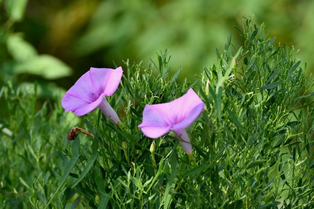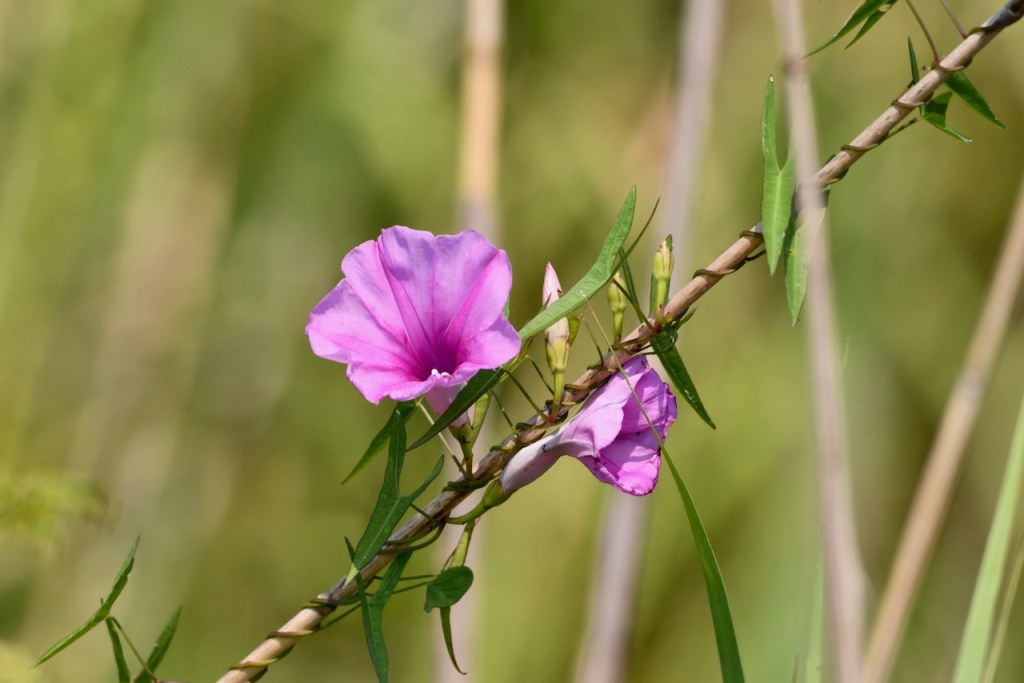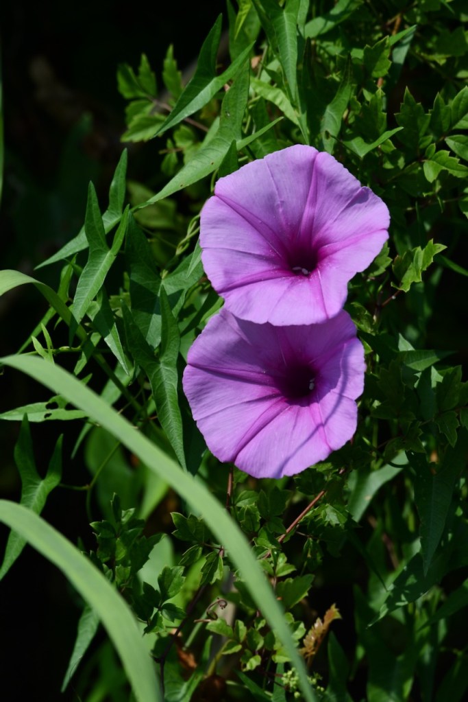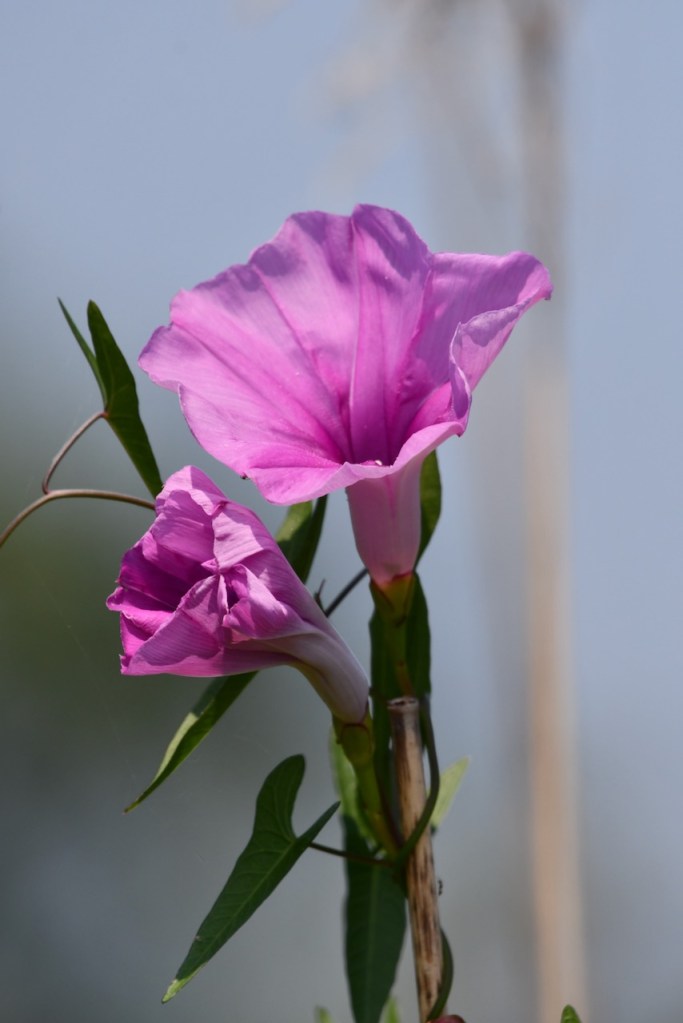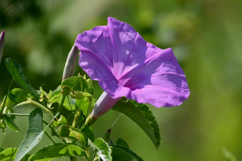 Morning Glories have a trumpet shaped bloom that pollinators love. They come in many different colors.